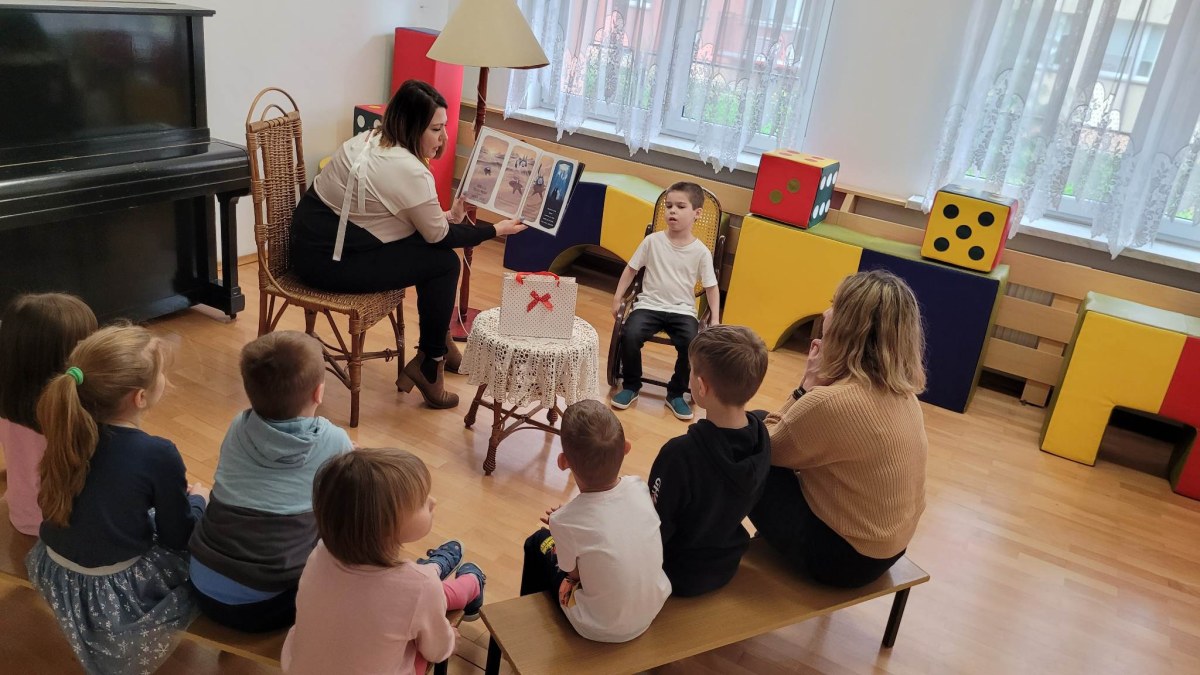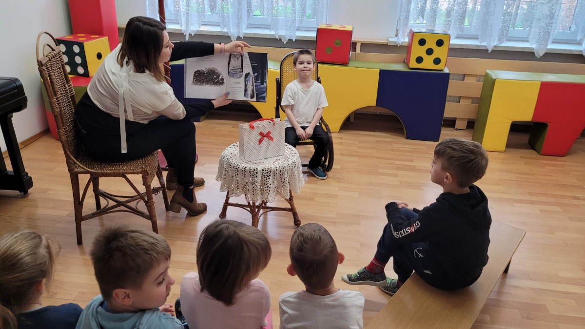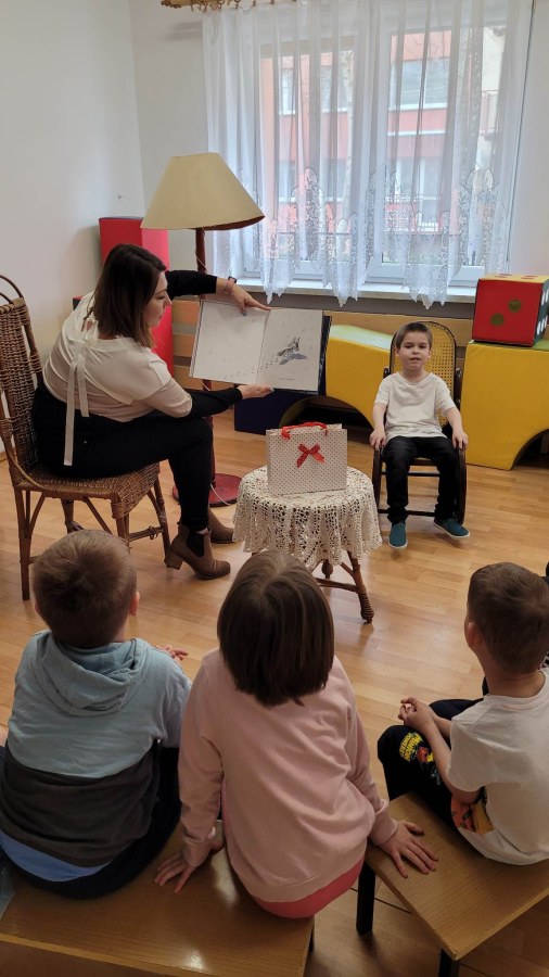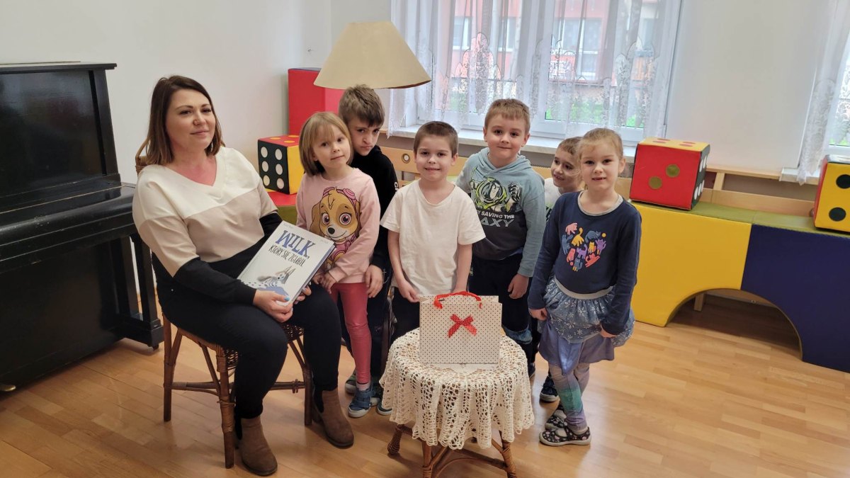 Dnia 28.03.23r. grupę „Słoneczka” odwiedziła mama Ksawerego. Przeczytała nam książkę pt.” Wilk, który się zgubił”, czyli o tym, że każdy czasami potrzebuje pomocy swoich bliskich. Dziękujemy Pani Agnieszce za odwiedziny i słodką niespodziankę! Zapraszamy kolejnych rodziców lub dziadków.