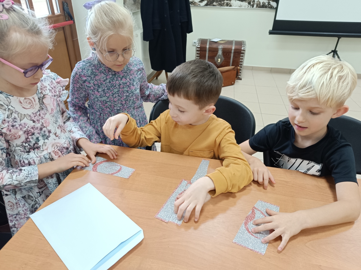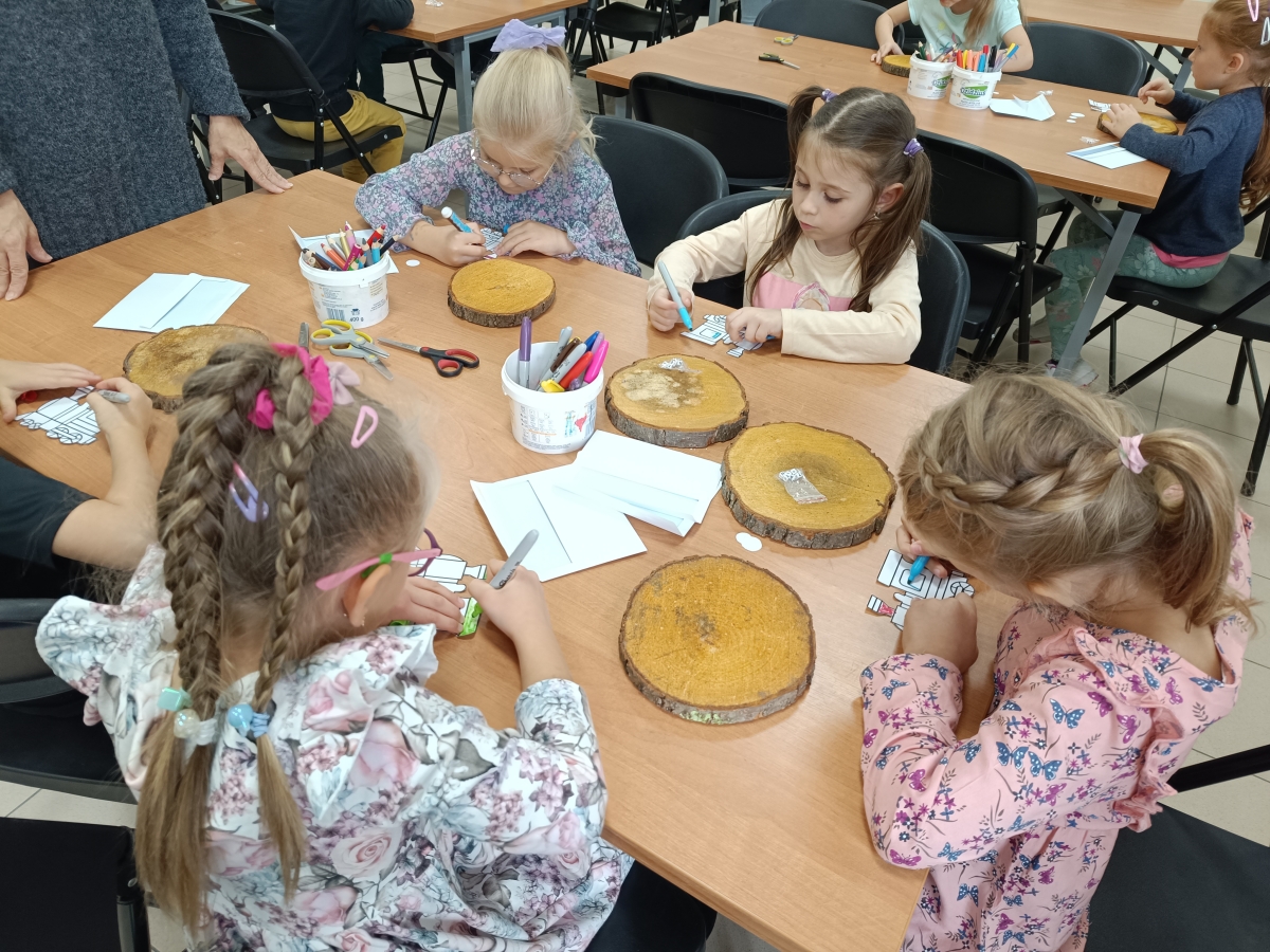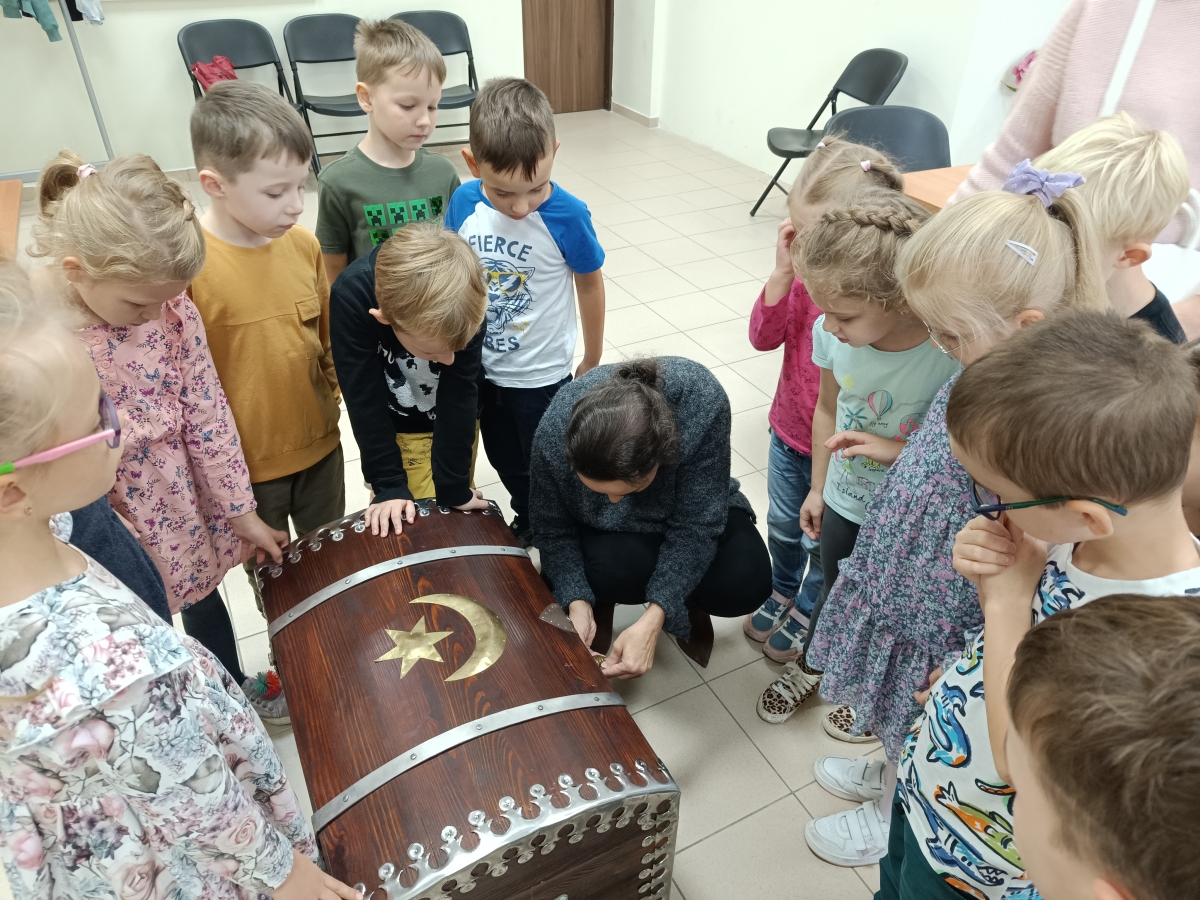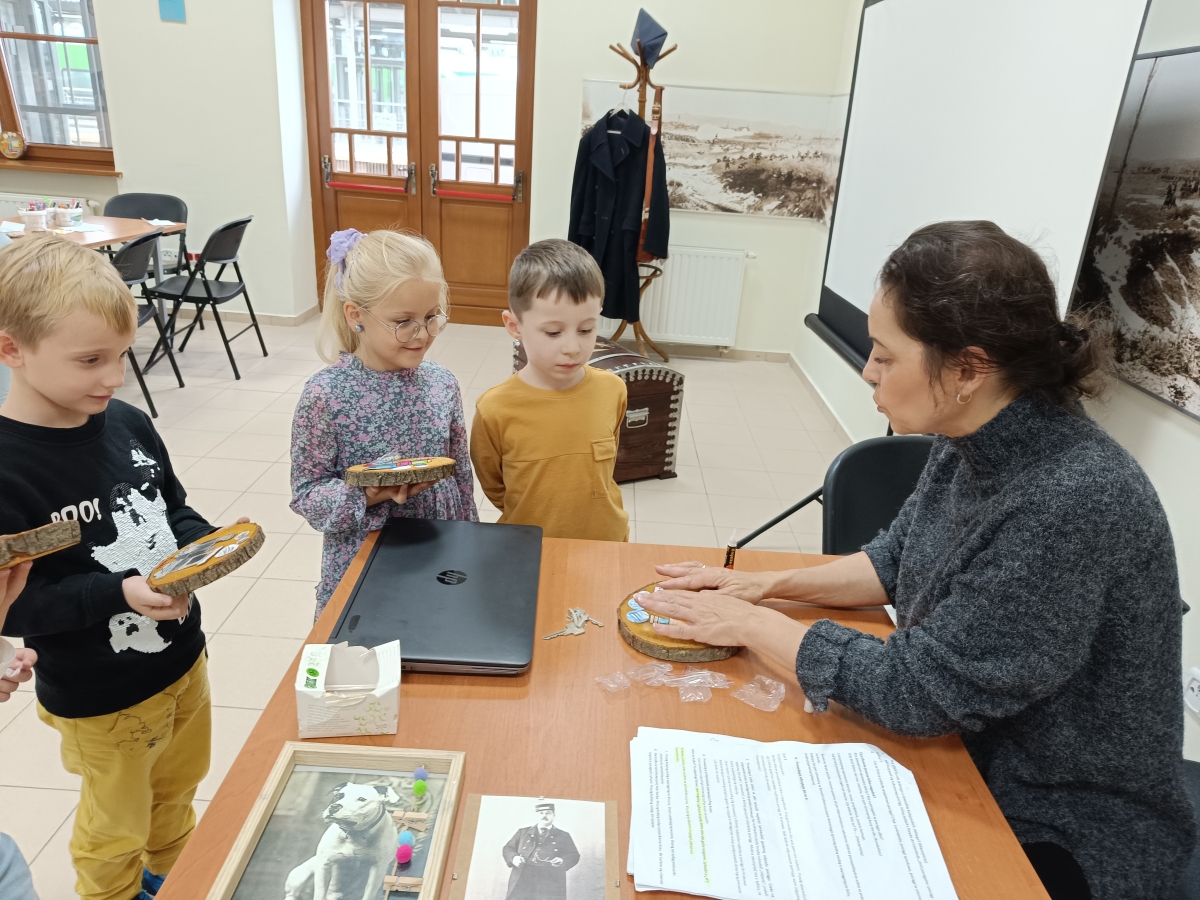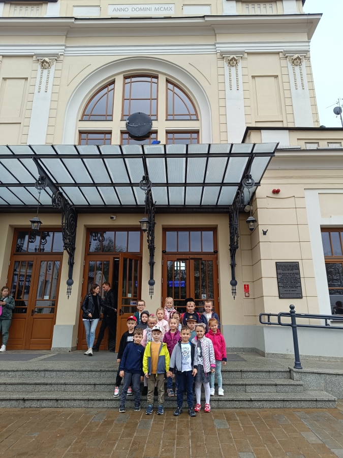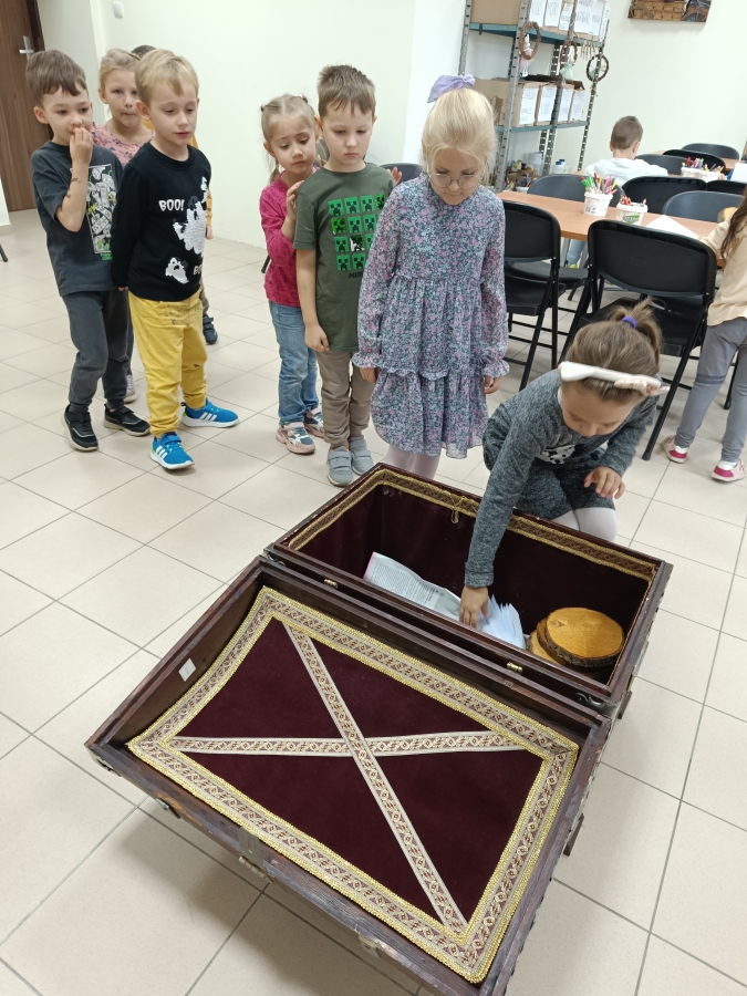 Dnia 13.10.2023 dzieci z grupy „Stokrotki” wzięły udział w lekcji muzealnej pt. „Zagadki Pana Kolejarza” zorganizowanej przez Muzeum Okręgowe w Tarnowie Oddział Galeria „Panorama”. Przedszkolaki obejrzały prezentację multimedialnej, dzięki której poznały różne rodzaje pociągów, lokomotyw oraz pracowników kolei. Kolejarz pan Alojzy ze swoim psem Bazylem ukrył dla dzieci listy, a w nich zadania i zagadki. Po ich znalezieniu i wykonaniu „Stokrotki” otrzymały szyfr do skrzyni, a w niej był schowany klucz do lokomotywy. Były tam również drewniane krążki i obrazki z lokomotywą, które po pokolorowaniu dzieci zabrał sobie do domu. Ciekawa forma i treść zajęć dostarczyła przedszkolakom wielu wiadomości i pozytywnych wrażeń.
