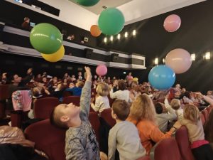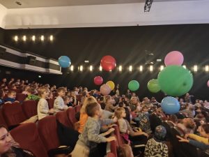 8 października dzieci z naszego przedszkola wzięły udział w przeglądzie bajek w ramach 21 edycji programu Polskiego Kina Młodego Widza. Dla dzieci w wieku przedszkolnym do oglądania na dużym ekranie skierowano zestaw filmów krótkometrażowych. Przedszkolaki uczestniczyły również w zabawach z animatorką.