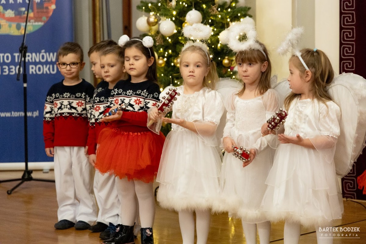 W piątek 15 grudnia cześć grupy IV „Kotki” miała radość z zaprezentowania się w Sali Lustrzanej Urzędu Miasta Tarnowa na corocznym spotkaniu opłatkowym 🎄👼🎄. Dzieci zaśpiewały pastorałki, piosenki świąteczne oraz wspólnie ze zgromadzonymi gośćmi wspólną kolędę „Przybieżeli do Betlejem”🎄.