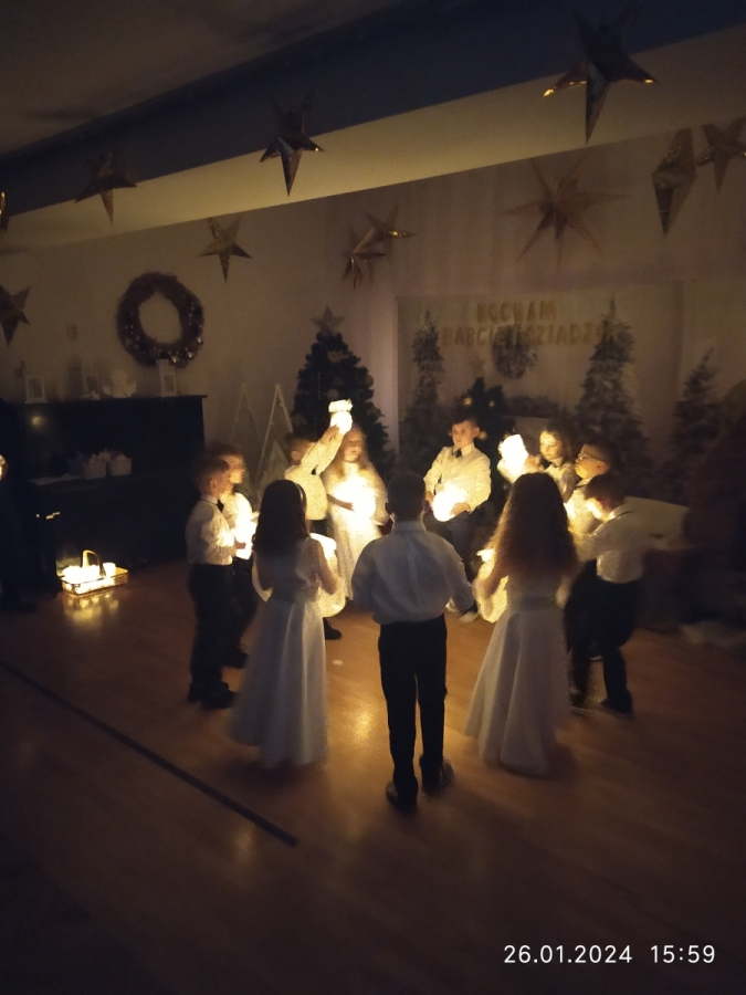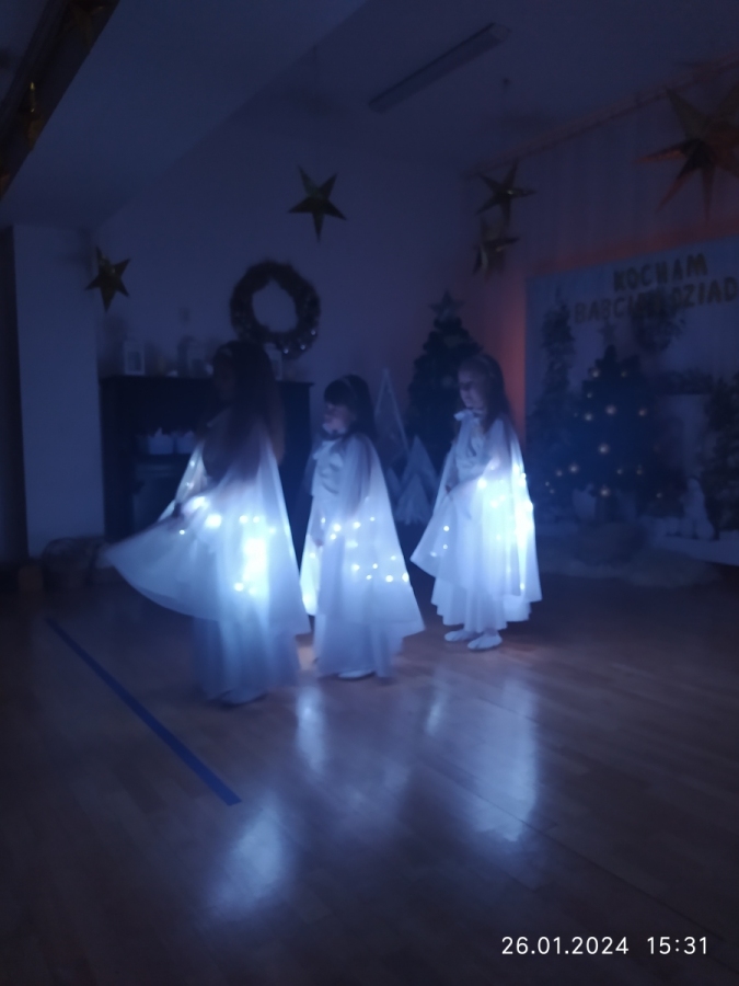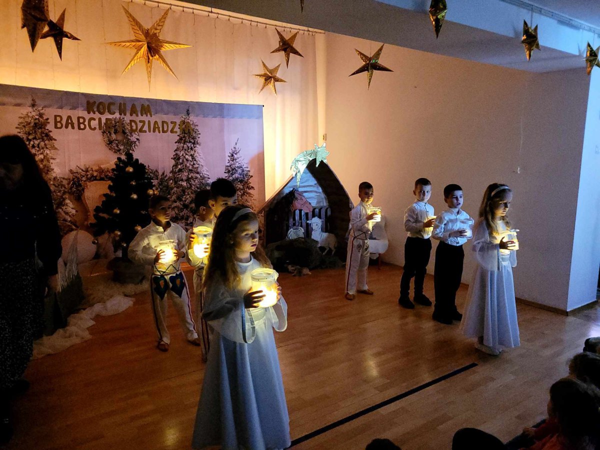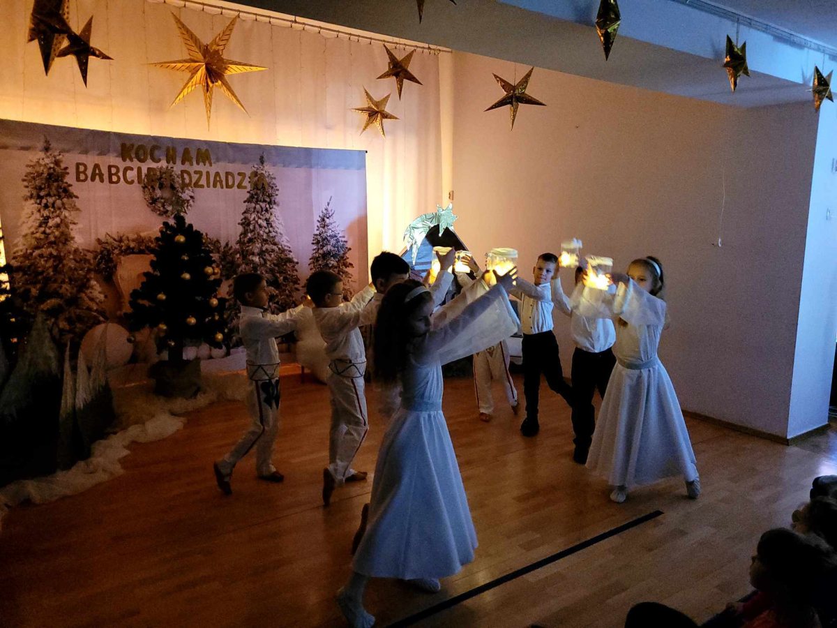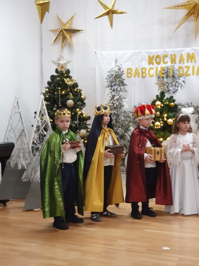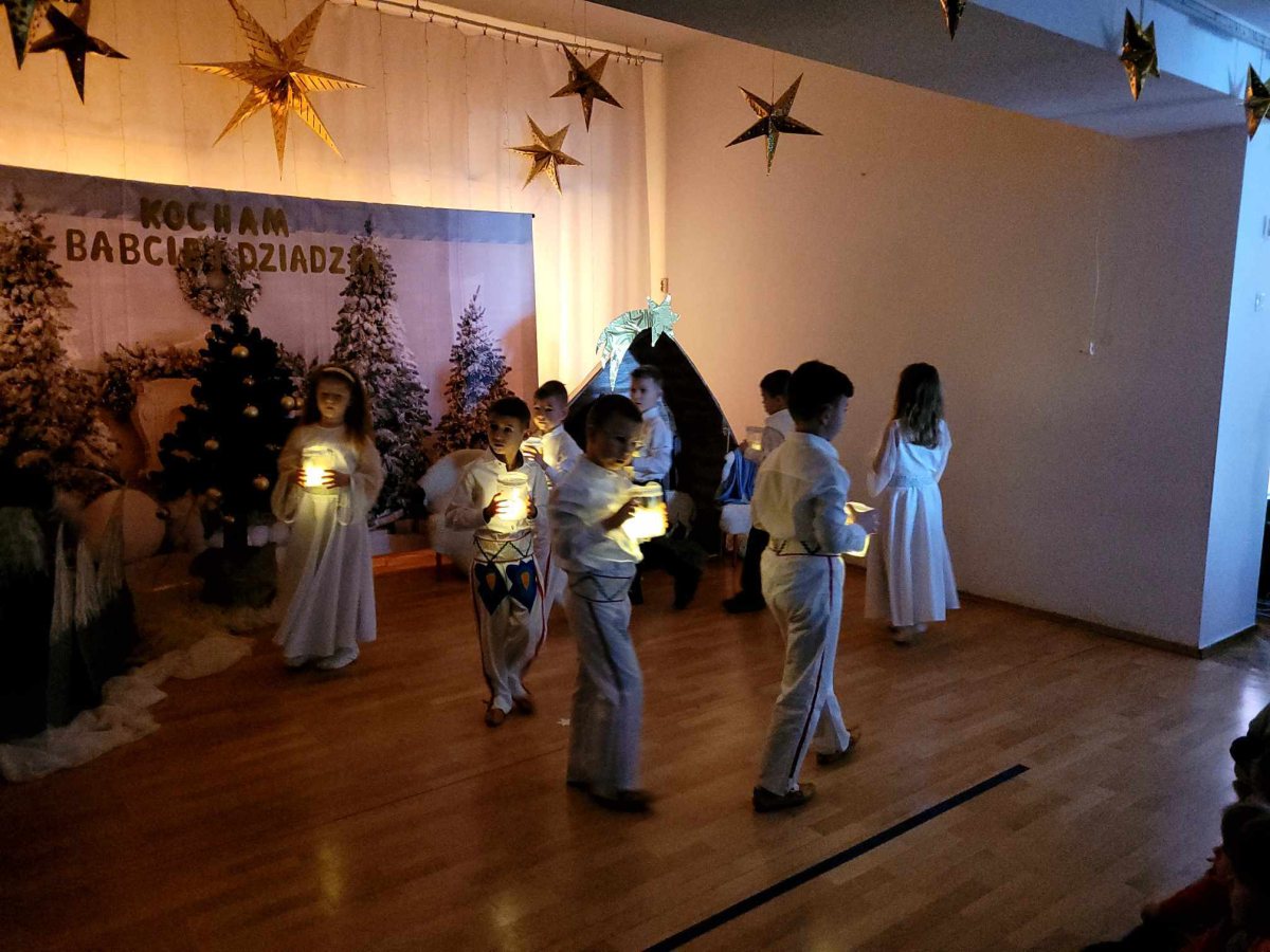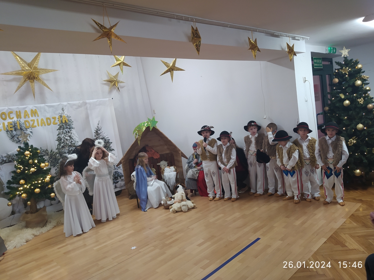 Goście zaproszeni na uroczystość Dnia Babci i Dziadka przez dzieci z gr. VI, obejrzeli “Jasełka”, a życzenia dzieci wyraziły w piosenkach i wierszach dedykowanych ukochanym Babciom i Dziadziom. Uroczystość zakończyła się wspólnym zdjęciem i wręczeniem przygotowanych laurek. Występ dzieci wywołał radość, dumę i zadowolenie, ale też niejedna łezka wzruszenia pojawiła się na twarzach zgromadzonych widzów.