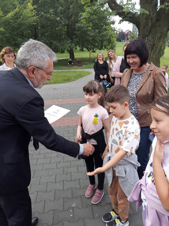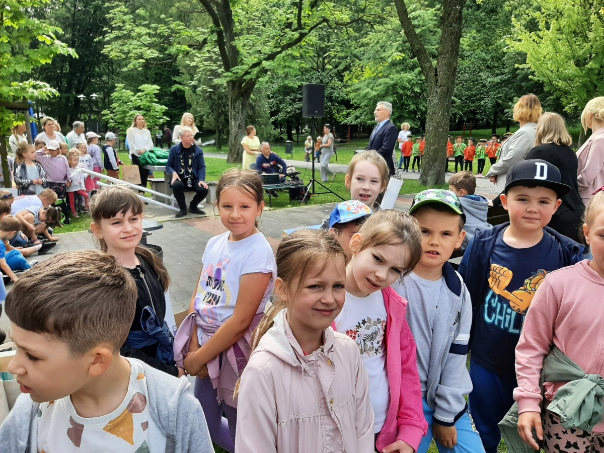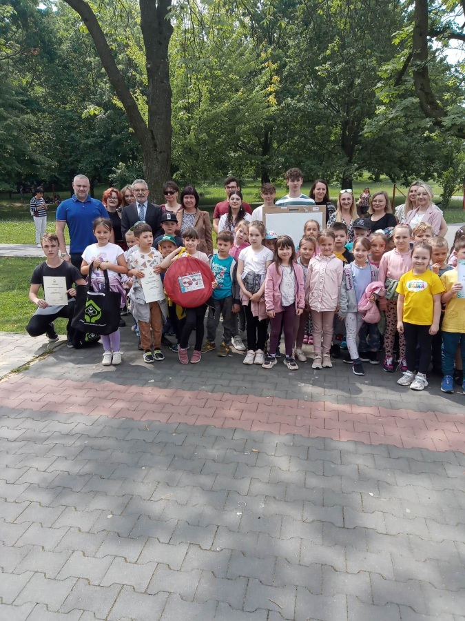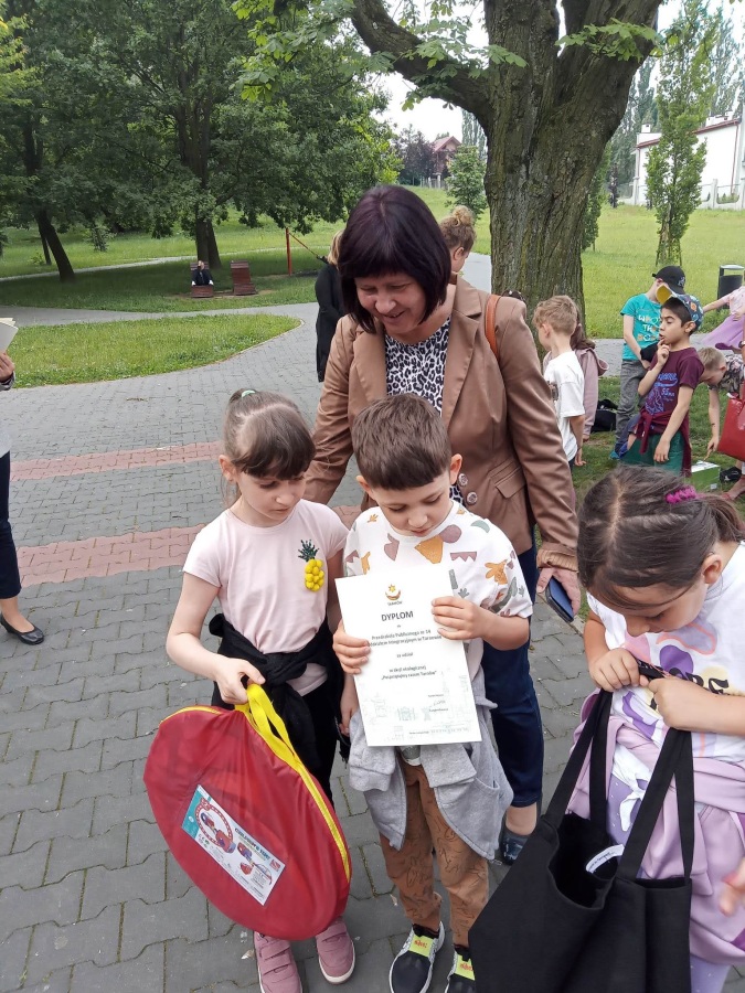16.06 2023r grupa V Żabki wzięła udział w uroczystym podsumowaniu działań proekologicznych organizowanych w naszym mieście, które odbyło się w Parku Strzeleckim na terenie Ogrodu Jordanowskiego. Wiele placówek zostało wyróżnionych, dzieci otrzymały nagrody i dyplomy. Dzieci z naszego przedszkola zostały nagrodzone za udział w akcji ,, Posprzątajmy razem Tarnów’’.