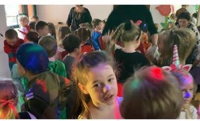 „W karnawale wszyscy urządzają bale. To tradycja bardzo stara, strojów pięknych co niemiara. Niech się bawią duzi , mali zgromadzeni na tej sali.” W dniu 25 stycznia 2023 r. w naszym przedszkolu bawiliśmy się wszyscy razem na balu karnawałowym, który prowadzili panowie z Pracowni Jaszczury i Przyjaciele. Dzieci wcieliły się w różne postacie bajkowe. Wszystkim zabawom towarzyszyła radość, śmiech i spontaniczna aktywność dzieci, a cały bal karnawałowy przebiegł w miłej, serdecznej atmosferze i dostarczył niezapomnianych wrażeń. Dziękujemy rodzicom za zaangażowanie w przygotowanie strojów. Kolejny bal karnawałowy już za rok.