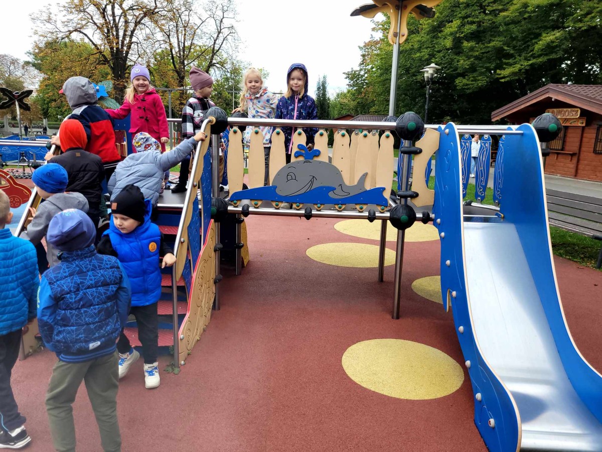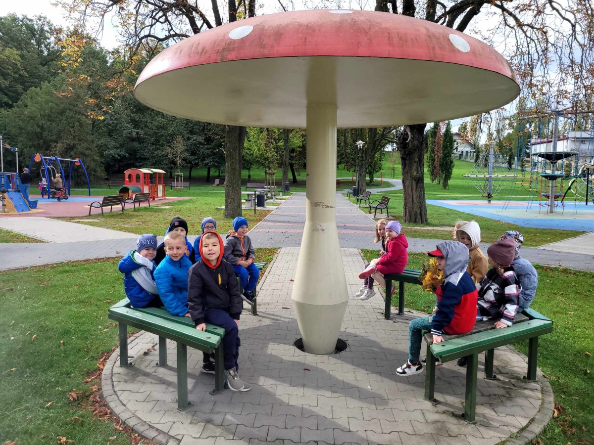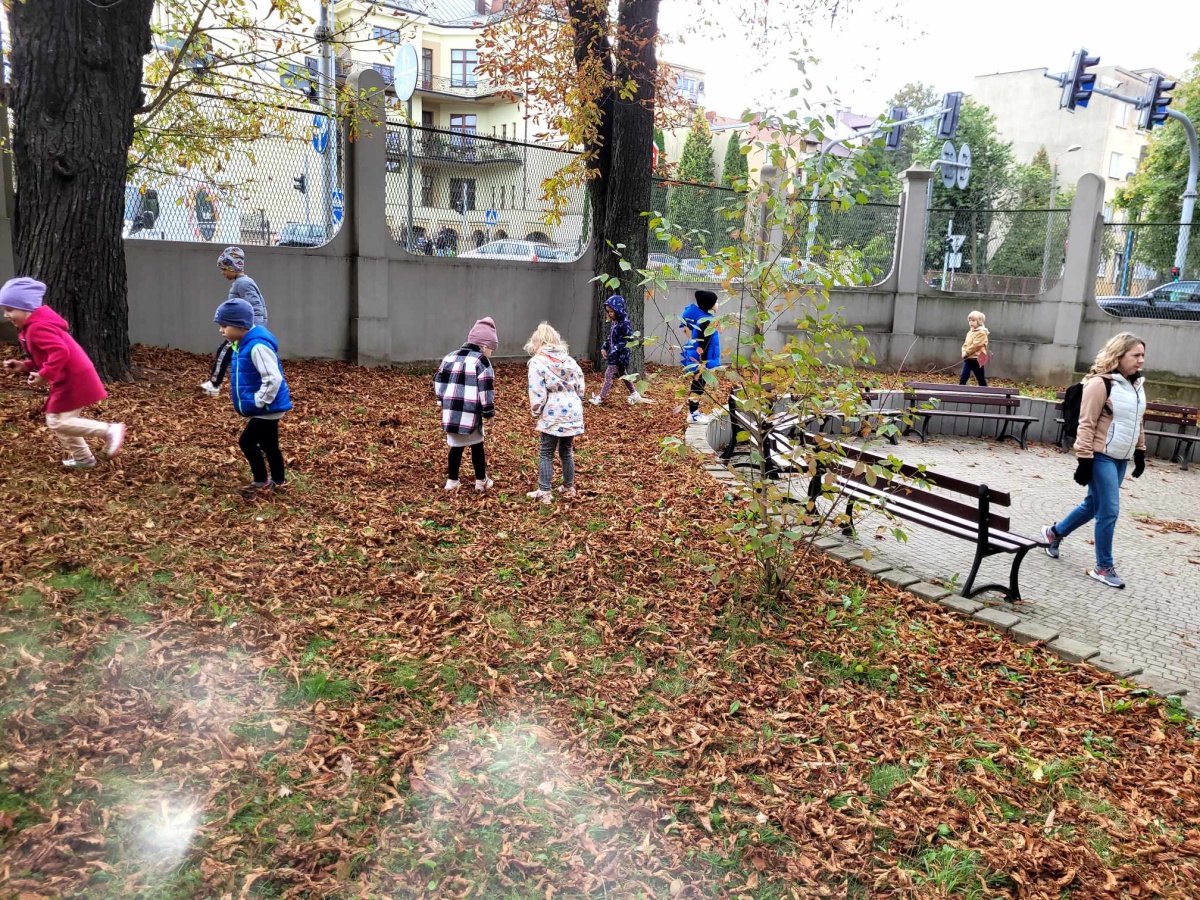 Biedronki korzystając z pięknej jesiennej pogody wybrały się na wycieczkę do Parku Strzeleckiego. Podziwiały krajobraz jesienny, zbierały kasztany oraz bawiły się na placu zabaw.