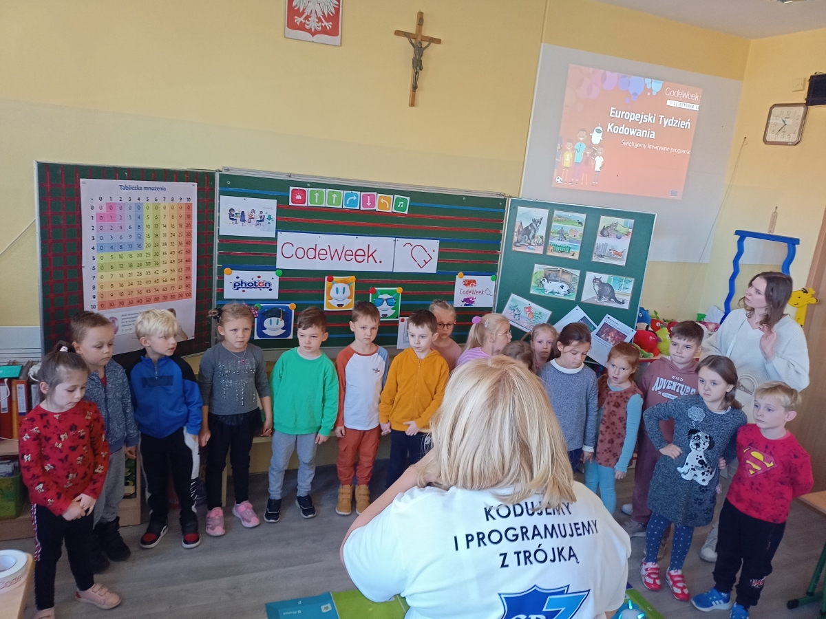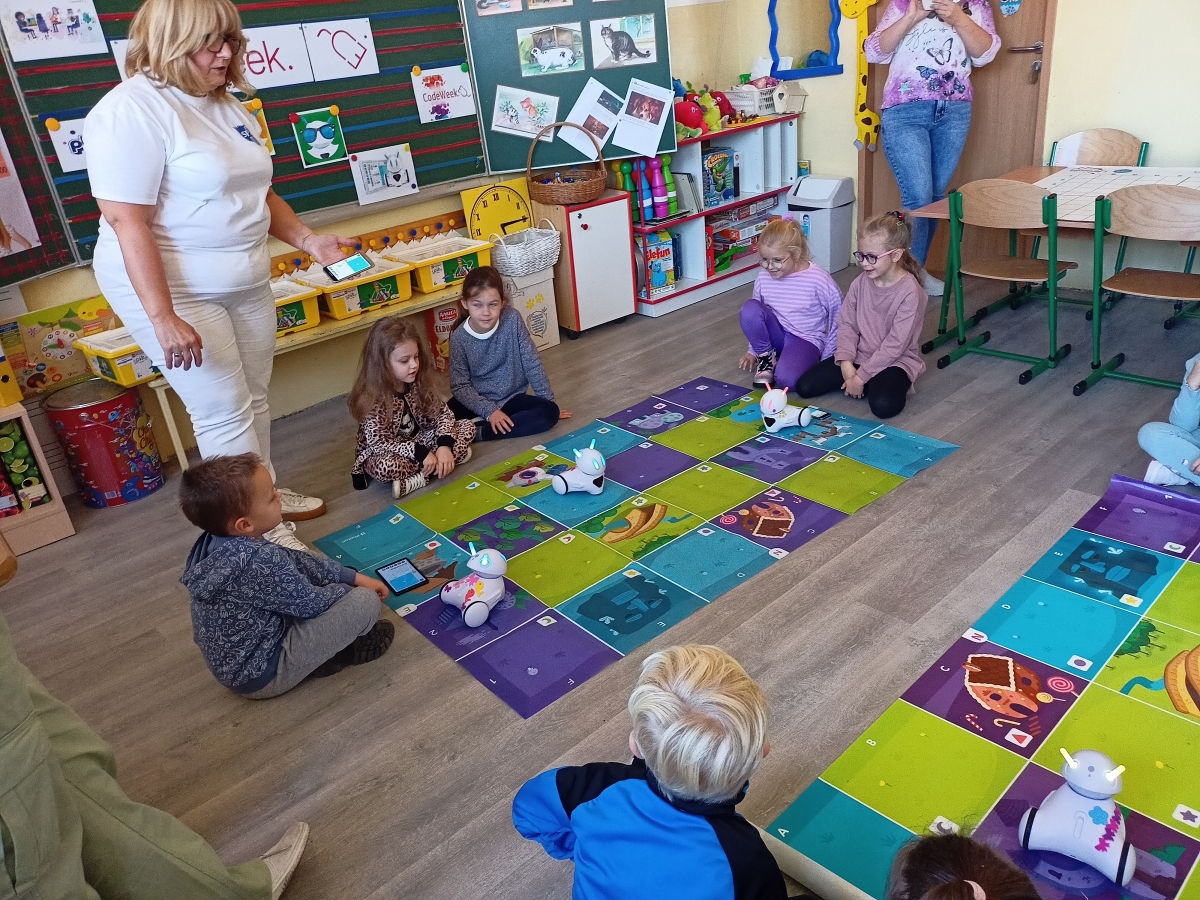 Dnia 18.10 starszaki z grupy V i VI uczestniczyły w zajęciach z programowania w ramach Europejskiego Tygodnia Kodowania 2023 ,,Code Week” w Szkole Podstawowej Nr 3.Dziękujemy za zaproszenie i zorganizowanie dla nas interesujących zabaw.