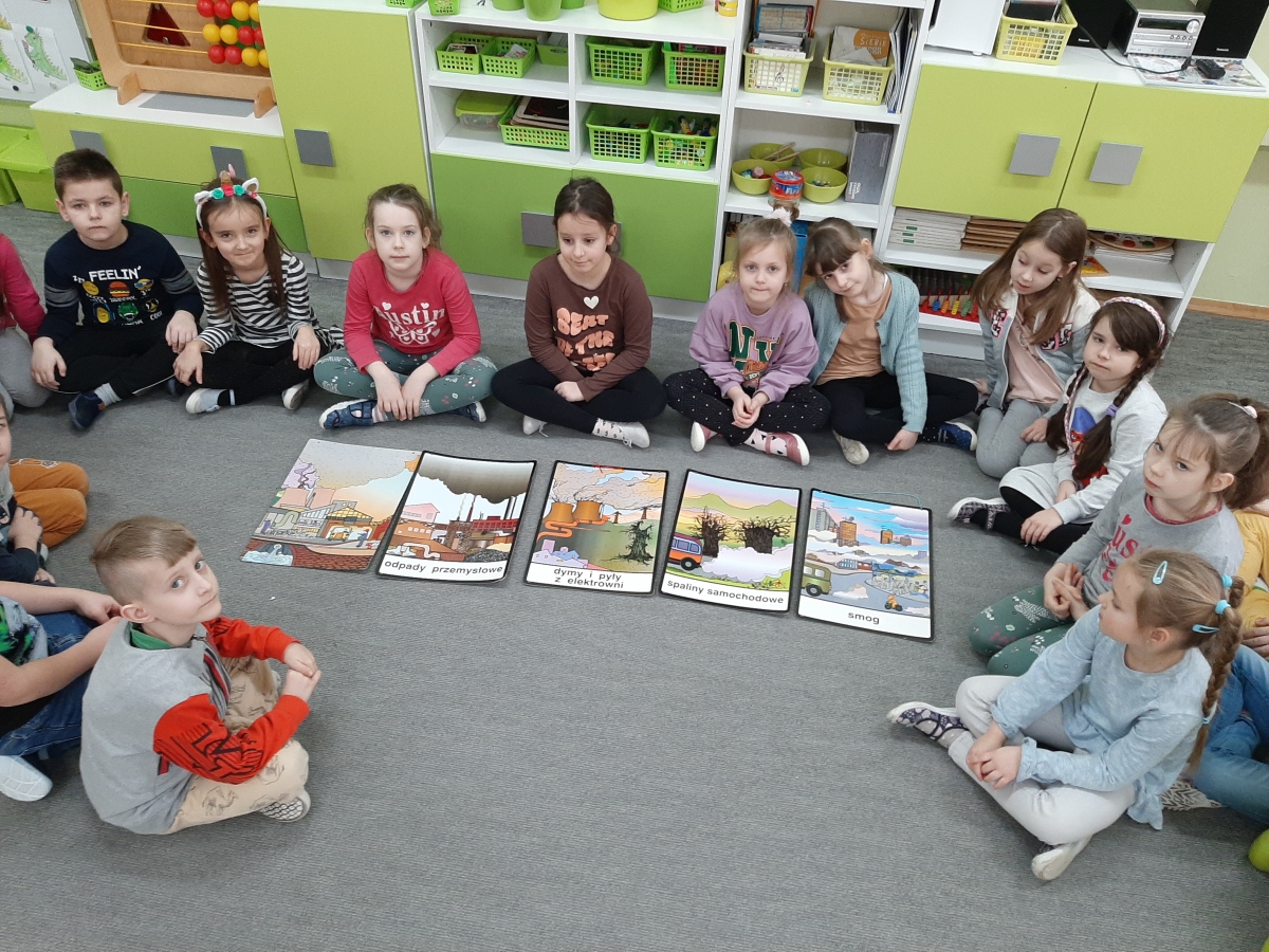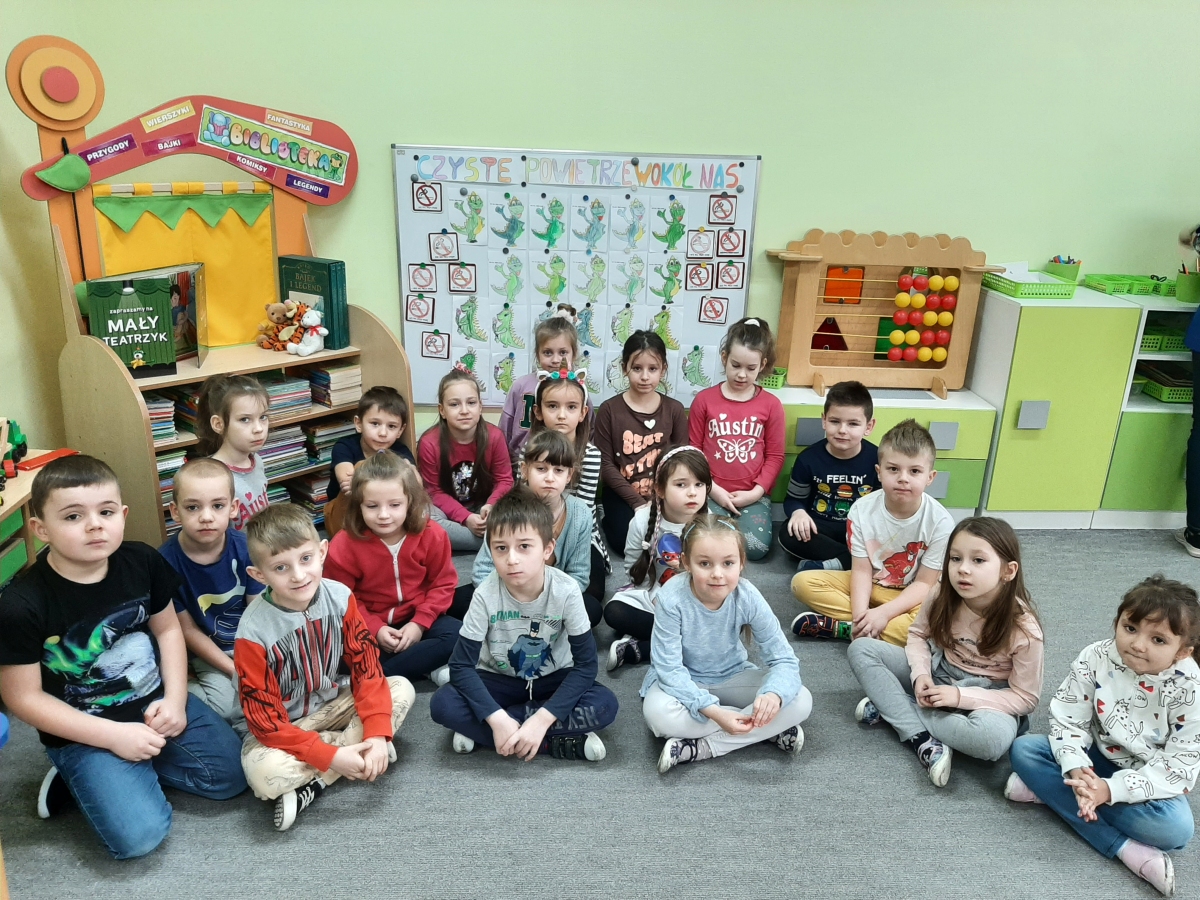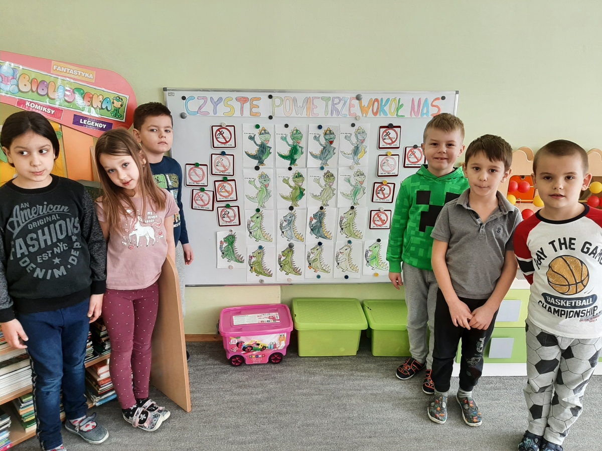 ,,Czyste powietrze wokół nas’’ to cykl zajęć warsztatowych prowadzony w grupie V Żabki. Celem zajęć było: wykształcenie umiejętności rozpoznawania różnych źródeł dymów, wykształcenie umiejętności rozpoznawania różnych dymów, zwiększenie wrażliwości dzieci na szkodliwość dymu papierosowego, zwiększenie wiedzy na temat skutków palenia papierosów, zwiększenie wrażliwości dzieci na miejsca , w których mogą być narażone na dym. Przyjaciel z piosenki dinozaur Dinek pomógł dzieciom zdobyć wiedzę na temat szkodliwości dymu tytoniowego, poznać sposoby radzenia sobie w tych sytuacjach codziennych, w których dziecko narażone jest na szkodliwe dla niego zwyczaje osób palących.
