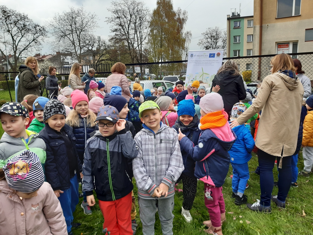 Małopolskie Dni dla Klimatu pod hasłem “drzewkodlaklimatu“. Kampania zorganizowana przez Eko Małopolska – prelekcja na temat działań w celu poprawy jakości powietrza. Sadzenie drzew w ogrodzie. Czujemy się współodpowiedzialni za otaczające środowisko dlatego działamy na rzecz poprawy stanu i estetykę terenów zielonych w naszym mieście.