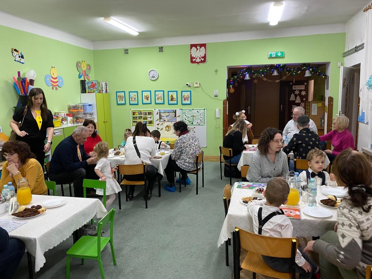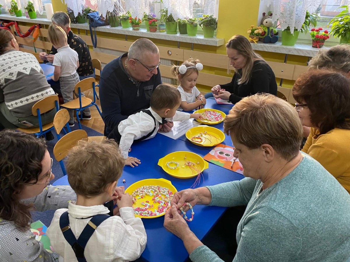 W dniu 20 stycznia 2025 roku w grupie najmłodszej w naszym przedszkolu odbyło się wyjątkowe wydarzenie DZIEN BABCI I DZIADZIA. Maluszki zaprezentowały swoje talenty artystyczne, śpiewając radosne piosenki i recytując wierszyki, które wywołały uśmiech na twarzach zgromadzonych gości. Podczas wydarzenia dzieciaczki wręczyły prezenciki , które przygotowały z myślą o babci i dziadku. Miłym akcentem były warsztaty, podczas których przedszkolaki wspólnie z babciami tworzyły piękne bransoletki, a z dziadkami – krawaty. Wszystko zakończyło się słodkim poczęstunkiem, który umilił czas i stanowił doskonałe zwieńczenie tego pełnego emocji i radości wydarzenia.