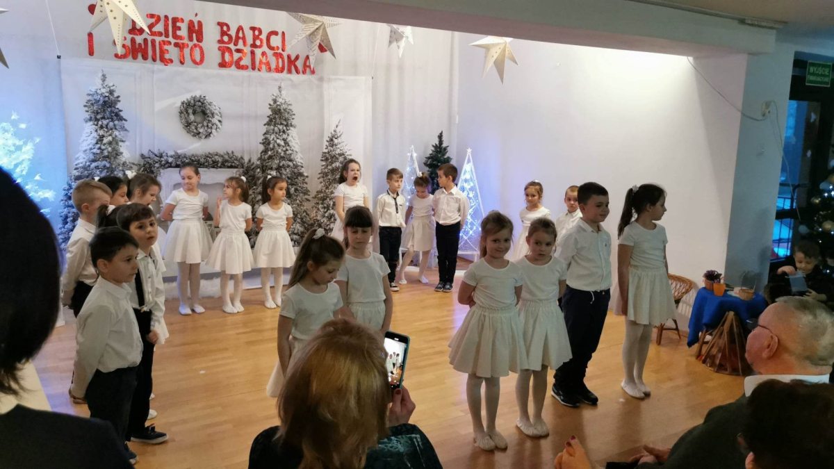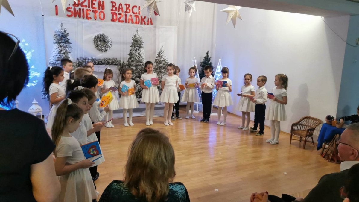 ,,W świecie zwyczajnych ludzkich spraw, każdy gdzieś pędzi każdy gna. Tam niezwykłą wartość w sobie ma Babcia z Dziadkiem, a ja kocham ich co dnia…’’ 23 stycznia 2023 r. dzieci z grupy V Żabki gościły w naszym przedszkolu kochane Babcie i drogich Dziadków. Miłe spotkanie wzbogaciło przedstawienie „Dwanaście miesięcy” oraz montaż słowno-muzyczny przygotowany przez wnuków dla swoich seniorów.
