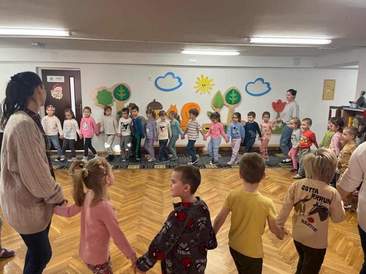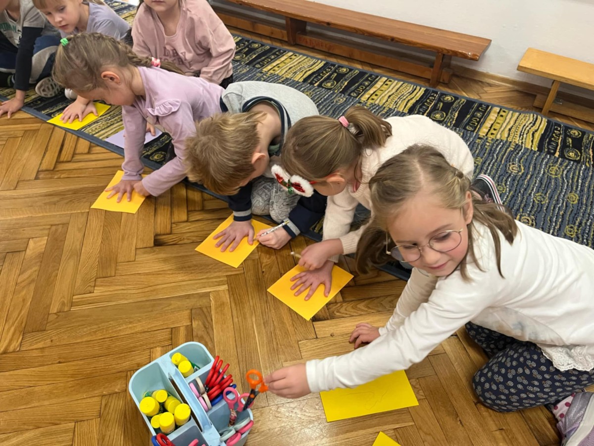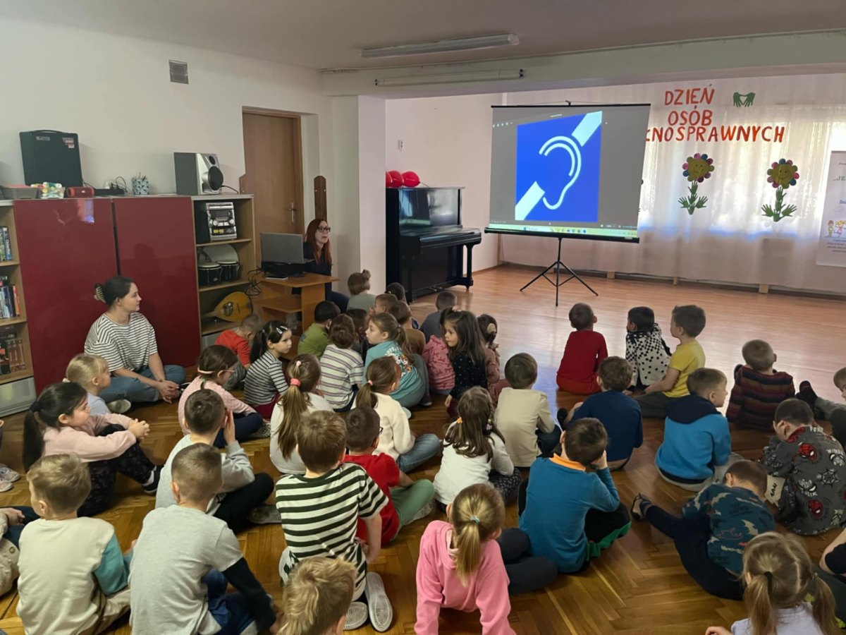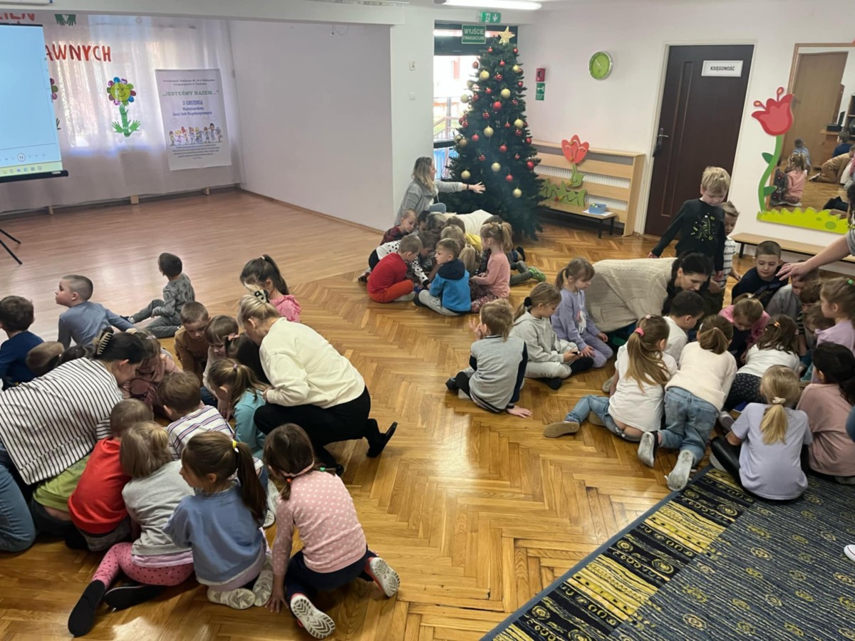 W dniu 3 grudnia, obchodziliśmy Międzynarodowy Dzień Osób Niepełnosprawnych. Dzieci z grupy IV, V i VI wzięły udział w obchodach tego dnia. Dzieci zostały zapoznane z krótkometrażowym filmem edukacyjnym o osobach z niepełnosprawnościami, poznały oraz układały puzzle przedstawiające znaki informacyjne dotyczących różnych niepełnosprawności, oraz dowiedziały się w jakich miejscach mogą się z nimi spotkać. Najmłodsi z ogromnym zaangażowaniem wypowiadali się w jaki sposób mogą pomagać i wspierać osoby niepełnosprawne. Każde z dzieci odrysowało i wycięło swoją dłoń, jako symbol pomocnych dłoni i umieściło na plakacie „Międzynarodowy Dzień Osób Niepełnosprawnych”. Na koniec wszyscy zaśpiewali i zatańczyli do piosenki „ Kto jeśli nie ty, kto jeśli nie my, kto jeśli nie ja, pomagać innym ma…”.