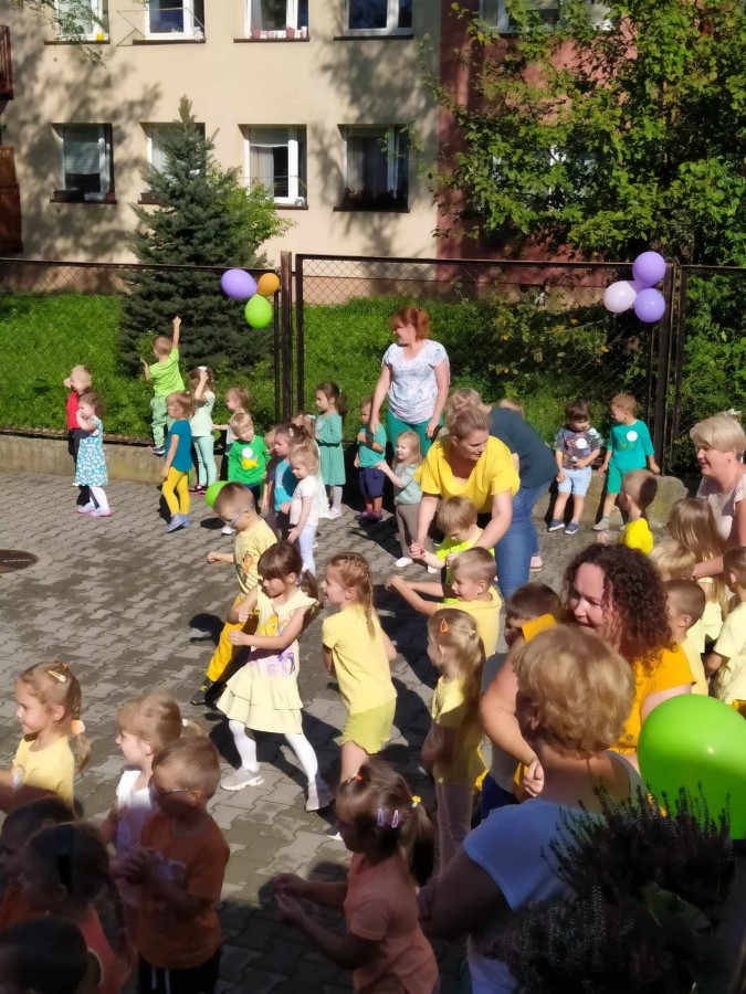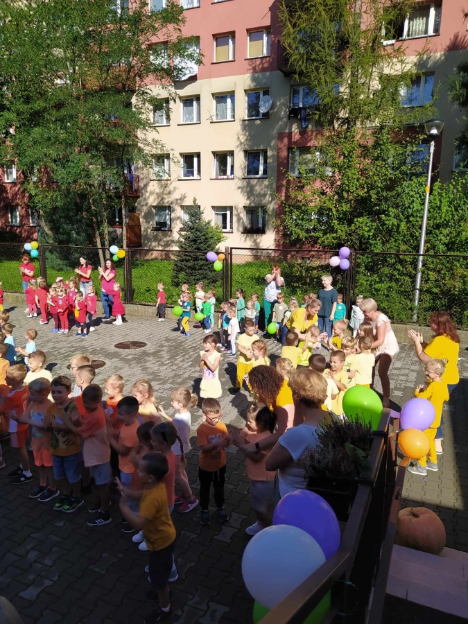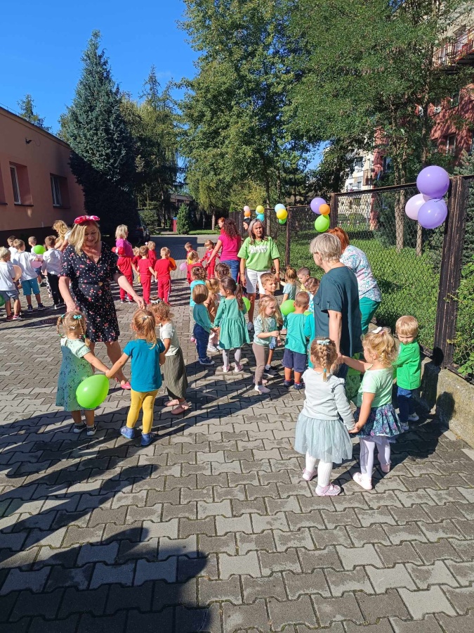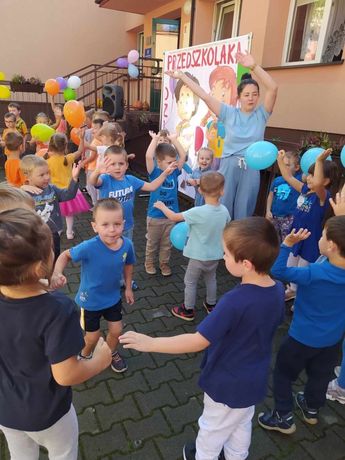 20 września 2023r. w naszym przedszkolu odbył się Dzień Przedszkolaka. Co roku, w całej Polsce, właśnie wtedy przedszkolaki świętują swój dzień. Święto to ma na celu podkreślenie wagi edukacji przedszkolnej w rozwoju i edukacji dzieci. Już od samego rana bawiliśmy się z balonami i tańczyliśmy przy ulubionych przebojach dla dzieci. Po śniadaniu na placu przedszkolnym spotkały się wszystkie grupy, aby wspólnie celebrować ten ważny dzień. Były zabawy muzyczno-ruchowe, taneczne, quiz i zagadki dotyczące naszego przedszkola oraz piękne życzenia od Pani Dyrektor. Przedszkolaki otrzymały słodkie upominki i pamiątkowe dyplomy. Dalsza część świętowania odbywała się już w salach przedszkolnych. Dzieci brały udział w zabawach, konkursach i szalonych tańcach. Był też słodki poczęstunek oraz pamiątkowe zdjęcia. Radość i śmiech dochodzący z każdej sali świadczyły o wspaniałej zabawie. Życzymy samych wspaniałości wszystkim przedszkolakom!