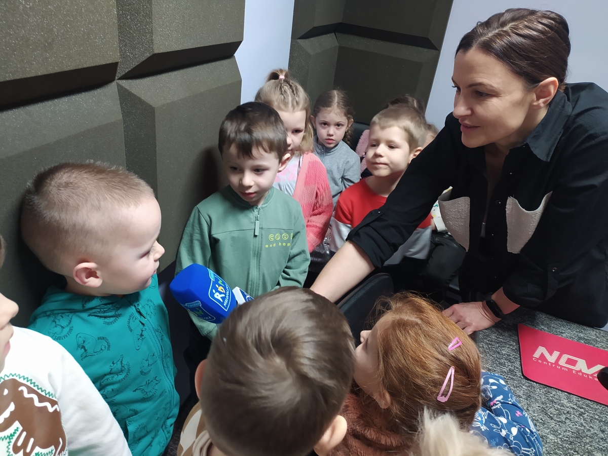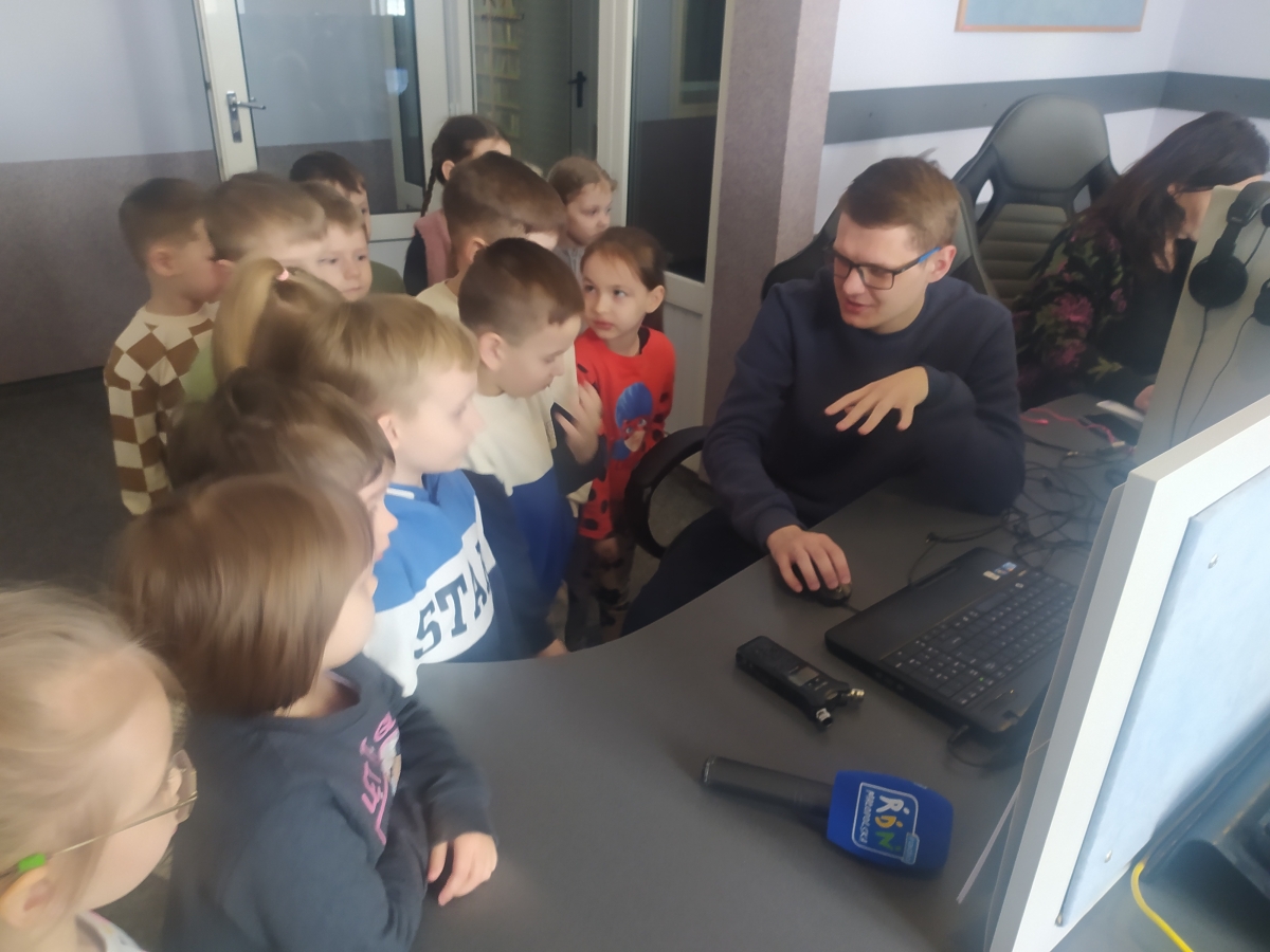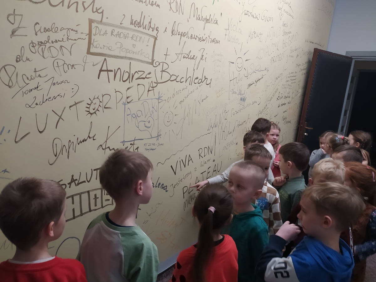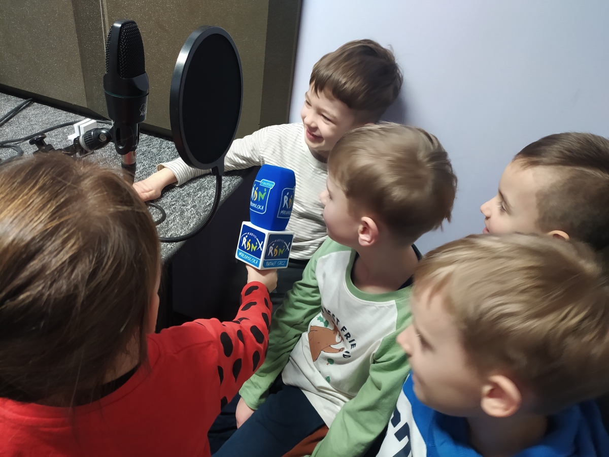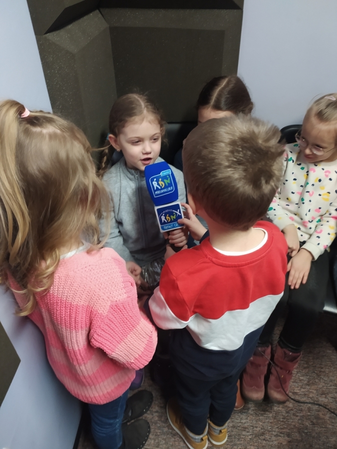 Dnia 17.02.23r. dzieci z grupy IV „Stokrotki” odwiedziły siedzibę Radia RDN Małopolska w Tarnowie. Przedszkolaki poznały pomieszczenia, pracę dziennikarzy i reporterów, jak się przeprowadza i montuje wywiady oraz zobaczyły dźwięki na komputerze. Podjęły odważne próby przeprowadzenia wywiadu z kolegami, co nie było łatwe. Była to bardzo ciekawa lekcja edukacyjna.