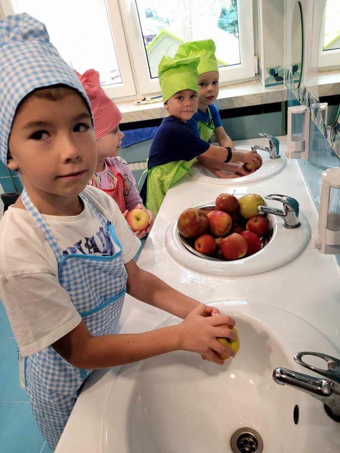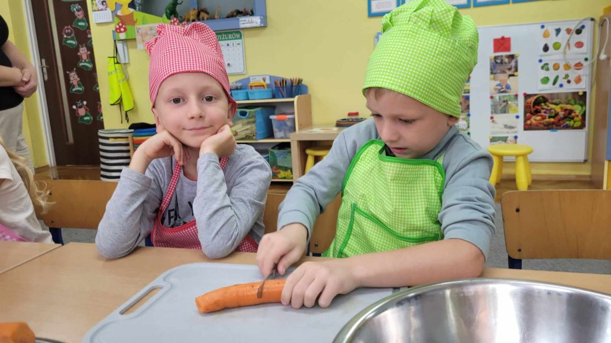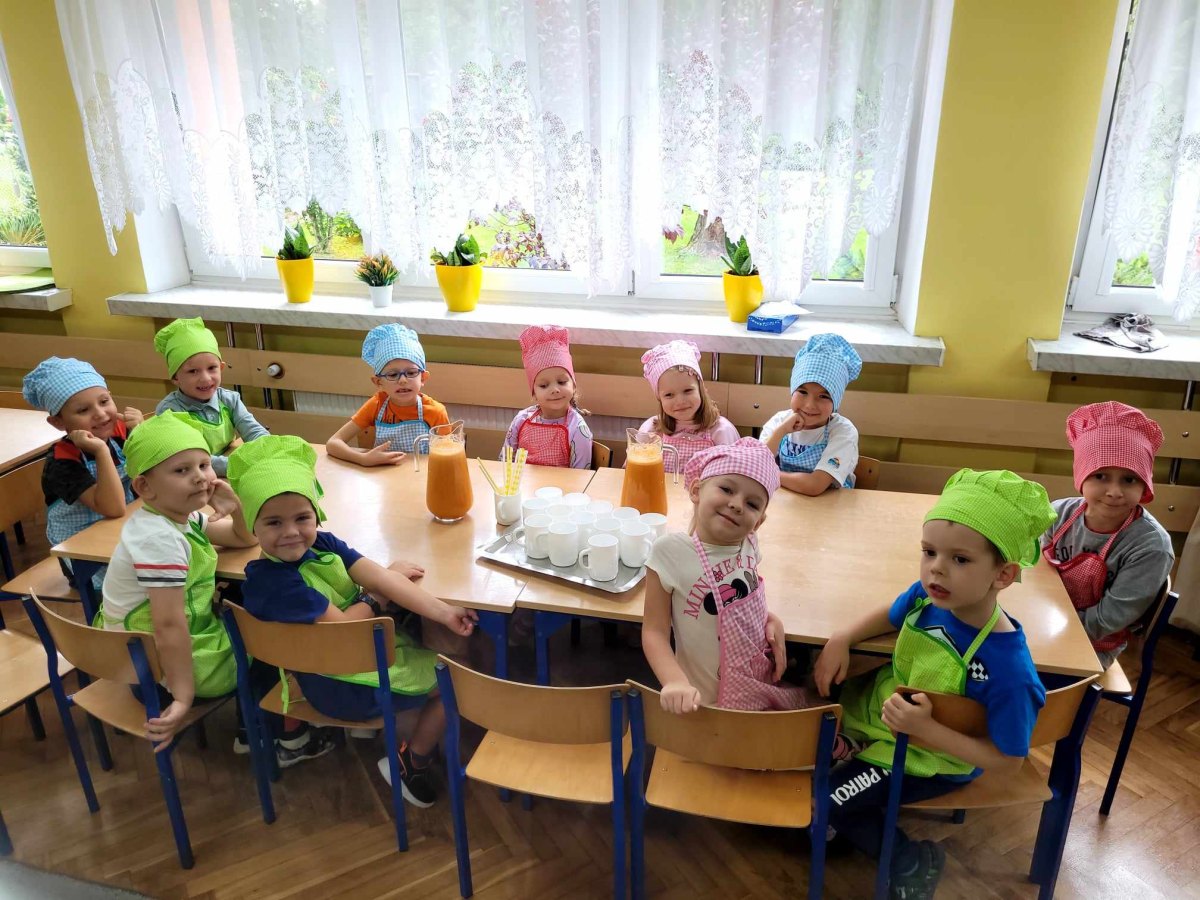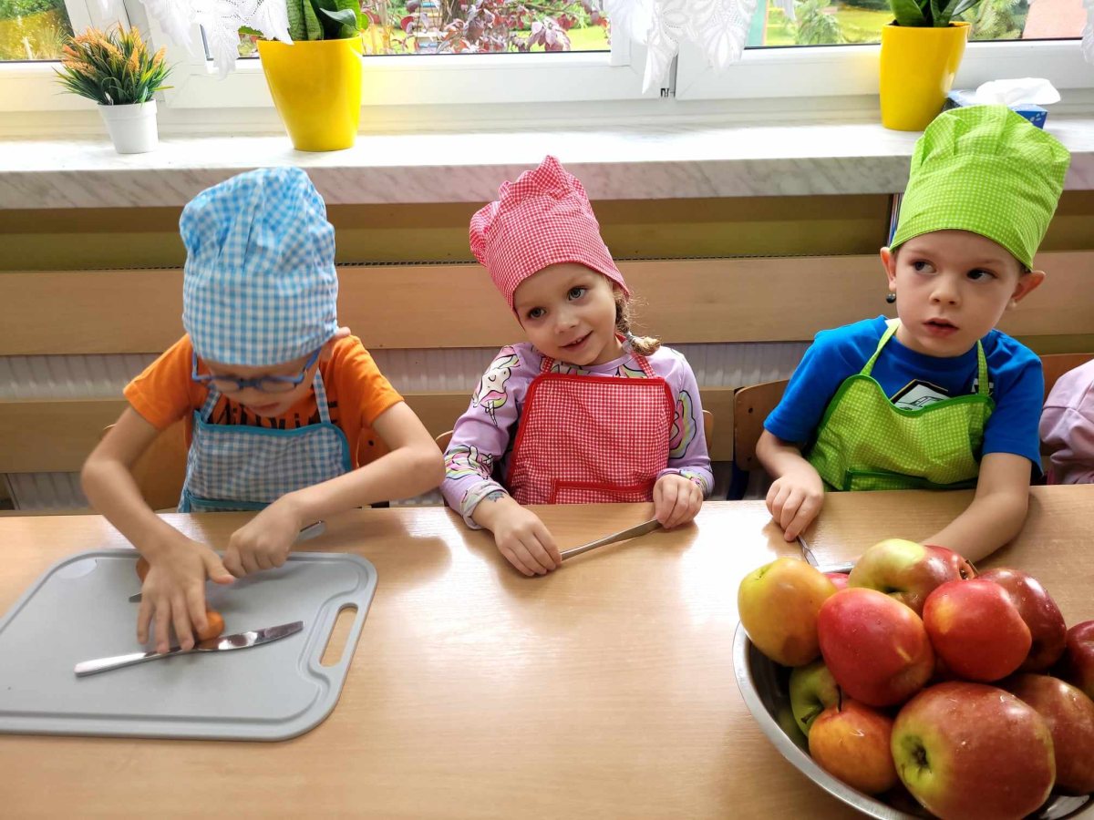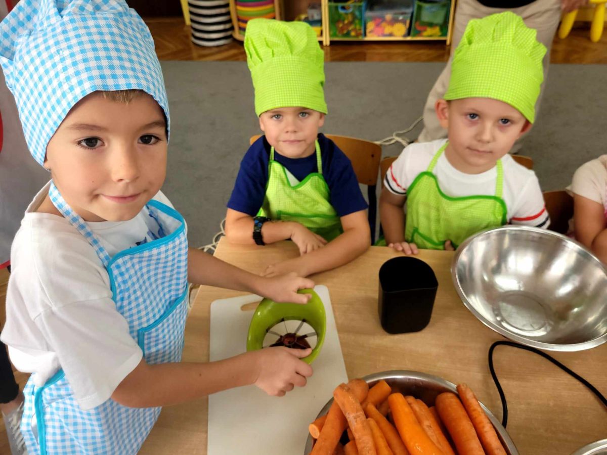 Kto zdrowe soki pije, ten długo żyje! Biedronki rozumieją potrzebę spożywania dużych ilości owoców oraz warzyw. Z myślą o witaminkach, postanowiliśmy zrobić sok. Dzieci ochoczo przyniosły do przedszkola marchewki i jabłka. Jednak zanim przystąpiliśmy do pracy, dzieci zapoznały się z urządzeniem do robienia soku – sokowirówką, jego działaniem i utrwalały sobie zasady bezpieczeństwa. Pozostało tylko wrzucenie składników do maszyny i sok gotowy! Wszystkim bardzo smakował, ponieważ wykonany był przez dzieci, bez dodatku cukru i bez konserwantów.