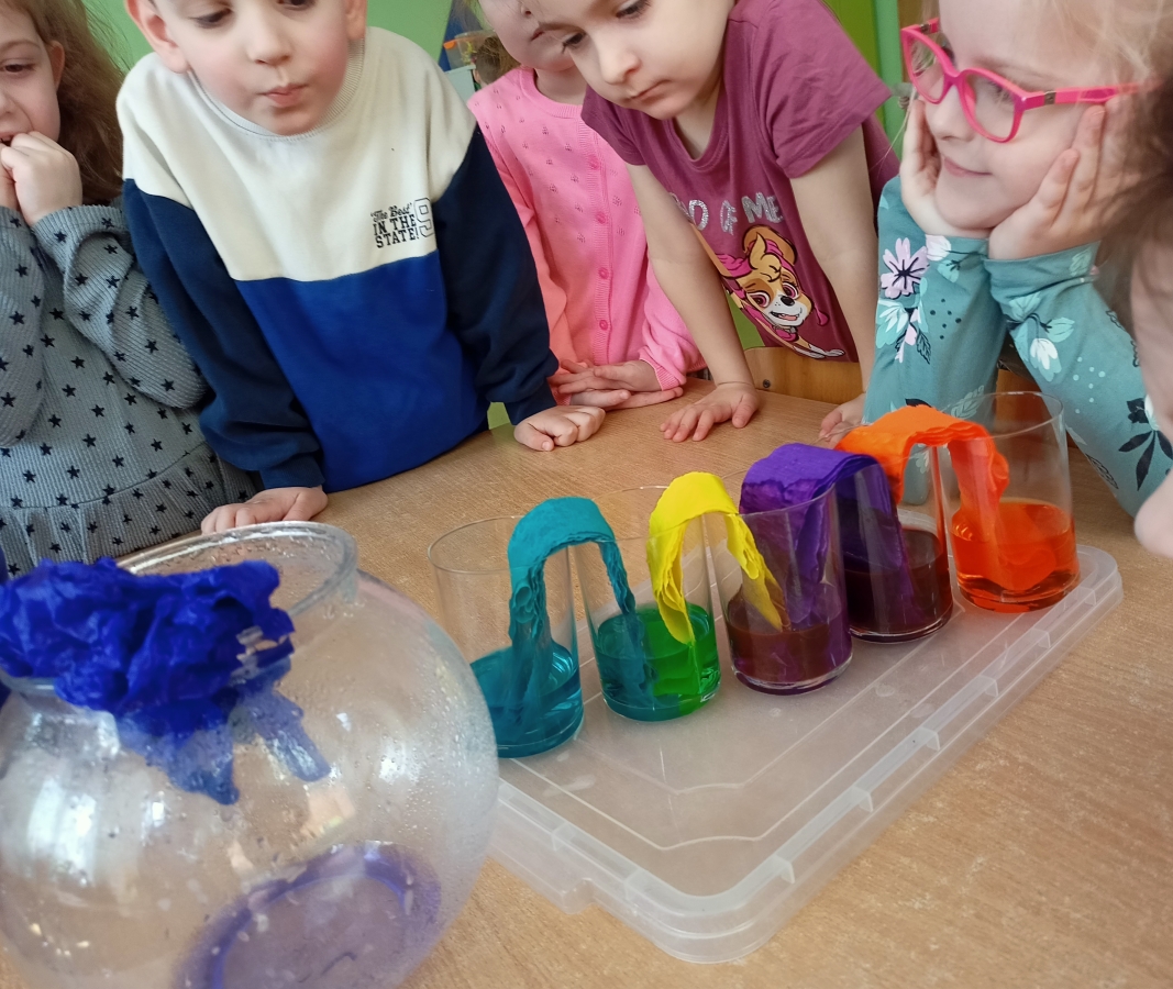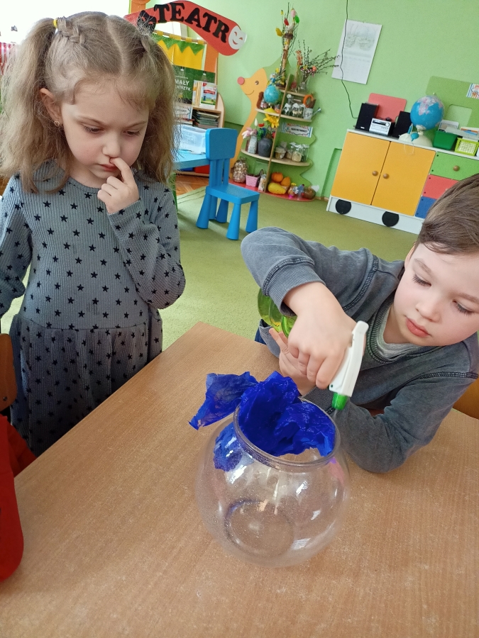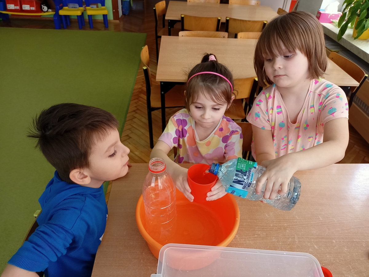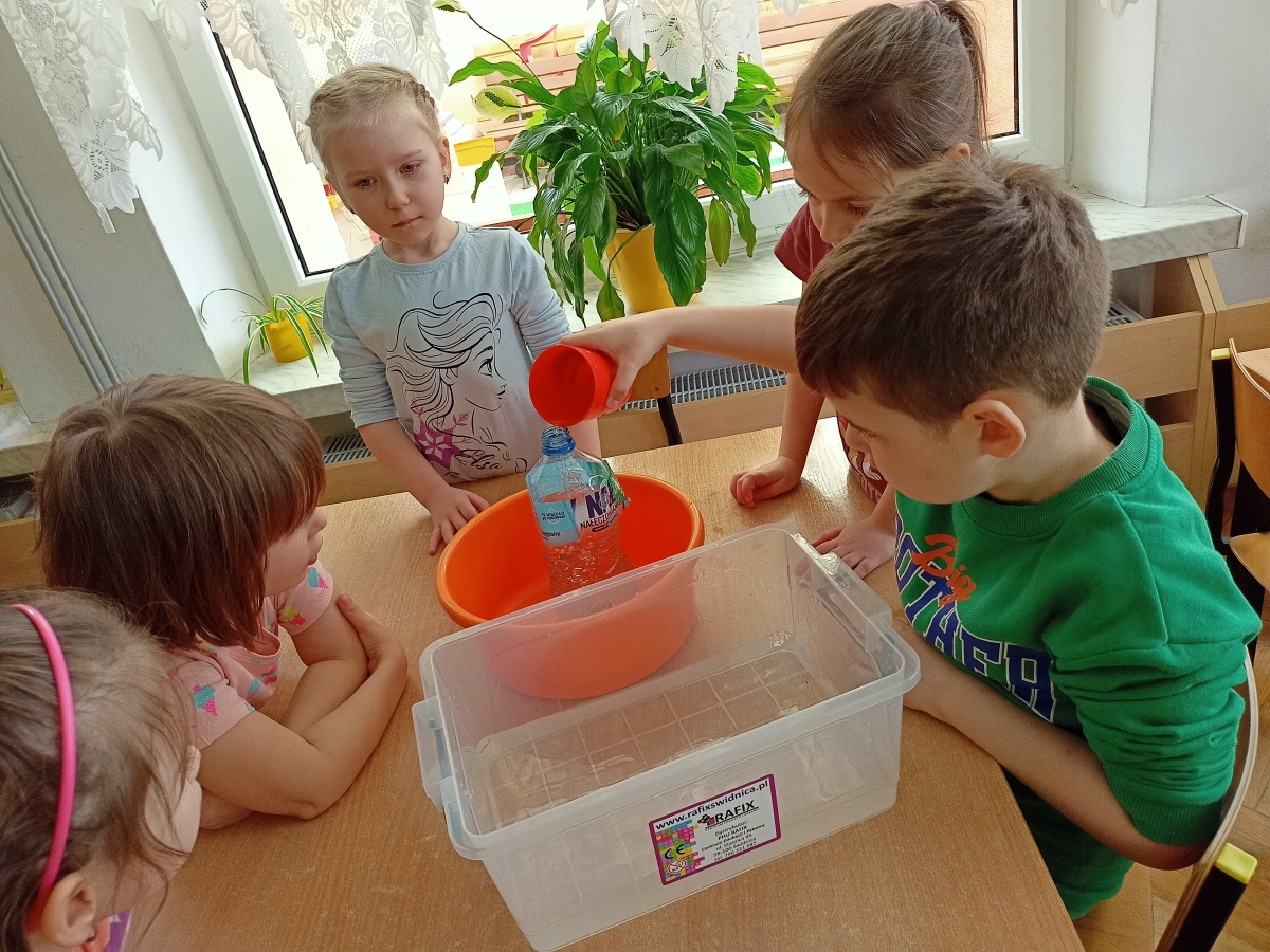 W tym tygodniu w grupie IV Stokrotki obchodziliśmy Światowy Dzień Wody💦🌧️💧Do czego potrzebna jest woda ? Podczas zajęć dzieci dowiedziały się, że woda jest nam niezbędna do życia. Należy i nią dbać, oszczędzać i dobrze wykorzystywać. Były to działania wzbogacające wiedzę na temat wody w życiu codziennym, wyrabiające nawyk jej oszczędzania. Przedszkolaki rozwiązywały zagadki, brały udział w zabawach badawczych z wodą polegających na mierzeniu objętości wody, eksperymentach i doświadczeniach: Co pływa, a co tonie?, Wędrująca woda, Jak powstaje deszcz? To czas dla rozwijania zainteresowań naszych małych odkrywców.
