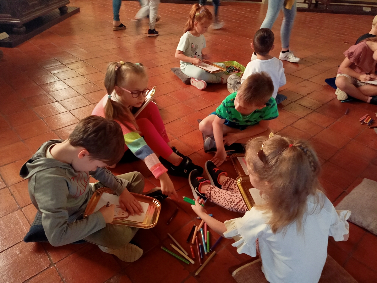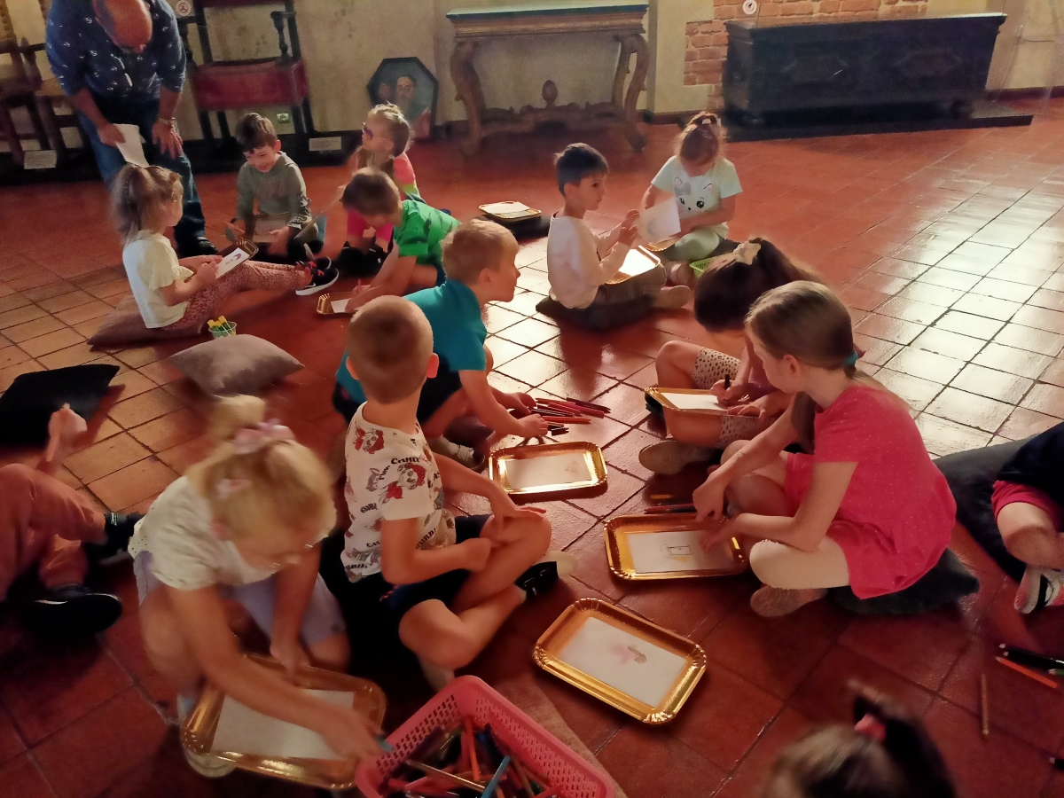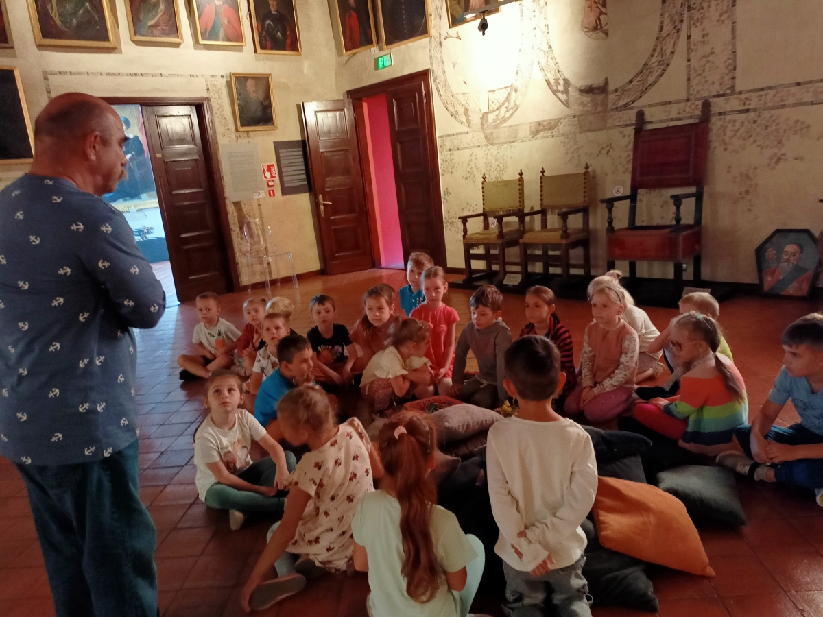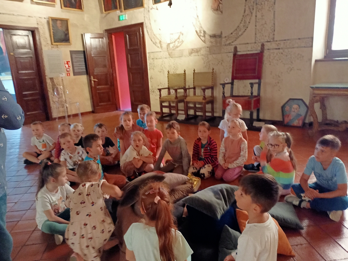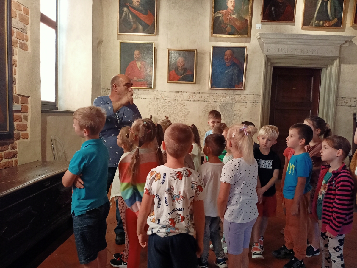 Dnia 27.09.2023 r. na sali Muzeum Okręgowego w Tarnowie, gdzie znajduje się jedna z największych kolekcji portretów sarmackich, dzieci z grupy V zobaczyły jak wyglądali i ubierali się dawni przodkowie. Zajęcia zostały podsumowane wykonaniem przestrzennego obrazka – portretu kolegi lub koleżanki z grupy, ozdobionego złotymi ramami. Były to drugie i bardzo ciekawe zajęcia muzealne z cyklu ,, Akademia pod maszkaronem “.