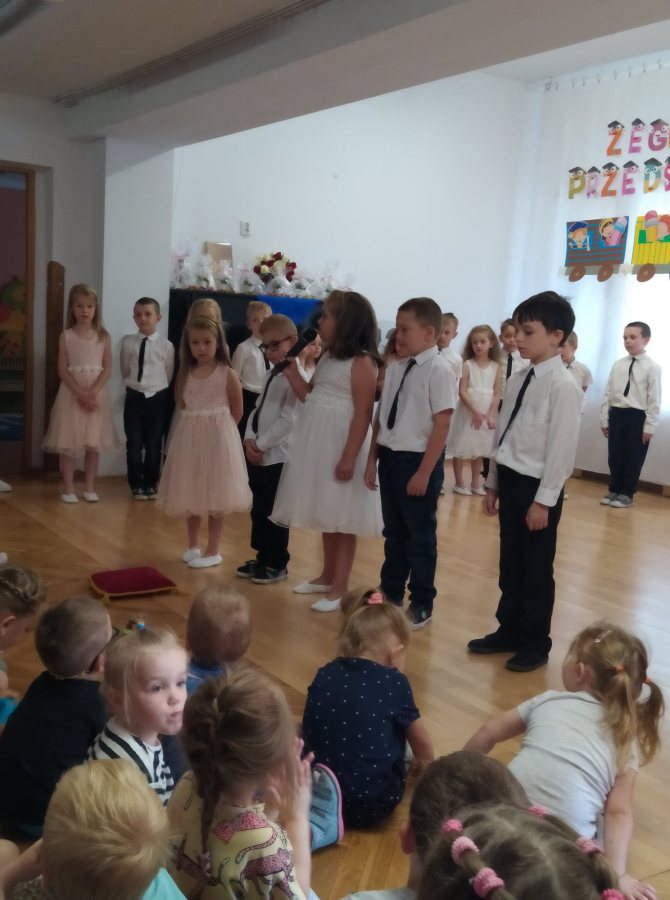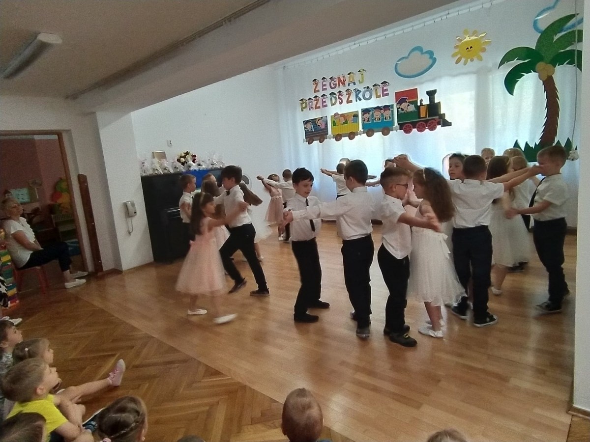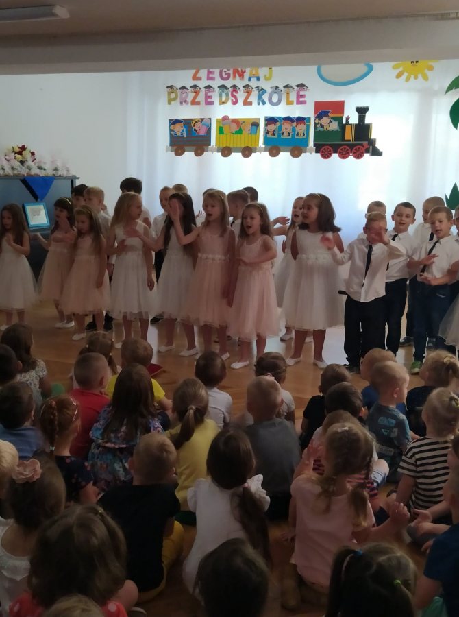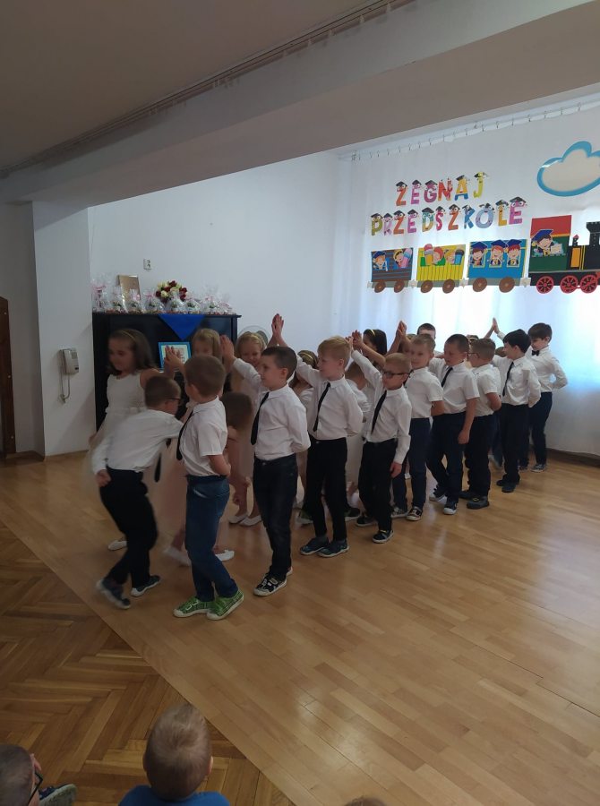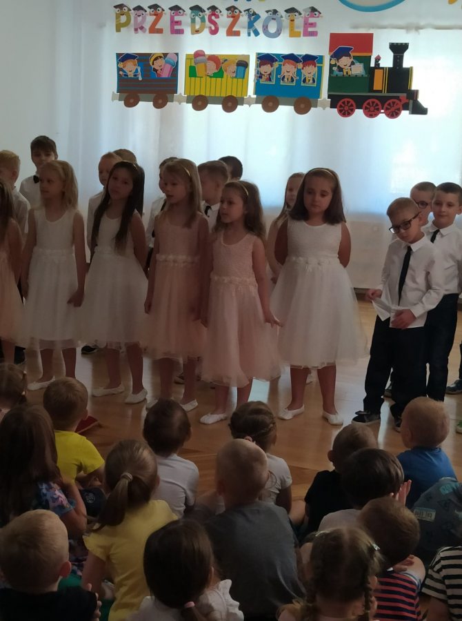 22 czerwca 2022 r. odbyła się Uroczystość Pożegnania  Przedszkola. Tego dnia dzieci 6 – letnie z grupy V Motylki żegnały się ze swoimi paniami, całym personelem, a także młodszymi kolegami i koleżankami. Starszaki poprzez wiersze, piosenki podziękowały wszystkim pracownikom za czas spędzony w przedszkolu, dobre serce, opiekę, przekazaną wiedzę oraz umiejętności. Były łzy śmiechu, lecz także i wzruszenia. Za swój piękny występ dzieci otrzymały gromkie brawa i pochwały. Po programie artystycznym Pani Dyrektor podziękowała dzieciom za występ i życzyła im by następny etap życia był początkiem wspaniałej, pełnej sukcesów drogi.