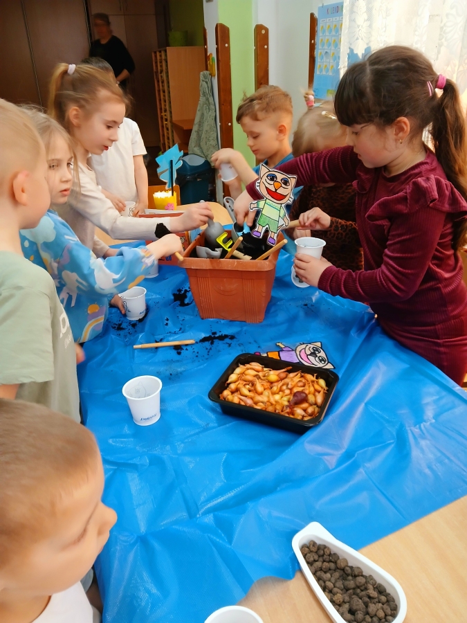 Bajka “Kicia Kocia co zasiejemy w ogródku” zainspirowała grupę Żabki do założenia małego ogródka w sali. W trakcie zajęć rozmawialiśmy o tym, czego rośliny potrzebują do wzrostu oraz jak należy o nie dbać. Dzieci miały okazję samodzielnie posadzić cebulki, wysiać rzeżuchę. Teraz będą obserwować jak rośliny rosną, rozwijają się i jak smakują.