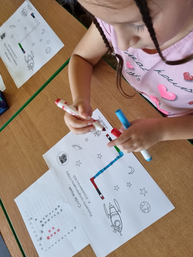 18..10.2022 grupa V wzięła udział w zajęciach pokazowych “Kodowanie na dywanie” w Szkole Podstawowej nr 3 w Tarnowie . Wspaniałe bawiliśmy się programując roboty, rysując ,układając kubki według podanego kodu, budując z klocków lego.