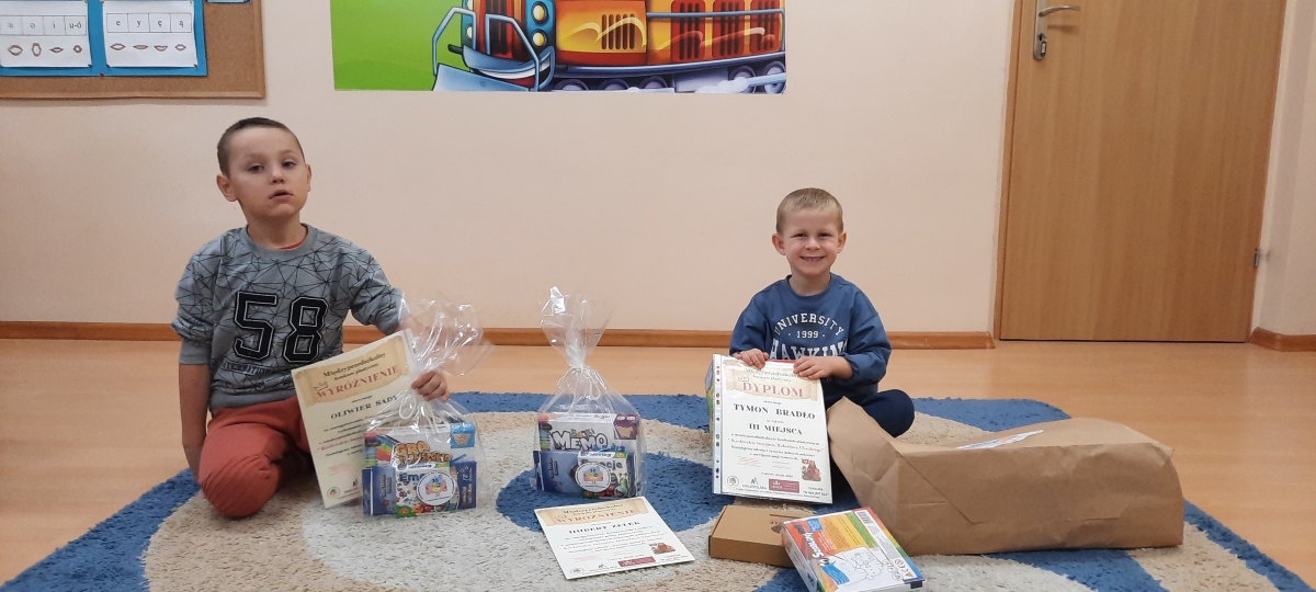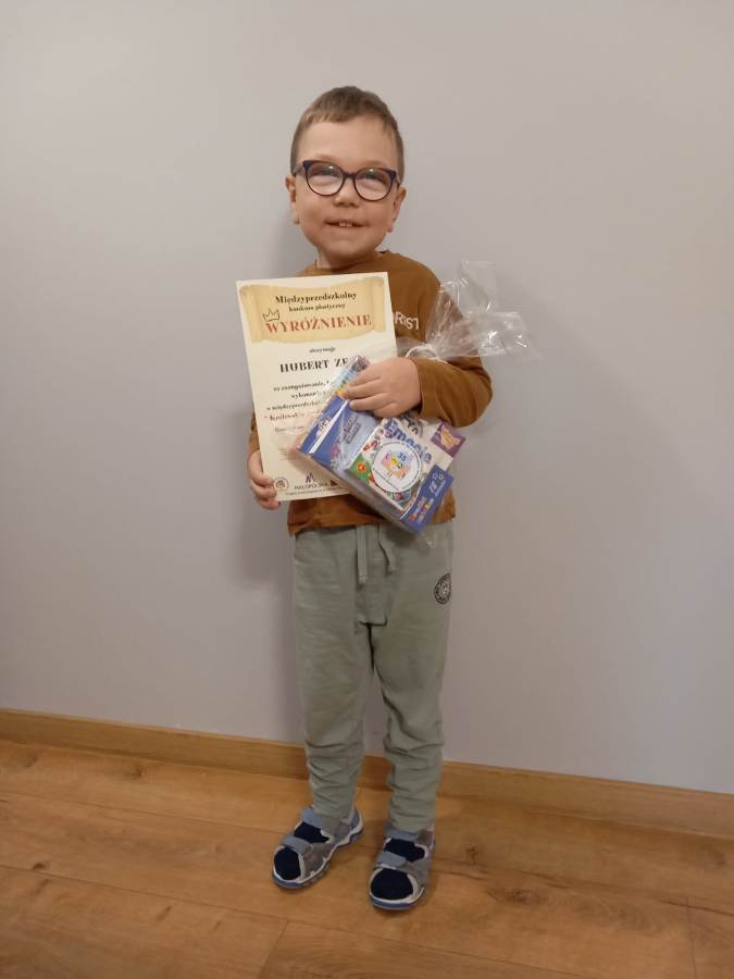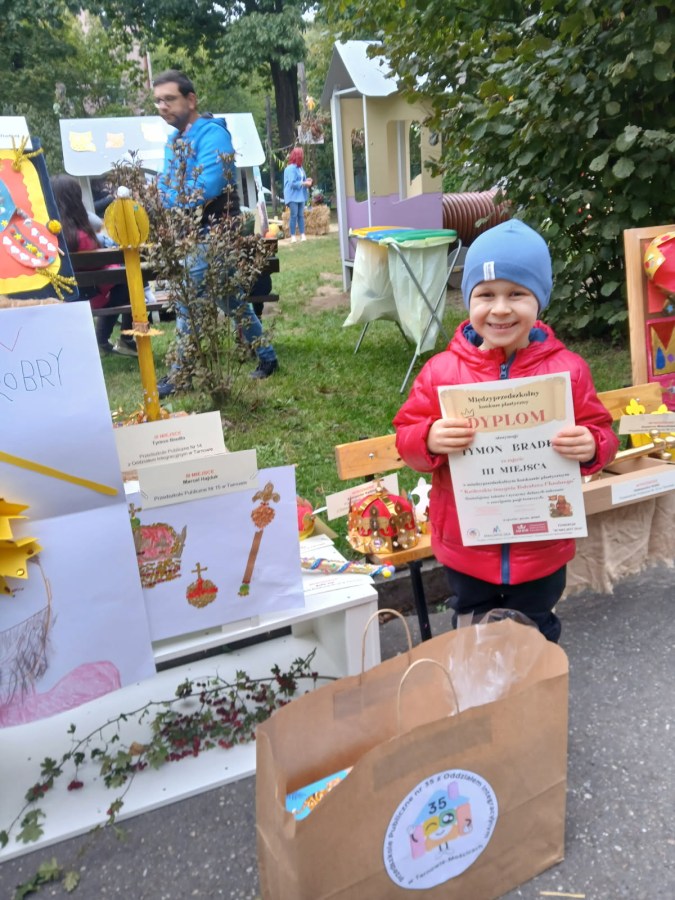 Hubert, Tymon z grupy IV oraz Oliwier z grupy V wzięli udział w międzyprzedszkolnym konkursie plastyczno – technicznym pt. ,,Królewskie Insygnia Bolesława Chrobrego” zorganizowanym przez Przedszkole Publiczne nr 35 z Oddziałem Integracyjnym w Tarnowie. Celem konkursu było kształtowanie postaw patriotycznych dzieci, rozwijanie wyobraźni oraz aktywności plastycznej. Tymon zdobył 3 miejsce, Hubert z Oliwierem otrzymali wyróżnienie. Gratulujemy!!!