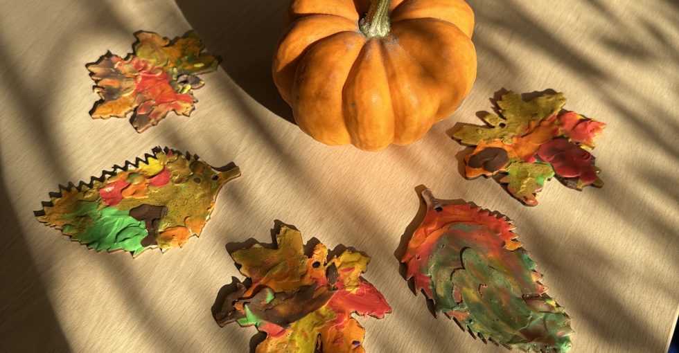 Podczas kolejnych zajęć kółka plastycznego dzieci odkrywały nowy, niezwykle ciekawy sposób tworzenia – „malowanie plasteliną”. Zamiast farb i pędzli użyły kolorowej plasteliny, którą rozmazywały palcami na sklejkach, tworząc barwne kompozycje inspirowane jesiennymi liśćmi. Dzięki tej technice dzieci rozwijały sprawność manualną, wyobraźnię oraz zmysł estetyczny. Zachęcamy do podziwiania wyjątkowego efektu dziecięcej twórczości.