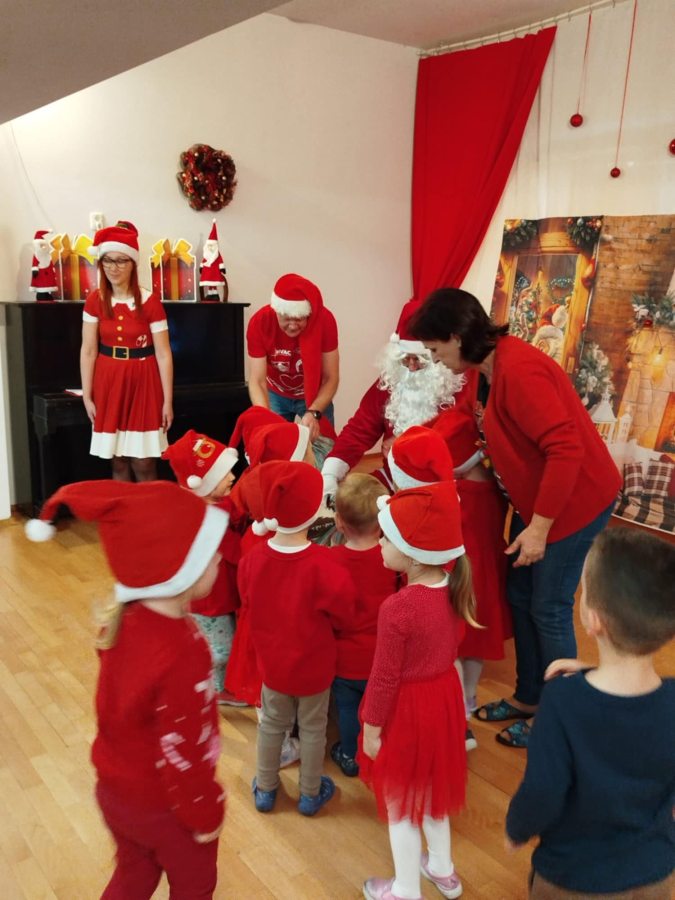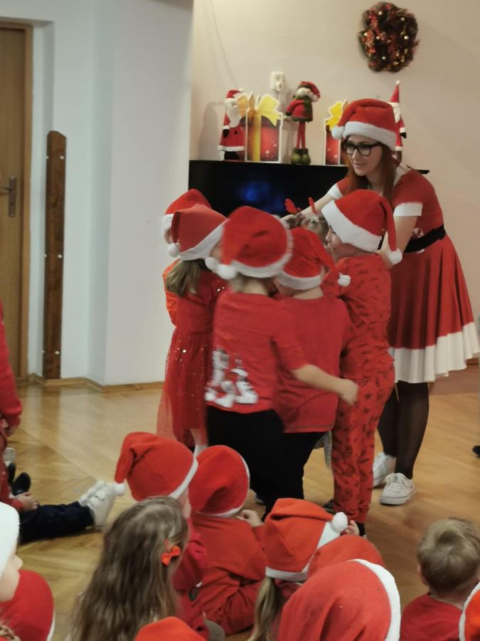 Mikołaj, Mikołaj jedzie samochodem… takimi słowami piosenki, dzieci przywitały Mikołaja. Pomimo braku białego puchu, jak co roku przybył na czas. Dzieci zaśpiewały dla niego piosenki, recytowały wiersze oraz wspólnie z Mikołajem bawiły się, tworząc zaprzęgi reniferów. Mikołaj podarował dzieciom piękne prezenty, których otrzymanie dostarczyło im mnóstwo radości i uśmiechu. Dlatego Mikołaju czekamy na Ciebie w przyszłym roku.