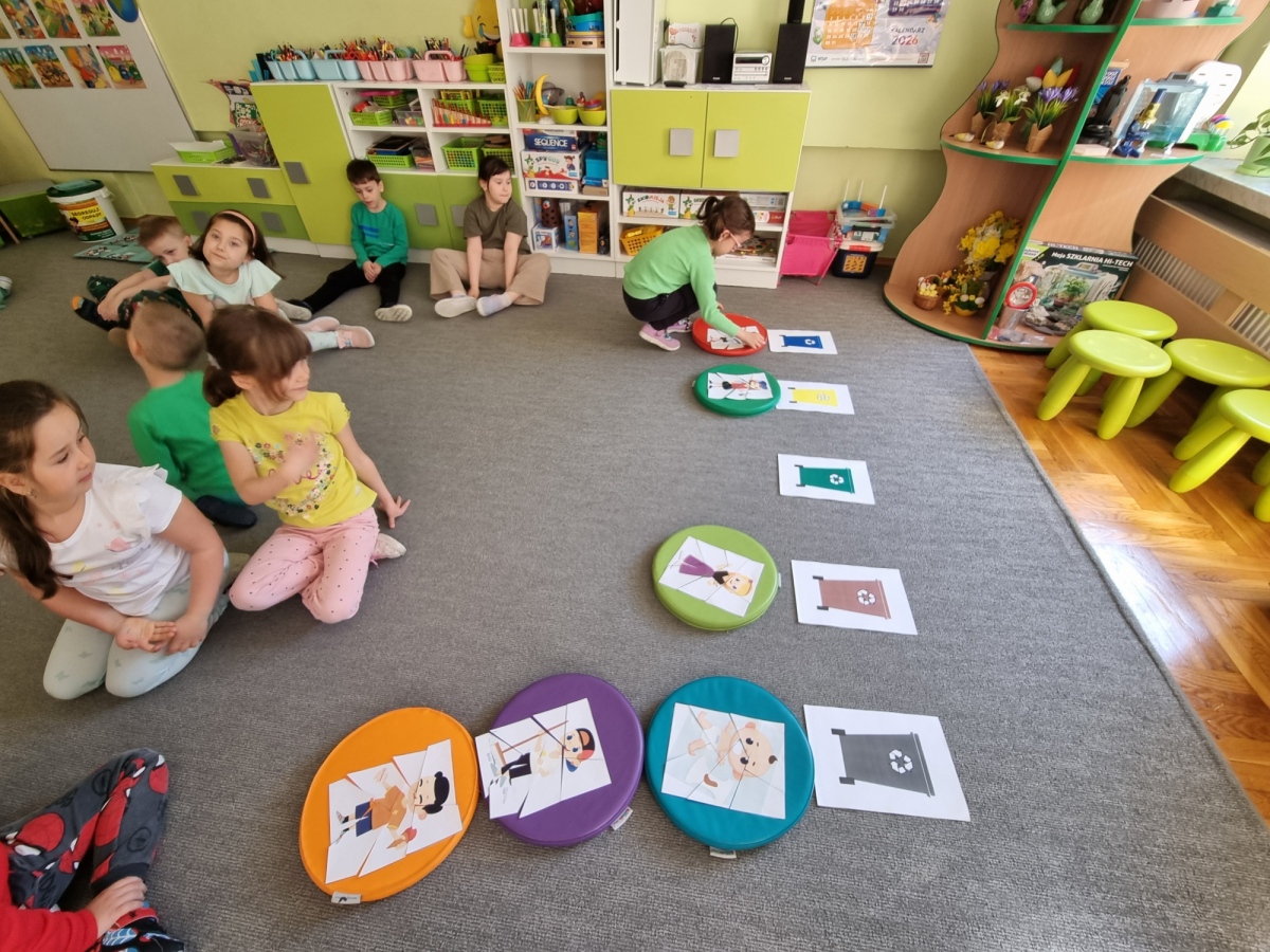 W tym tygodniu nasze starszaki realizowały kolejną misję z Kubusiowymi Przyjaciółmi Przyrody – recykling. Podczas zajęć dowiedziały się, co to jest recykling oraz dlaczego ma on tak duże znaczenie dla ochrony środowiska. Szczególną uwagę poświęcono segregacji odpadów jako kluczowemu elementowi, bez którego proces recyklingu nie mógłby prawidłowo funkcjonować.