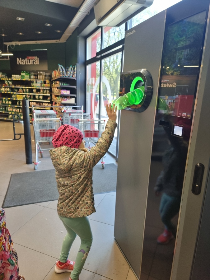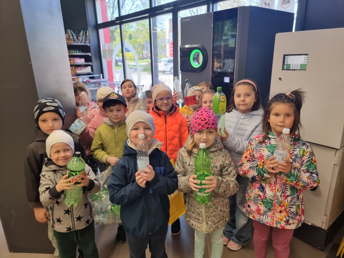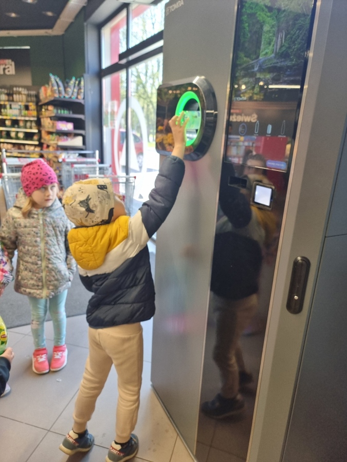 Zwieńczeniem zajęć była wycieczka do pobliskiego butelkomatu, gdzie dzieci samodzielnie mogły zwrócić butelki kaucyjne.  Było to dla nich ciekawe doświadczenie, pokazujące, że małe działania mają realny wpływ na przyrodę.
