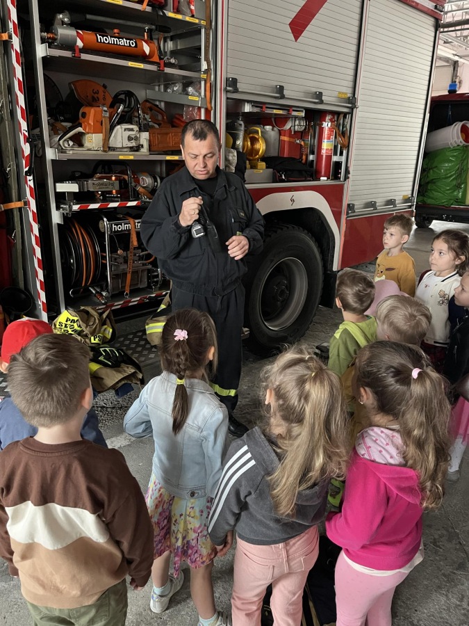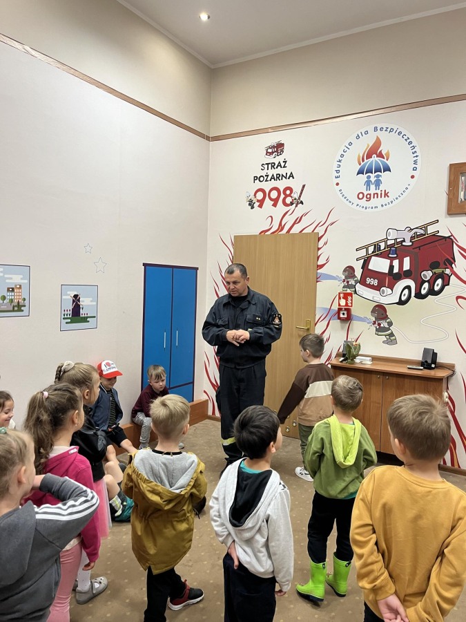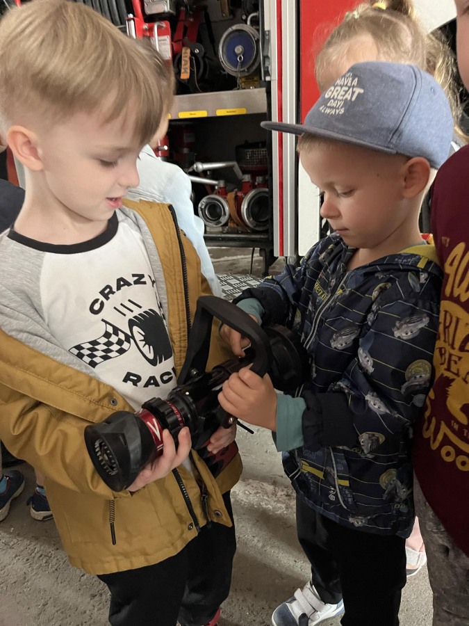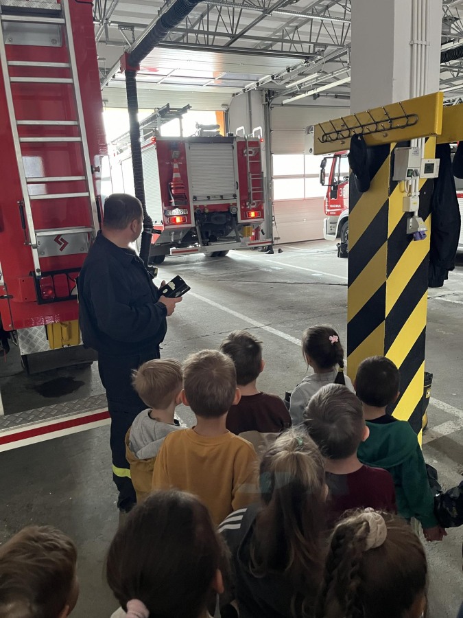 W czwartek, 23 maja dzieci z grupy II Motylki wybrały się na wycieczkę do Państwowej Straży Pożarnej w naszym mieście. Przedszkolaki dowiedziały się o trudnej i niebezpiecznej pracy strażaków, która nie polega tyko na gaszeniu pożarów, ale również na udzielaniu pomocy ludziom podczas powodzi, usuwaniu skutków wypadków samochodowych oraz wichur. Dzieci miały okazję zobaczyć specjalistyczne wozy strażackie wraz z całym wyposażeniem, sprzęt gaśniczy i ratunkowy oraz strój w jaki ubierają się strażacy do akcji. Wizyta w straży pożarnej to doskonała forma edukacyjnego uświadomienia dzieci o zasadach bezpieczeństwa oraz właściwego zachowania się w przypadku pożaru, wypadku i innych zagrożeń. Dziękujemy strażakom za miłe i pouczające spotkanie. Życzymy wszystkim dalszej efektywnej służby i skutecznej realizacji nawet najtrudniejszych zadań.
