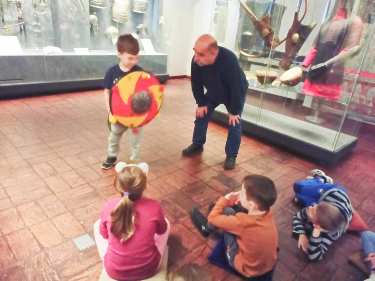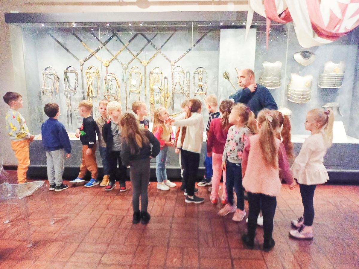 Grupa V Stokrotki odbyła ostatnią lekcję muzealną Akademia pod maszkaronem pod tytułem Zbrojownia w Muzeum Okręgowym. Ciekawa opowieść i miejsce w jakim odbywały się zajęcia pomogły przenieść się w czasy, kiedy to rycerze jeździli na koniach i dzielnie walczyli mieczem. Dzieci oglądały prezentowane repliki uzbrojenia i broni. Na koniec spotkania zrobiliśmy pamiątkowe zdjęcie.