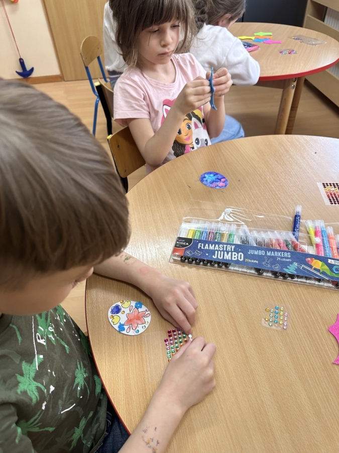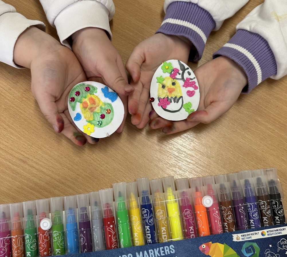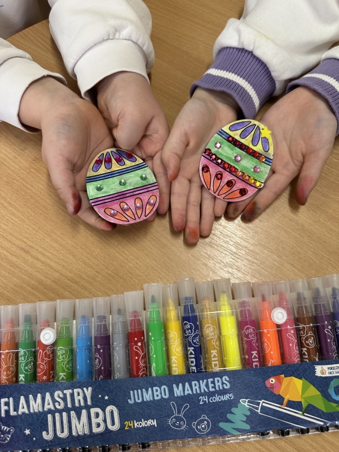 Podczas zajęć plastycznych związanych z Wielkanocą dzieci tworzyły piankowe pisanki, rozwijając przy tym swoją kreatywność i precyzję.