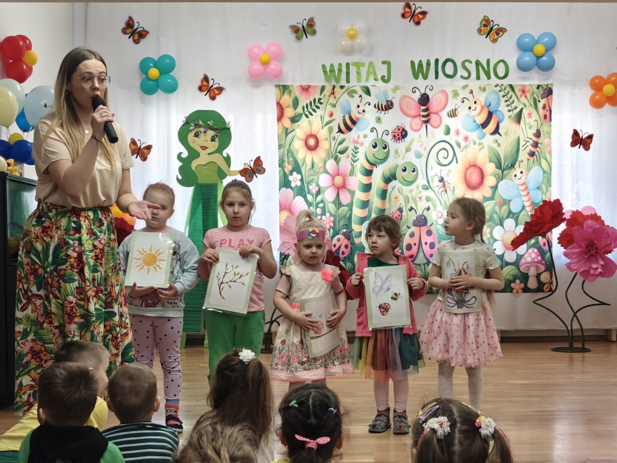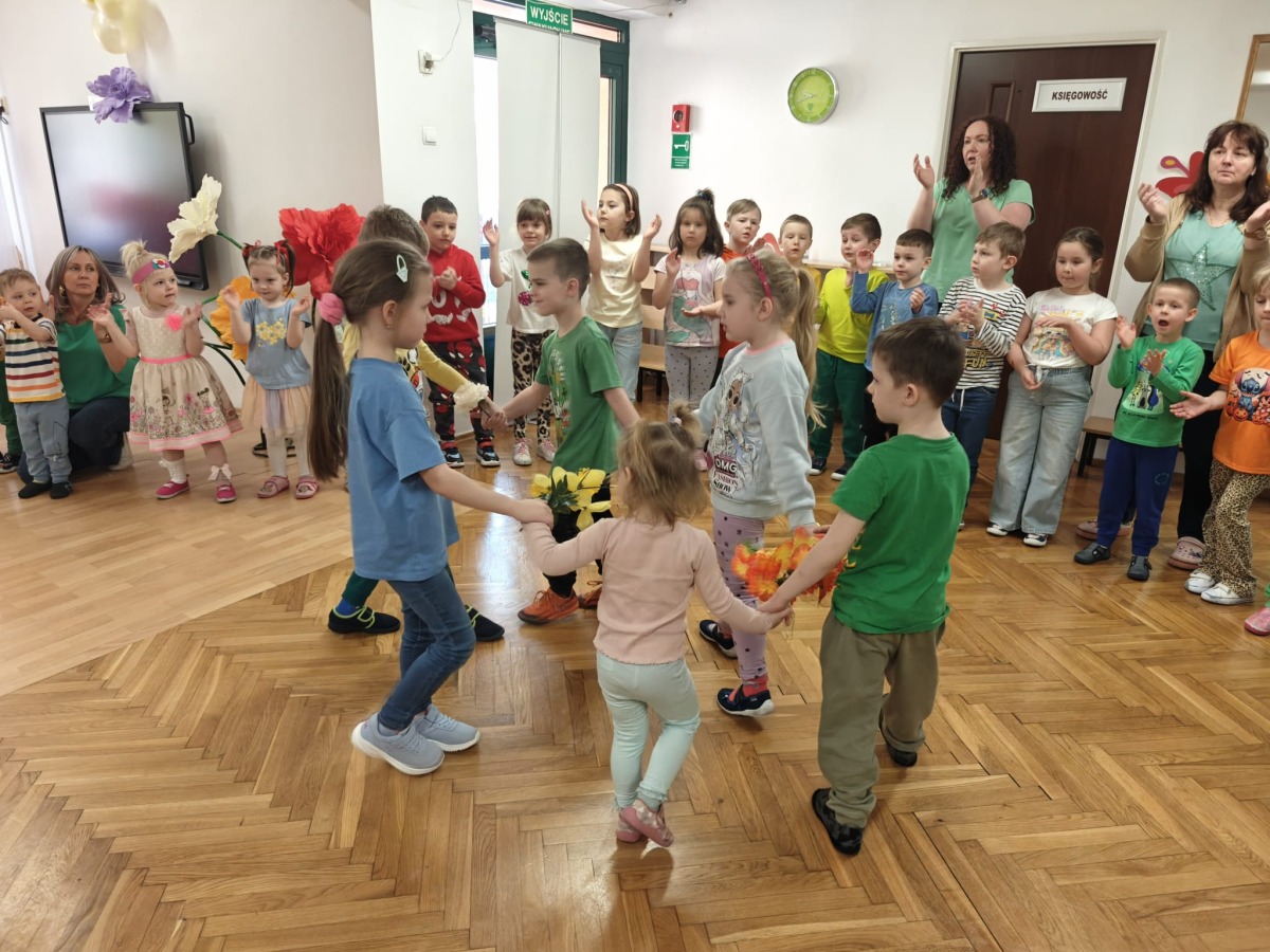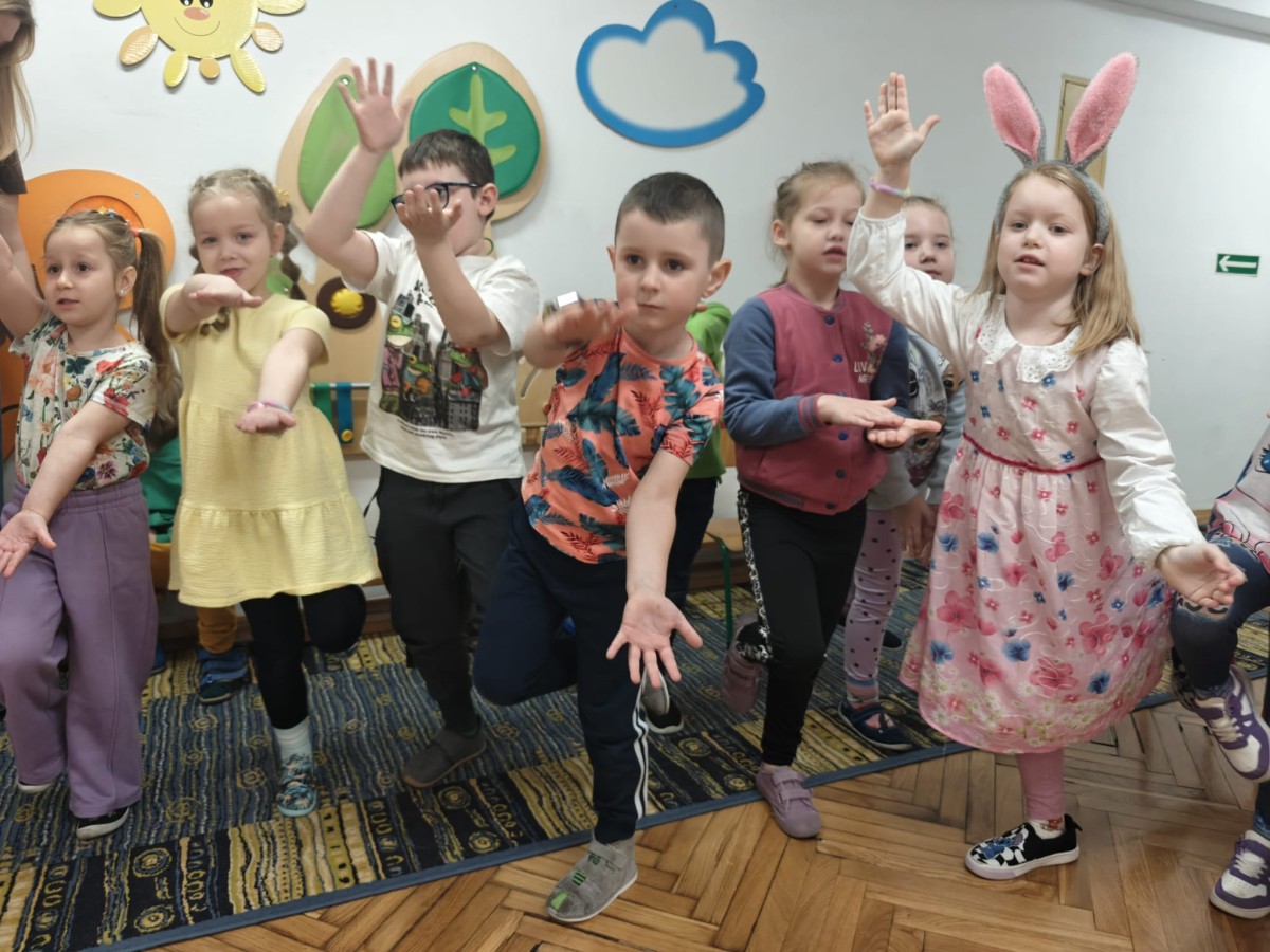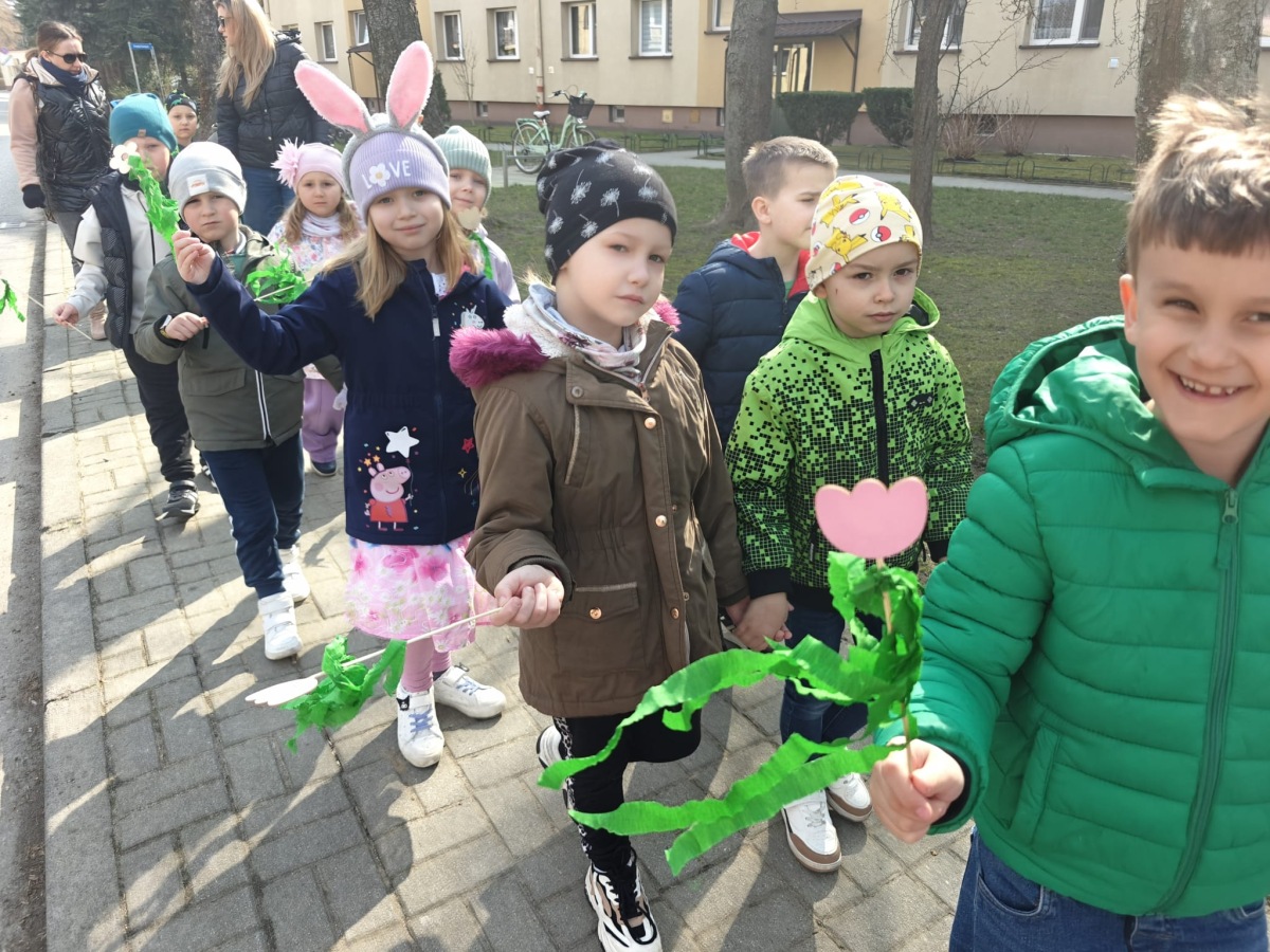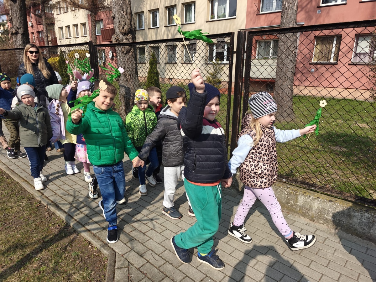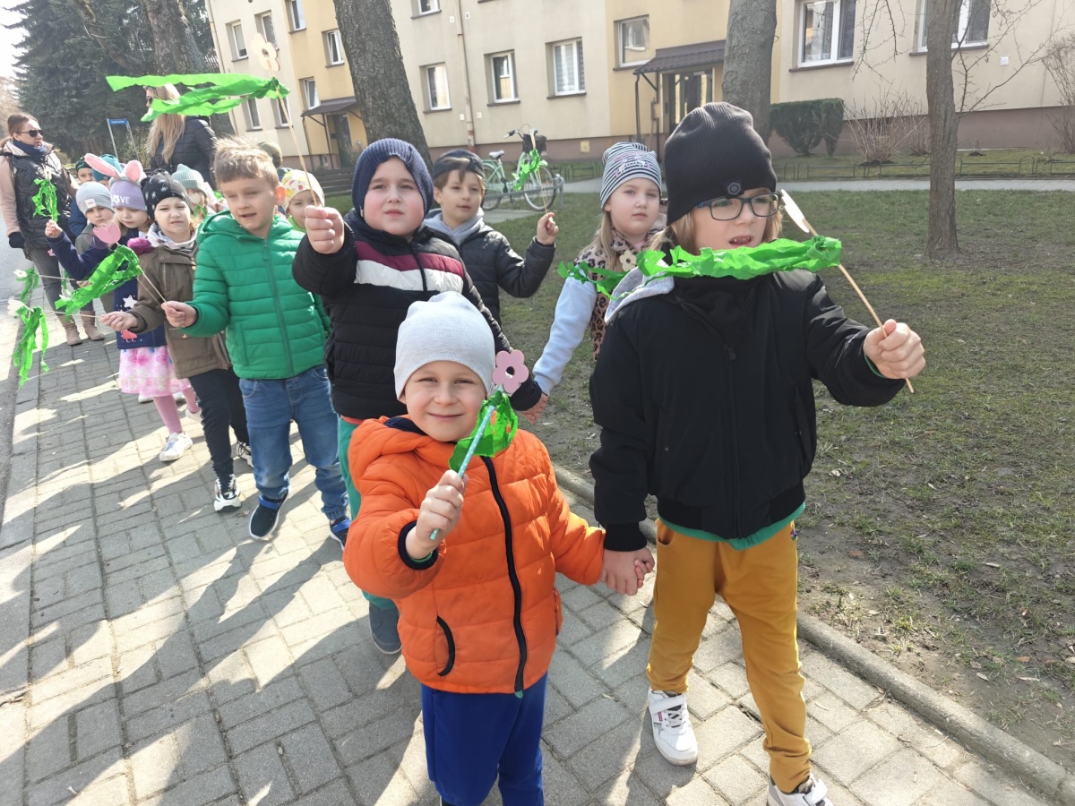 W naszym przedszkolu radośnie powitaliśmy wiosnę. Dzieci wspólnie nazywały jej pierwsze oznaki, rozwiązywały zagadki oraz bawiły się przy wiosennych piosenkach. Z zaangażowaniem ozdabiały także suknię Pani Wiosny, tworząc piękną kreację. Zwieńczeniem tego wyjątkowego dnia był wspólny spacer przy dźwiękach wiosennej muzyki, który wprowadził wszystkich w pogodny, wiosenny nastrój.