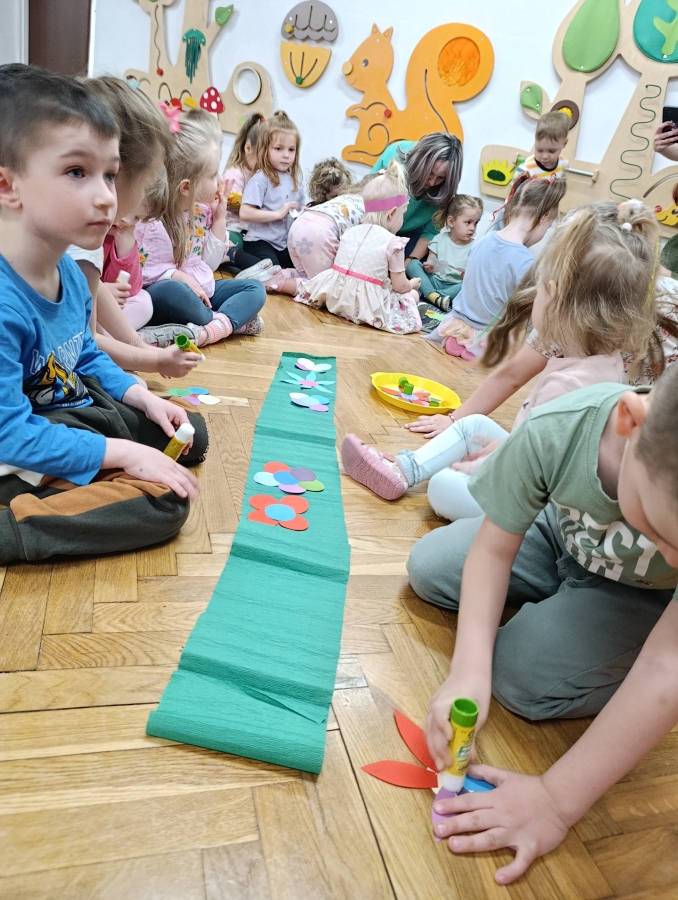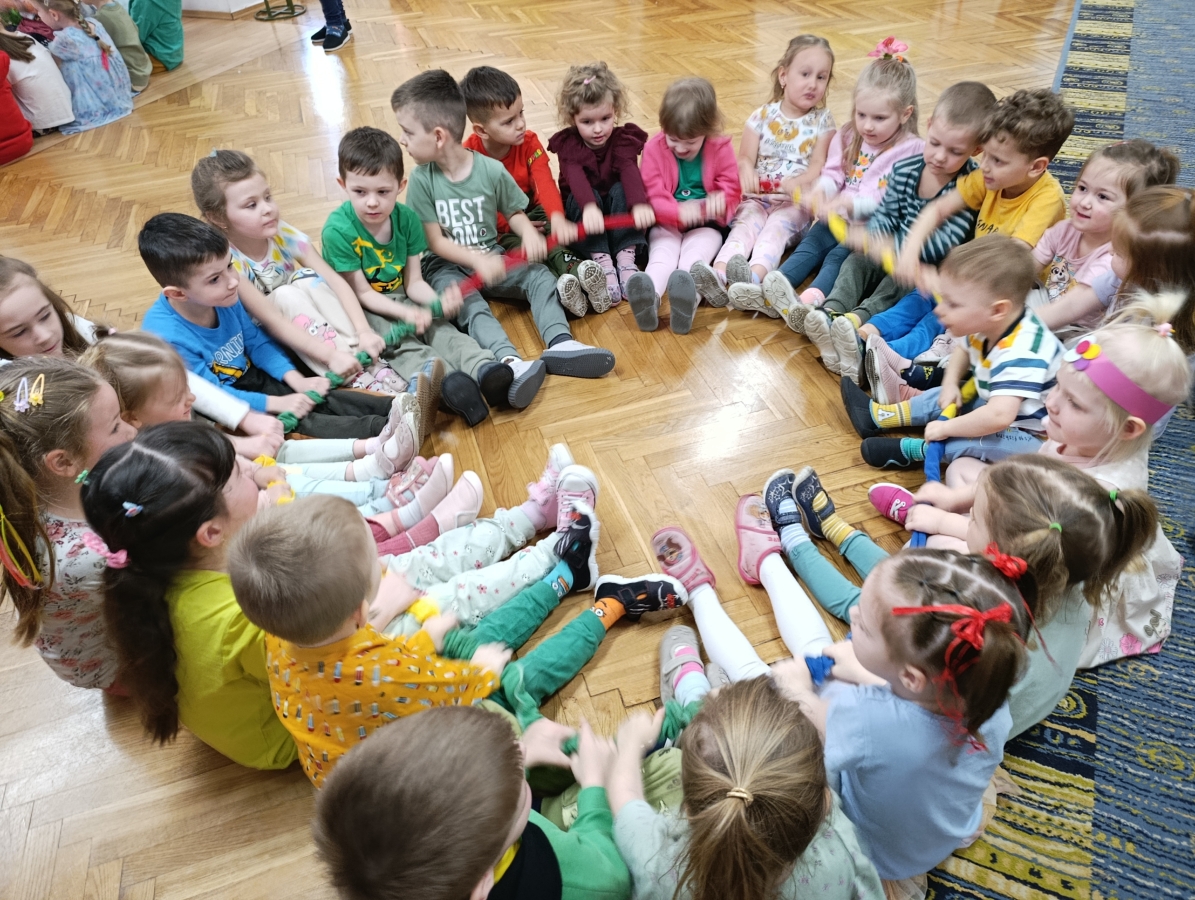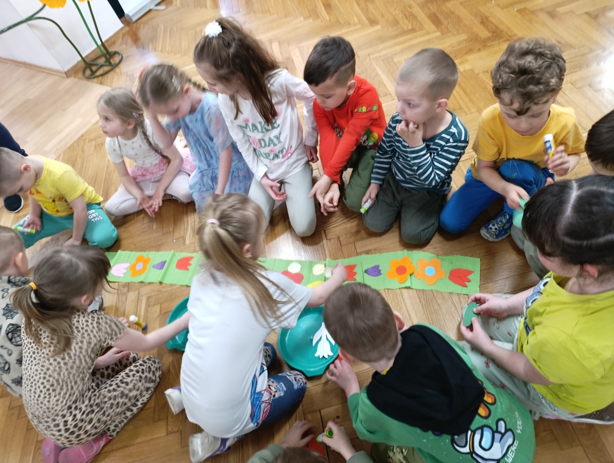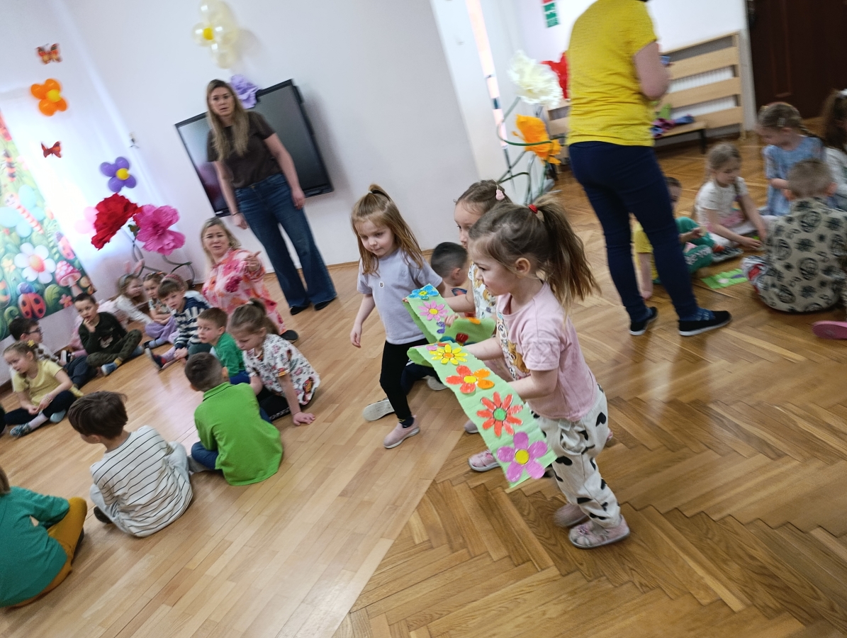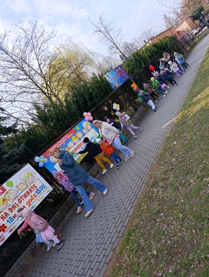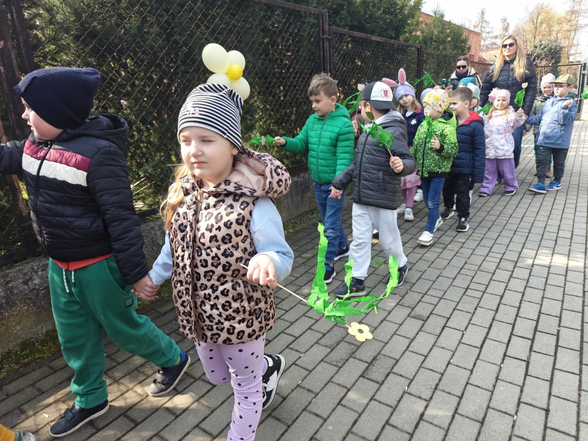 W naszym przedszkolu radośnie powitaliśmy wiosnę. Dzieci wspólnie nazywały jej pierwsze oznaki, rozwiązywały zagadki oraz bawiły się przy wiosennych piosenkach. Z zaangażowaniem ozdabiały także suknię Pani Wiosny, tworząc piękną kreację. Zwieńczeniem tego wyjątkowego dnia był wspólny spacer przy dźwiękach wiosennej muzyki, który wprowadził wszystkich w pogodny, wiosenny nastrój.