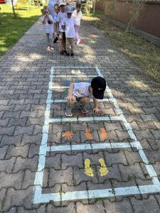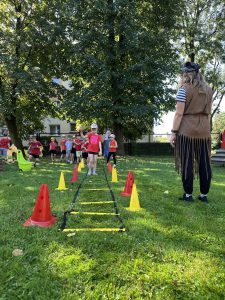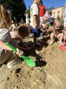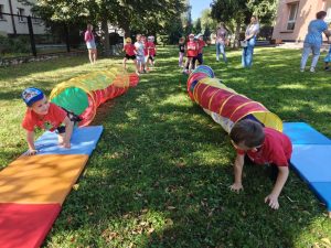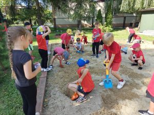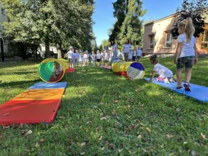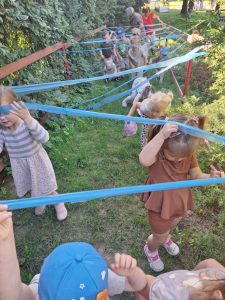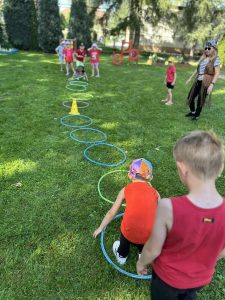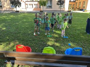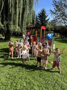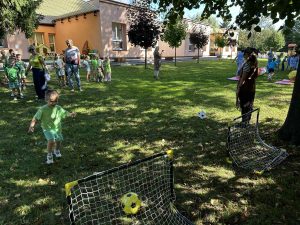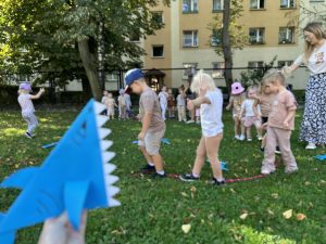 21 września 2025r. w naszym ogrodzie przedszkolnym odbyło się wyjątkowe wydarzenie – „Pirackie pożegnanie wakacji”. Dzień rozpoczęliśmy pirackim tańcem i gromkim okrzykiem „Ahoj!”. I tak dzieci wcieliły się w role małych piratów i wyruszyły w podróż po mapie skarbów, wykonując kolejne zadania ruchowe: skoki w klasy, przejście przez tunele, rzuty do kosza, strzały do bramki czy tor przeszkód. Nie zabrakło też poszukiwania złotych monet i wspólnego odkrycia pirackiej skrzyni pełnej skarbów. Pyszna lodowa niespodzianka na koniec zmagań sportowych ostudziła pirackie emocje! Była to wspaniała okazja do rozwijania sprawności fizycznej, współpracy i radości ze wspólnej zabawy.