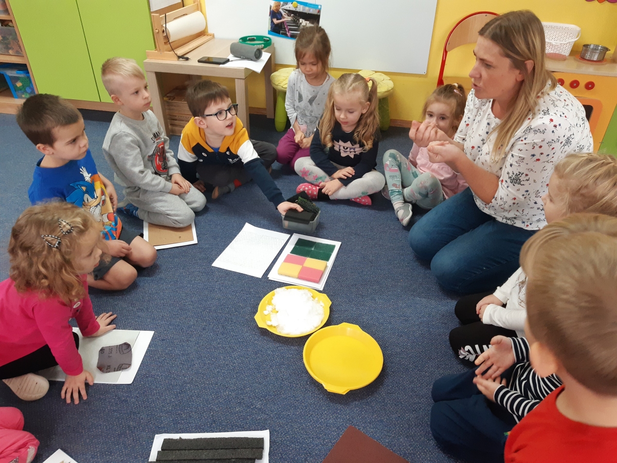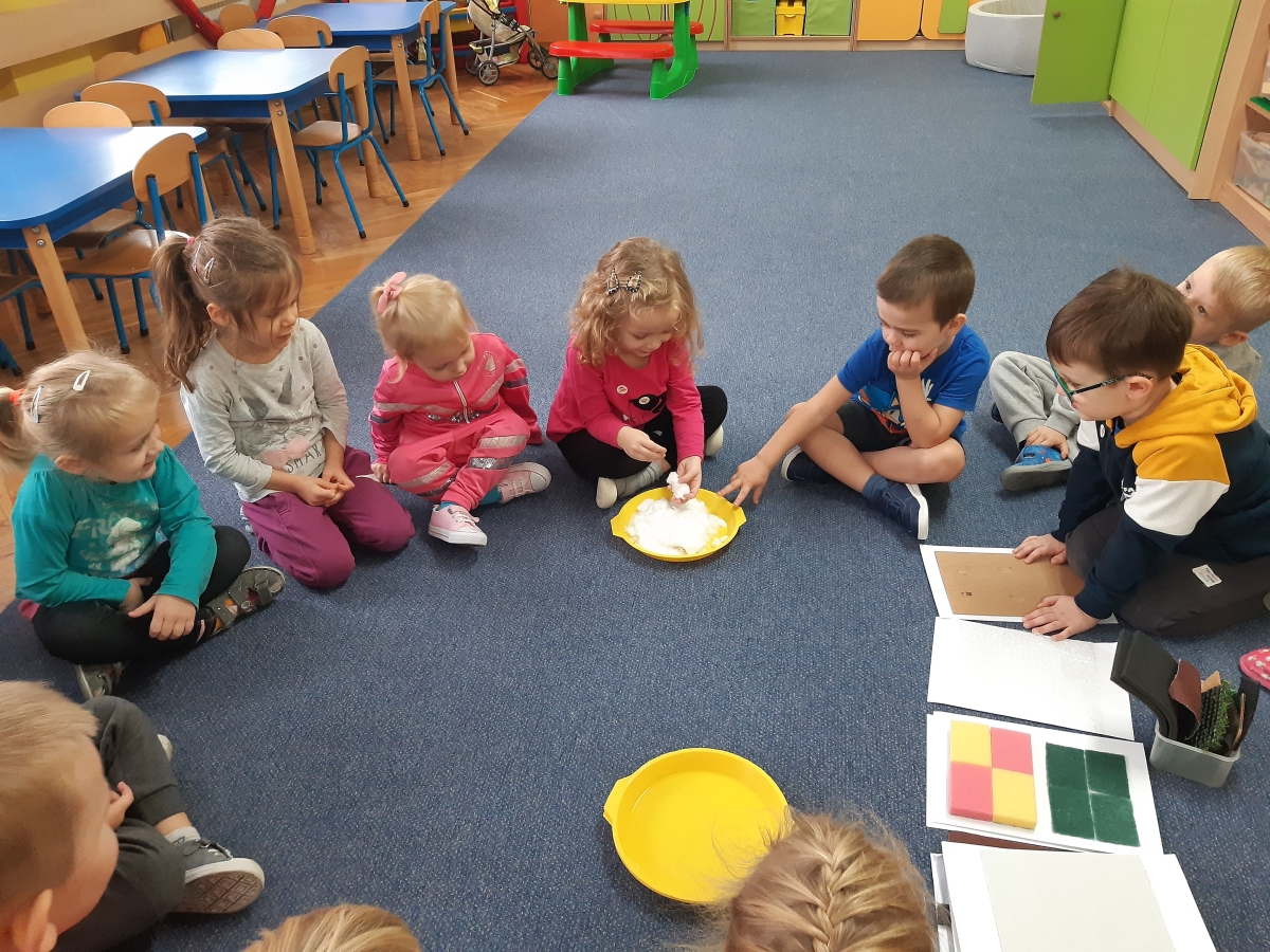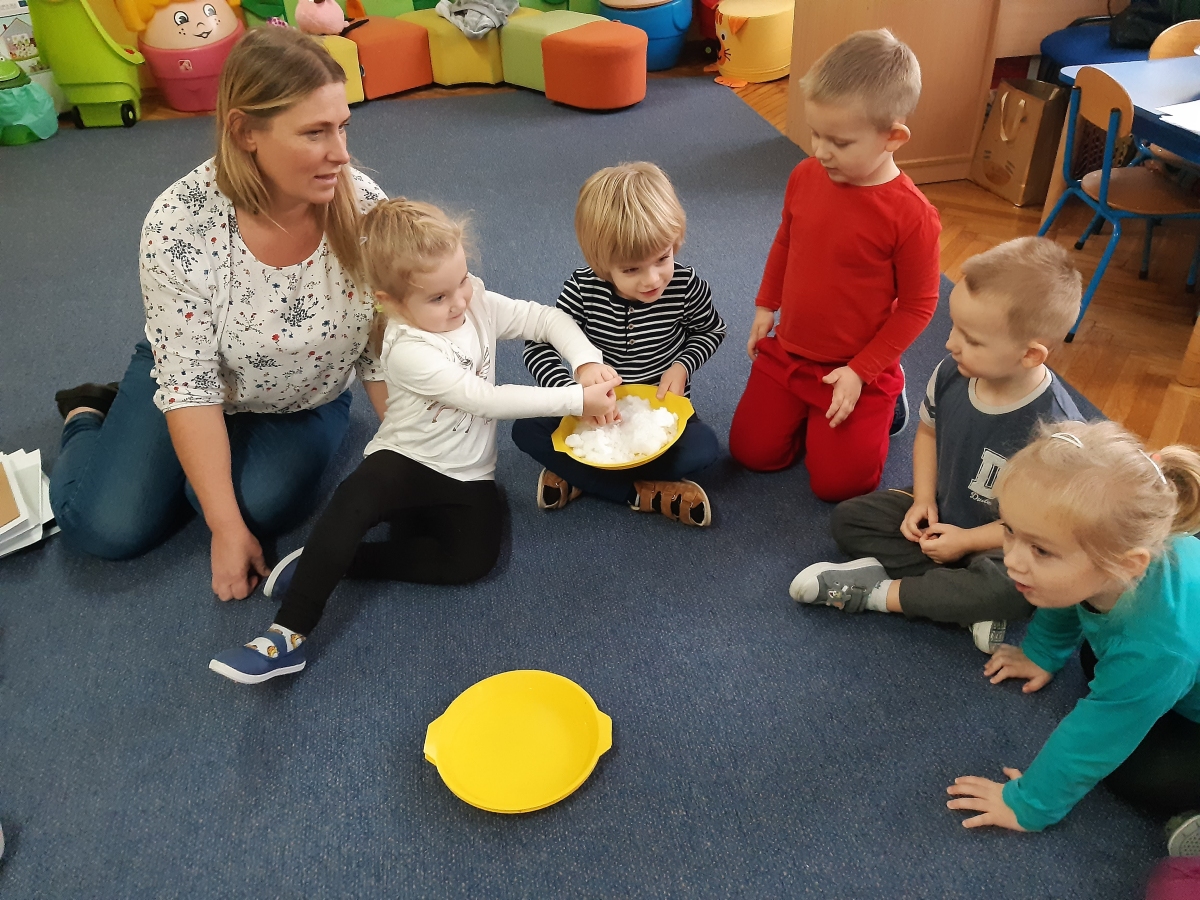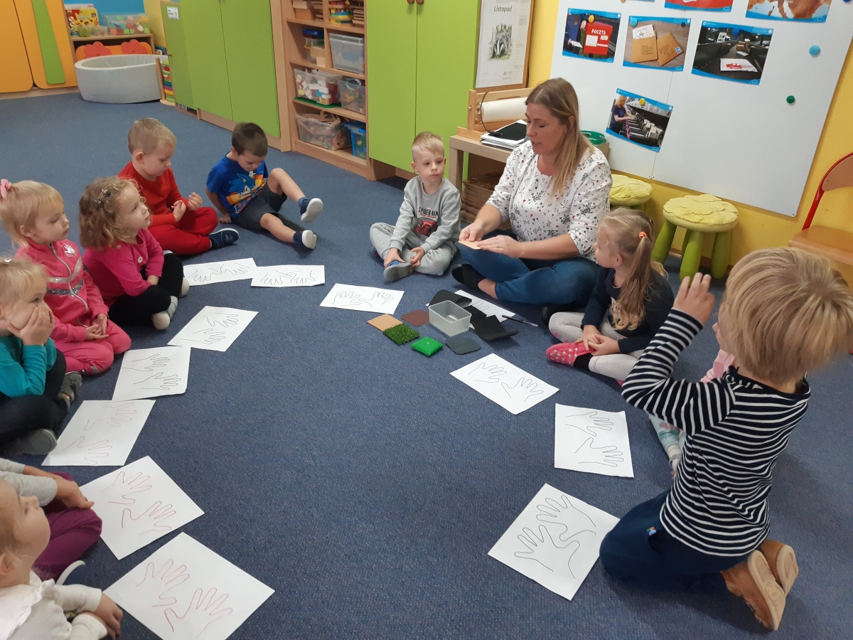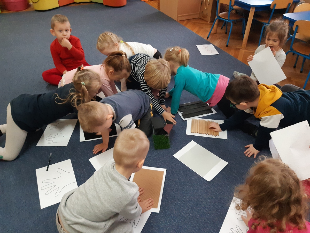 Pięć zmysłów mam i wszystkie znam…” Grupa III Biedronki 🐞 poznała kolejny zmysł – tym razem zmysł dotyku 🤲✋🤚 w ramach Ogólnopolskiego Projektu „Gramy zmysłami”. Poprzez dotyk otrzymujemy bardzo ważne informacje z zewnątrz. Uczymy się czy jest zimno czy ciepło, mokro czy sucho, miękko czy twardo. W trakcie naszych zajęć pojawiły się ciekawe zabawy i zagadki sensoryczne oraz lubiane przez dzieci masy plastyczne.