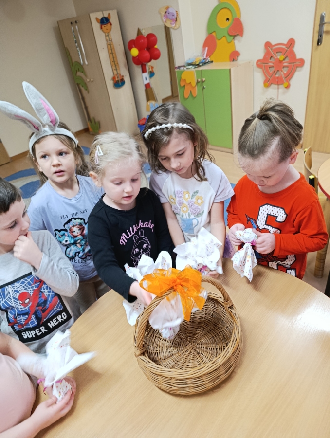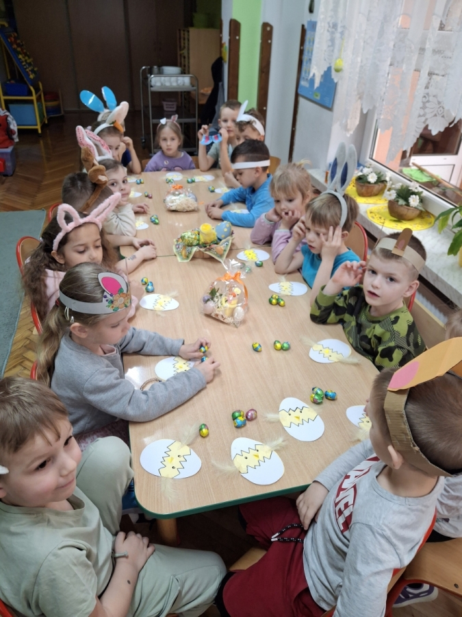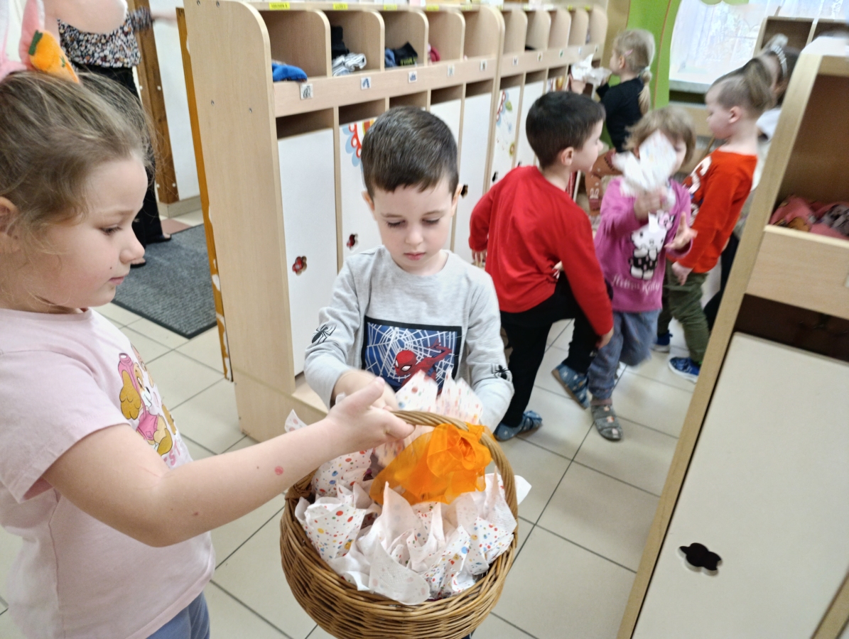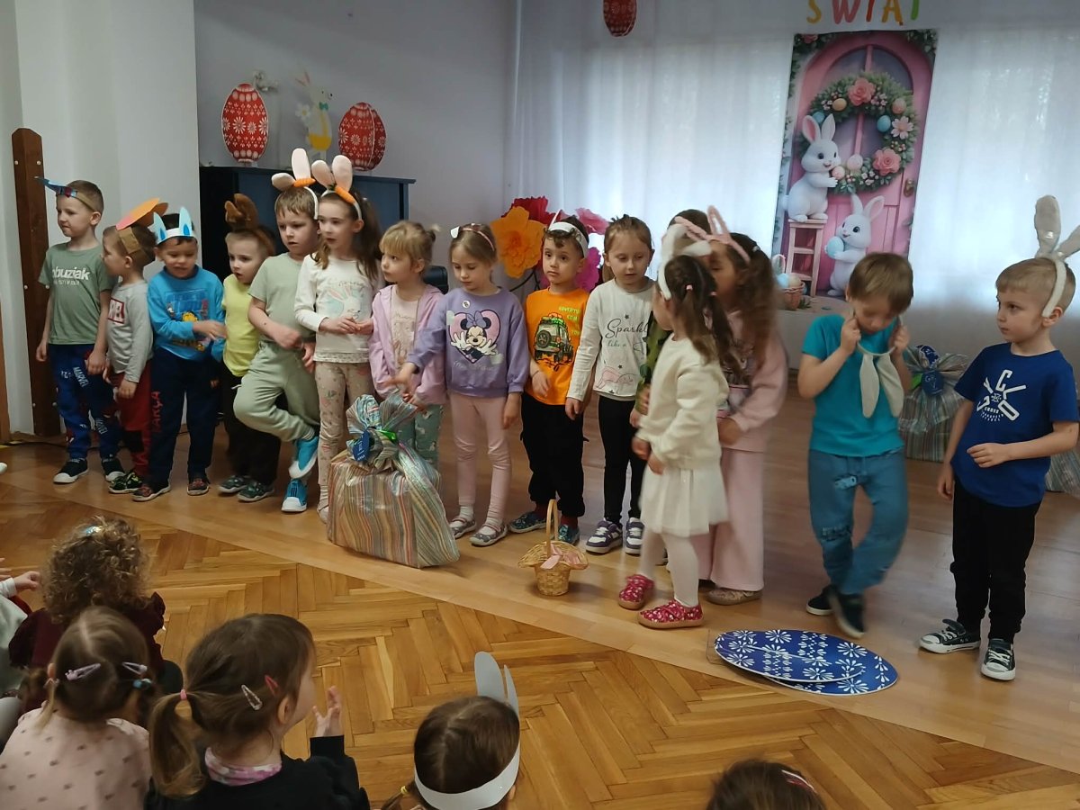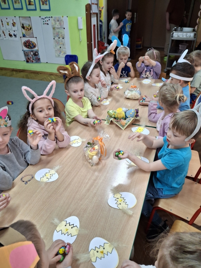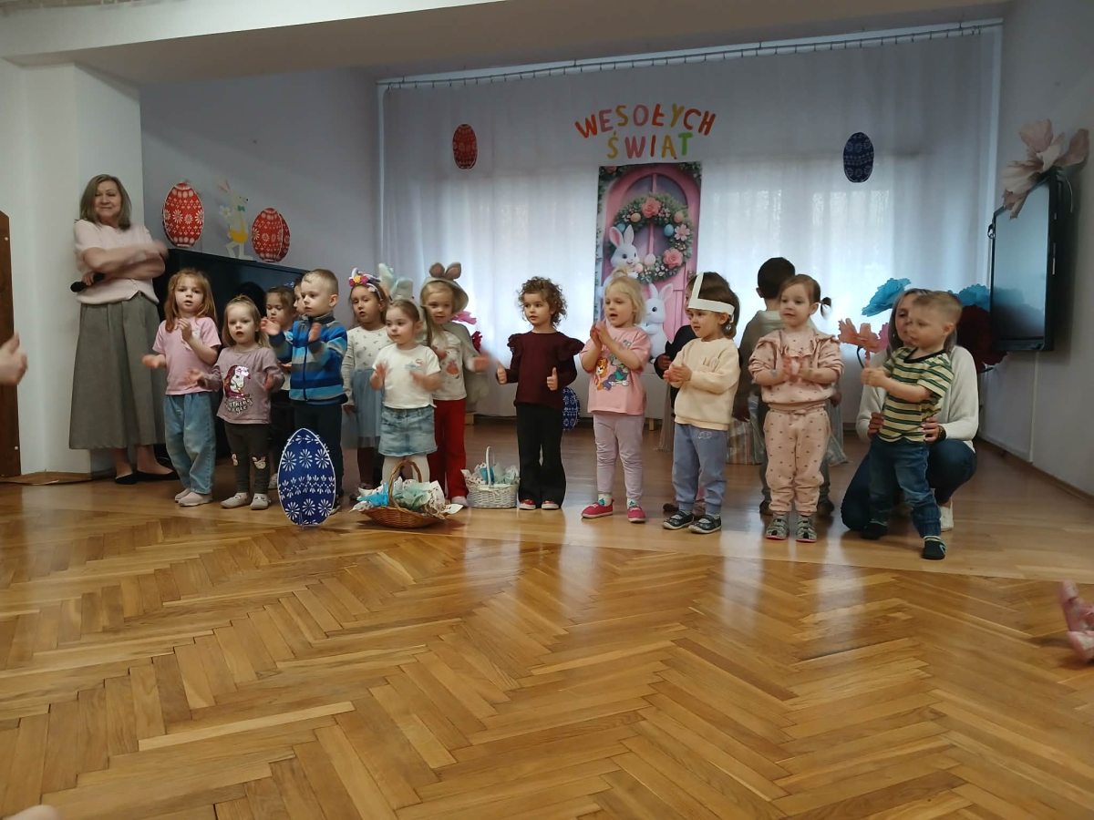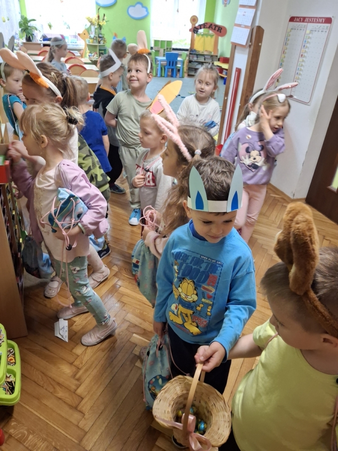 W naszym przedszkolu odbyła się wyjątkowa zabawa pod hasłem Tropem wielkanocnego zająca. W wydarzeniu wzięły udział wszystkie dzieci, które z ogromnym entuzjazmem uczestniczyły w przygotowanych aktywnościach. Głównym elementem zabawy były poszukiwania, polegające na odnajdywaniu ukrytych w salach oraz innych pomieszczeniach przedszkola drobnych upominków – czekoladowych jajek pozostawionych przez zajączka. Wskazówką był specjalny list od wielkanocnego zajączka, który wprowadził je w magiczny nastrój zabawy. W trakcie wydarzenia przedszkolaki rozwiązywały zagadki oraz śpiewały wesołe piosenki, nie zabrakło również rozmów na temat zwyczajów świątecznych. Każde poprawnie wykonane zadanie przybliżało je do otrzymania przygotowanych niespodzianek. Dzieci z ochotą angażowały się w aktywności, wykazując się dużą kreatywnością i współpracą. Na zakończenie zabawy wysłuchały od pani dyrektor świątecznych życzeń, a odnalezione drobne niespodzianki oraz otrzymane grupowe upominki sprawiły im wiele radości. Wydarzenie dostarczyło wielu pozytywnych emocji oraz wprowadziło dzieci w atmosferę nadchodzących Świąt Wielkanocnych. Zabawa była doskonałą okazją do pielęgnowania świątecznych tradycji w sposób radosny, atrakcyjny i pełen magii.