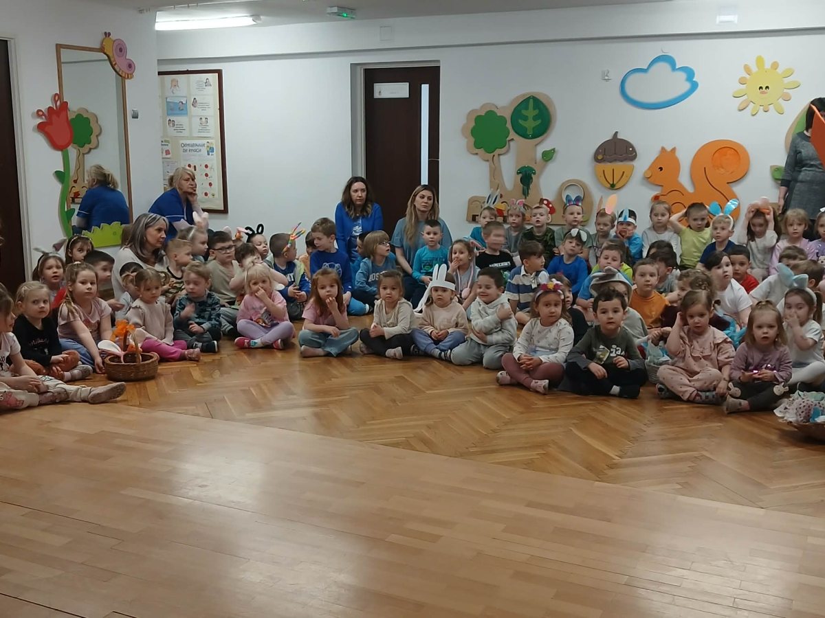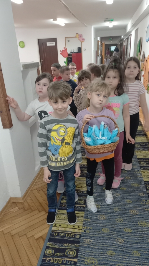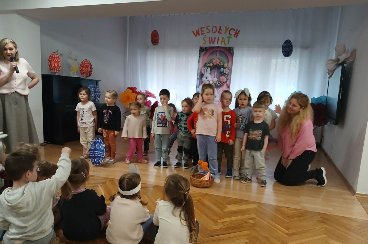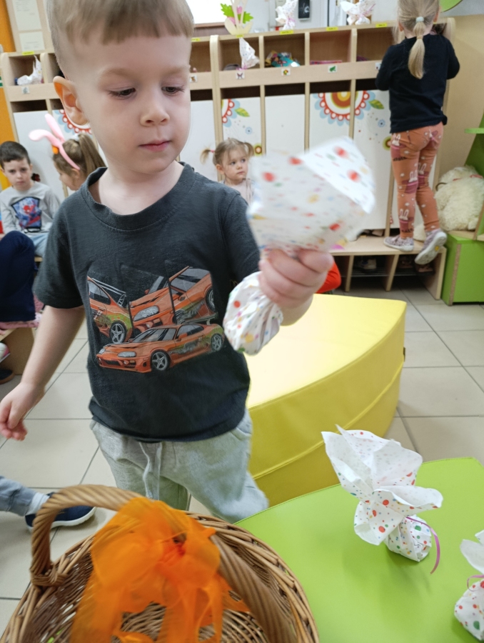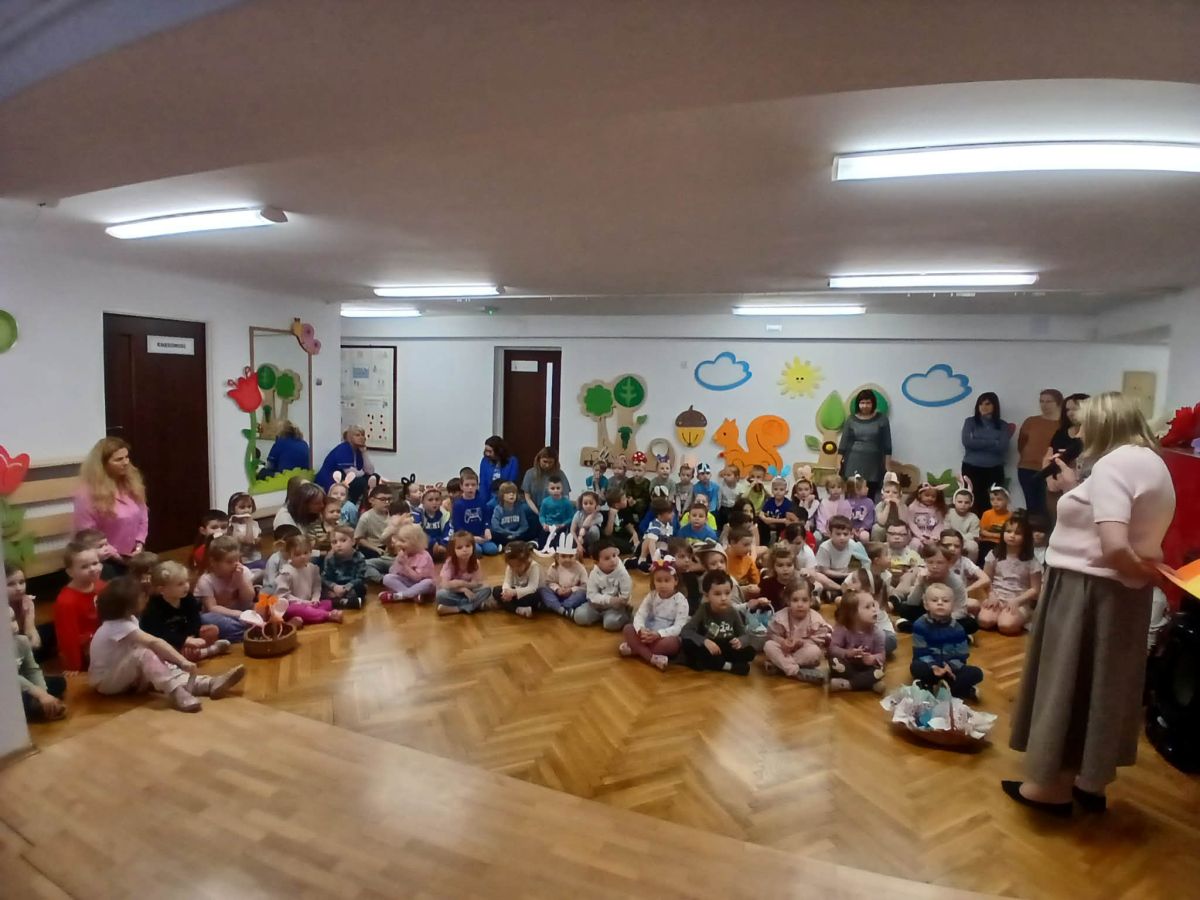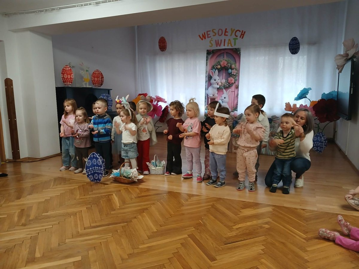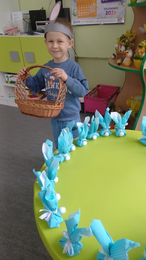W naszym przedszkolu odbyła się wyjątkowa zabawa pod hasłem Tropem wielkanocnego zająca. W wydarzeniu wzięły udział wszystkie dzieci, które z ogromnym entuzjazmem uczestniczyły w przygotowanych aktywnościach. Głównym elementem zabawy były poszukiwania, polegające na odnajdywaniu ukrytych w salach oraz innych pomieszczeniach przedszkola drobnych upominków – czekoladowych jajek pozostawionych przez zajączka. Wskazówką był specjalny list od wielkanocnego zajączka, który wprowadził je w magiczny nastrój zabawy. W trakcie wydarzenia przedszkolaki rozwiązywały zagadki oraz śpiewały wesołe piosenki, nie zabrakło również rozmów na temat zwyczajów świątecznych. Każde poprawnie wykonane zadanie przybliżało je do otrzymania przygotowanych niespodzianek. Dzieci z ochotą angażowały się w aktywności, wykazując się dużą kreatywnością i współpracą. Na zakończenie zabawy wysłuchały od pani dyrektor świątecznych życzeń, a odnalezione drobne niespodzianki oraz otrzymane grupowe upominki sprawiły im wiele radości. Wydarzenie dostarczyło wielu pozytywnych emocji oraz wprowadziło dzieci w atmosferę nadchodzących Świąt Wielkanocnych. Zabawa była doskonałą okazją do pielęgnowania świątecznych tradycji w sposób radosny, atrakcyjny i pełen magii.