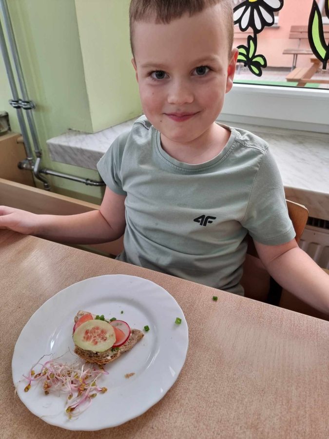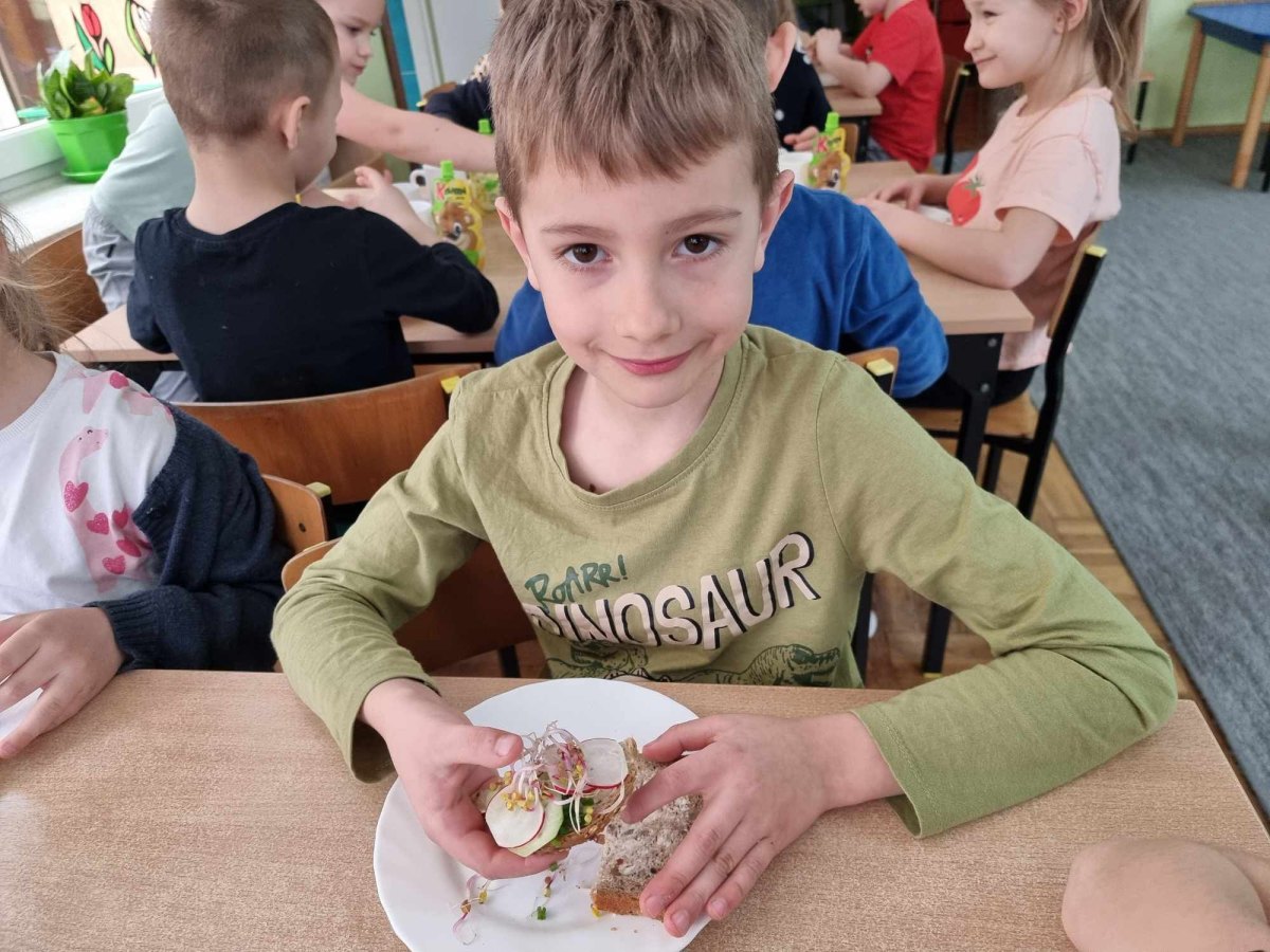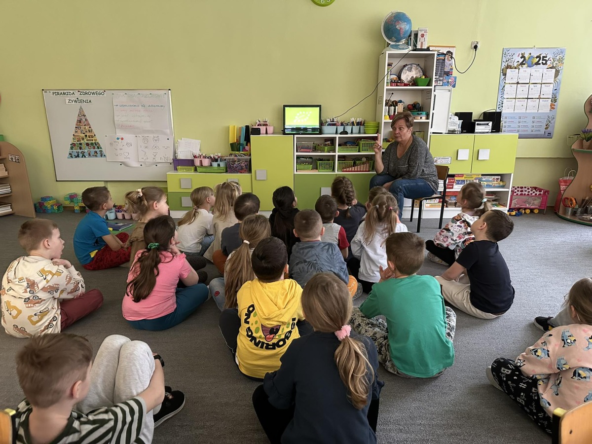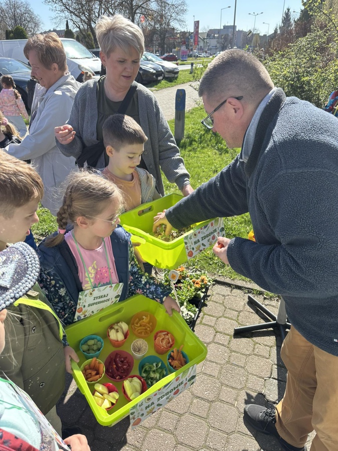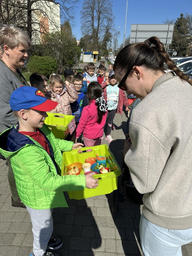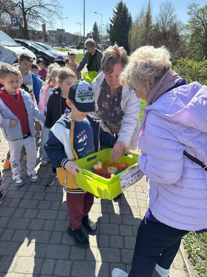 Dzieci z grupy Kotki przystąpiły do realizacji programu ekologicznego „Skąd się biorą produkty ekologiczne”. Na początku obejrzały film, ich zadaniem było zaobserwowanie skąd pochodzą takie produkty, na które przyklejane są znaczki. Usłyszały, że EKO oznacza naturalne, czyli takie, które nie ma żadnych sztucznych, niezdrowych dodatków. Zapoznały się z Piramidą Zdrowego Żywienia, przypomniały sobie co należy robić, aby prowadzić zdrowy styl życia. Miały okazje poznać i posmakować produktów ekologicznych. Kolejnym krokiem było wykonanie zdrowych, kolorowych i smacznych kanapek. Spotkały się też z panią intendentką i wspólnie spróbowały opracować zdrowy jadłospis. Na koniec Kotki wzięły udział w Paradzie Zdrowia, której celem było propagowanie idei zdrowego stylu życia wśród lokalnej społeczności, w trakcie spotkania dzieci częstowały przechodniów zdrowymi przekąskami: jabłkiem, gruszką, marchewką, papryką wykrzykując wymyślone wspólnie hasło: JEDZ ZDROWO – ŻYJ KOLOROWO.