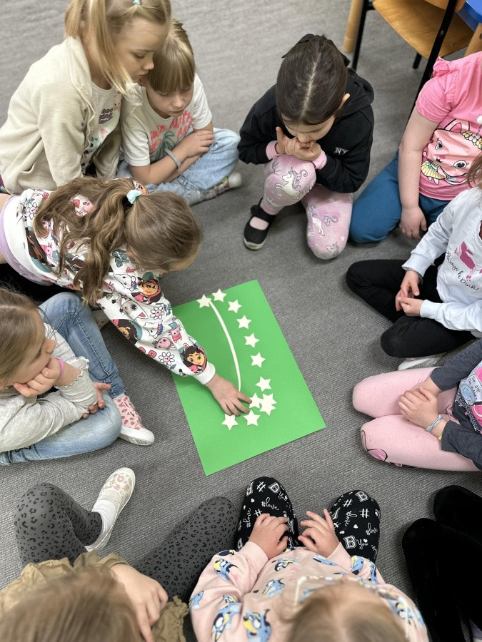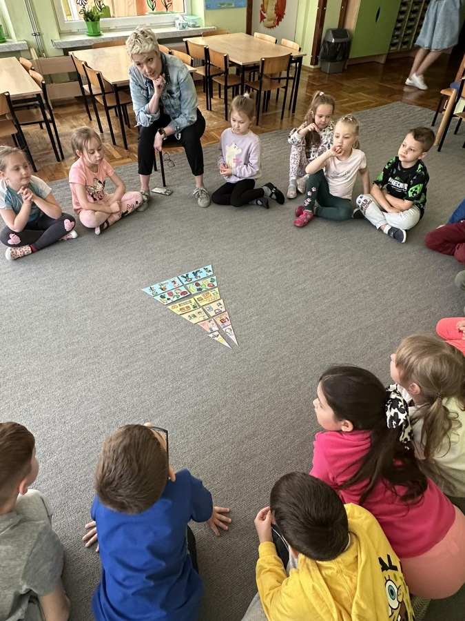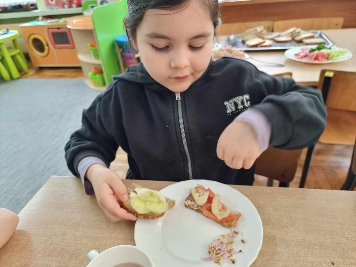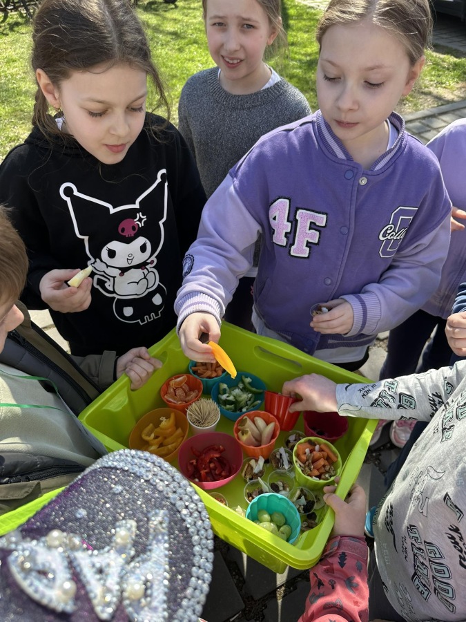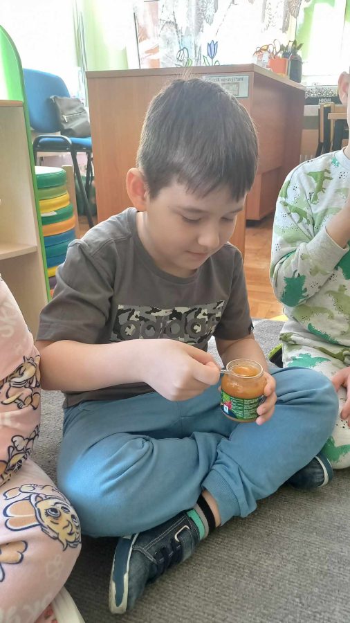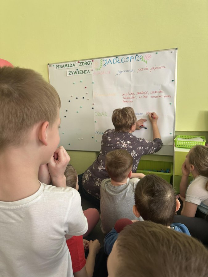 Dzieci z grupy Kotki przystąpiły do realizacji programu ekologicznego „Skąd się biorą produkty ekologiczne”. Na początku obejrzały film, ich zadaniem było zaobserwowanie skąd pochodzą takie produkty, na które przyklejane są znaczki. Usłyszały, że EKO oznacza naturalne, czyli takie, które nie ma żadnych sztucznych, niezdrowych dodatków. Zapoznały się z Piramidą Zdrowego Żywienia, przypomniały sobie co należy robić, aby prowadzić zdrowy styl życia. Miały okazje poznać i posmakować produktów ekologicznych. Kolejnym krokiem było wykonanie zdrowych, kolorowych i smacznych kanapek. Spotkały się też z panią intendentką i wspólnie spróbowały opracować zdrowy jadłospis. Na koniec Kotki wzięły udział w Paradzie Zdrowia, której celem było propagowanie idei zdrowego stylu życia wśród lokalnej społeczności, w trakcie spotkania dzieci częstowały przechodniów zdrowymi przekąskami: jabłkiem, gruszką, marchewką, papryką wykrzykując wymyślone wspólnie hasło: JEDZ ZDROWO – ŻYJ KOLOROWO.