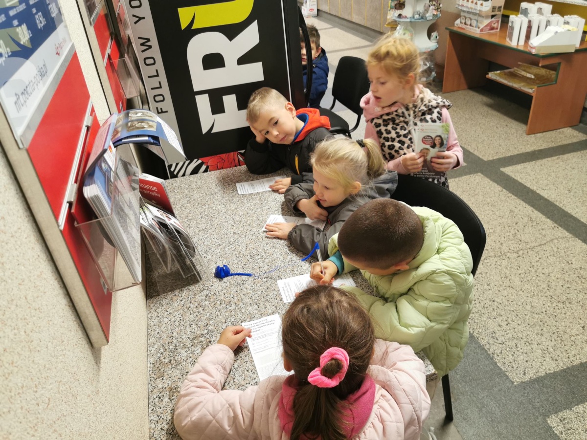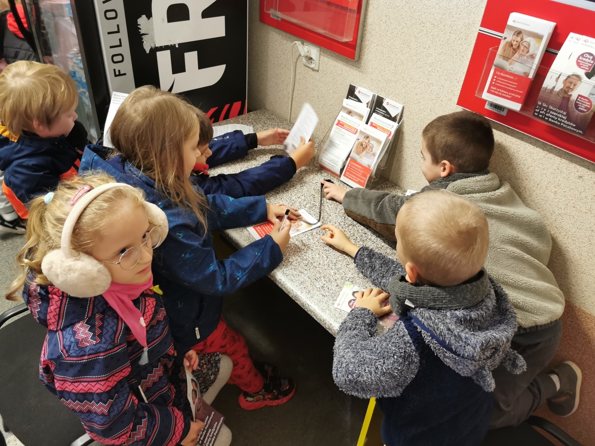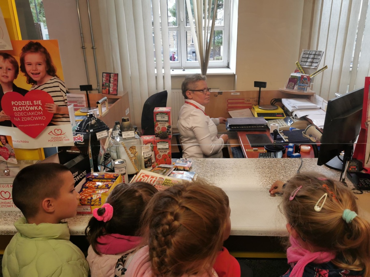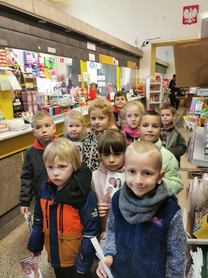 Grupa VI Słoneczka wybrała się na wycieczkę do Urzędu Pocztowego przy ul. Mickiewicza w Tarnowie. Celem wycieczki było zapoznanie z instytucją poczty, pracą listonosza oraz osób tam pracujących. Słoneczka zwiedziły różne pomieszczenia, poznały zakres usług pocztowych i jakie zadania spełnia ten urząd w naszym życiu. Przedszkolaki utrwalały logo poczty, oglądały przeróżne przekazy i skrzynki pocztowe. Wizyta na poczcie była dobrą okazją do utrwalenia nawyku kulturalnego zachowania się w miejscu publicznym. Dzieci wracały do przedszkola pełne miłych wrażeń.