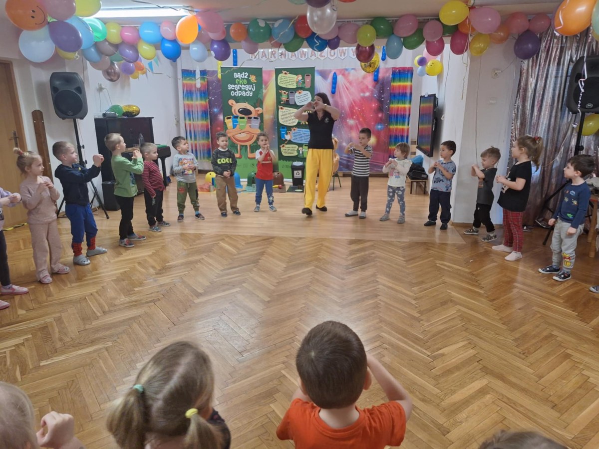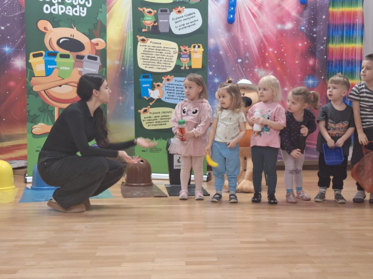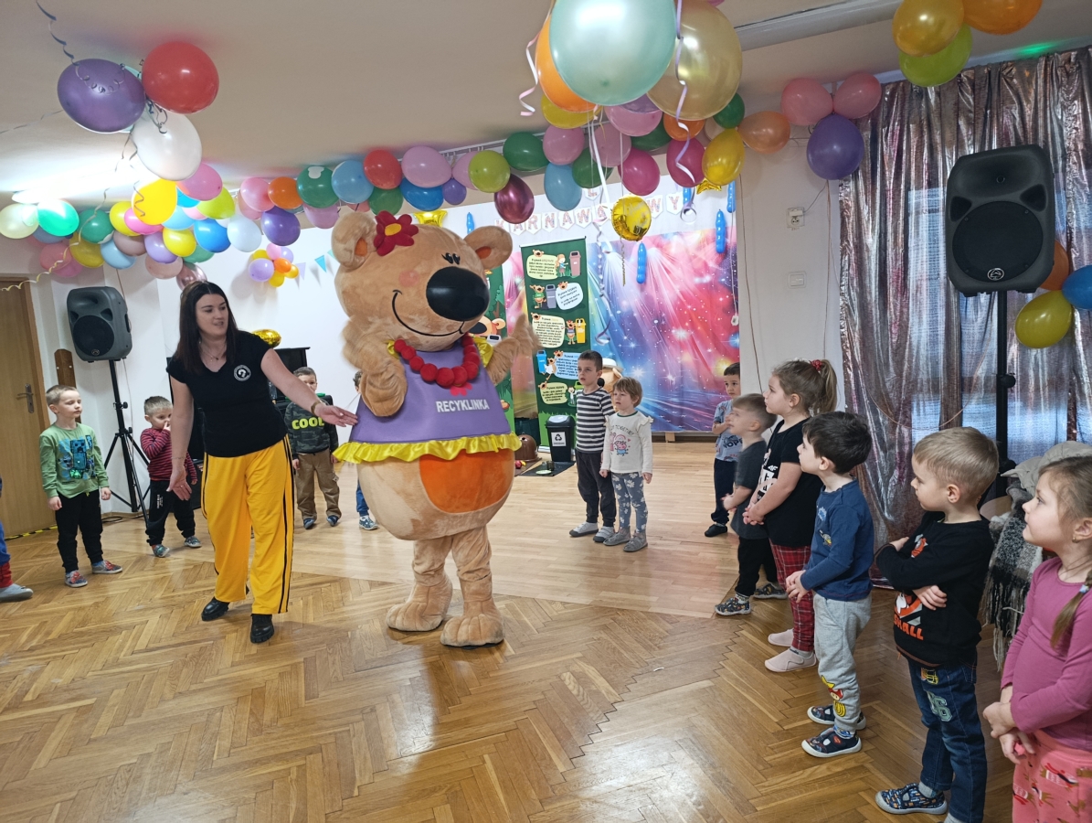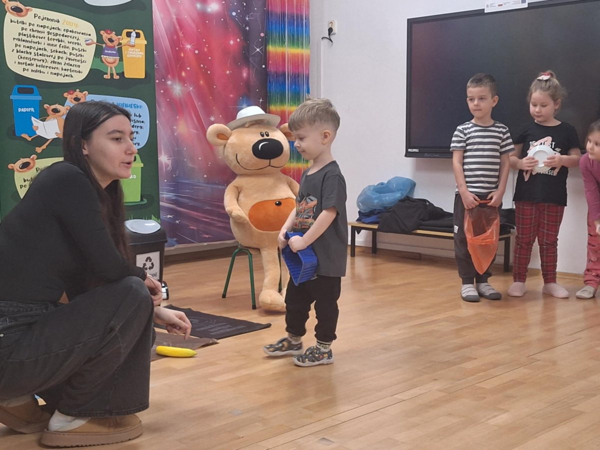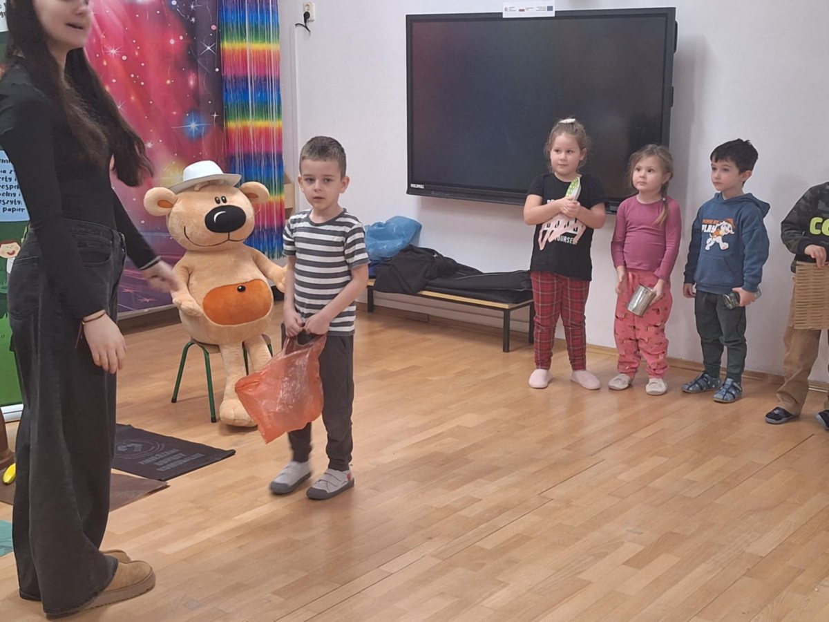 Dnia 30.01.2026 r. nasze przedszkole odwiedził Miś Sortuś. Dzieci wraz z nim uczestniczyły w ekologicznych zabawach, podczas których utrwalały znajomość zasad segregacji odpadów. Serdecznie dziękujemy firmie BOO Organizacji Odzysku Opakowań i Odpowiedzialności Producenta S.A. za lekcję ekologii i upominki.