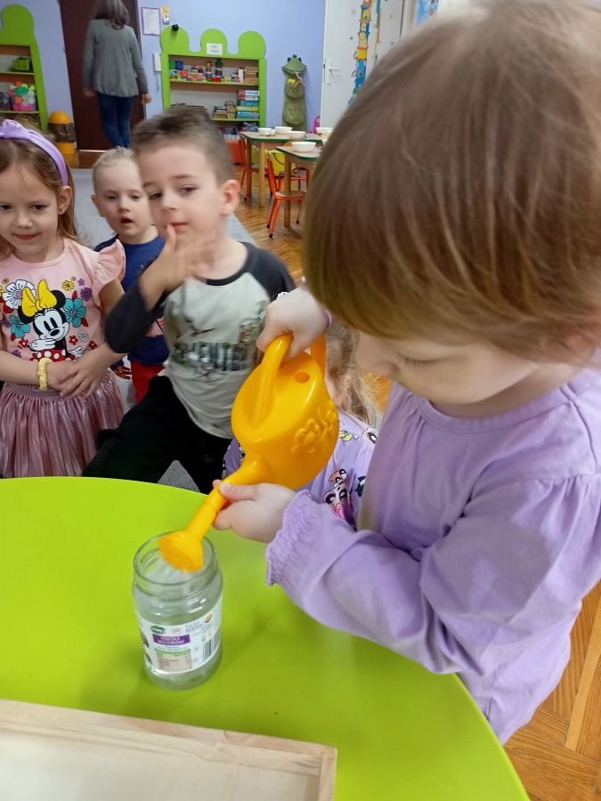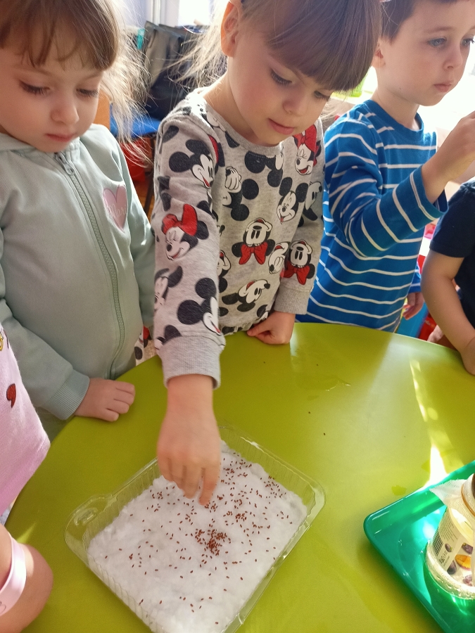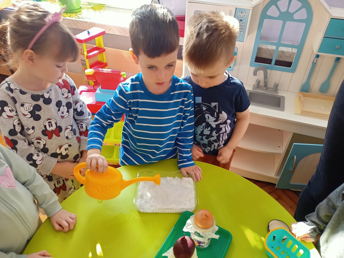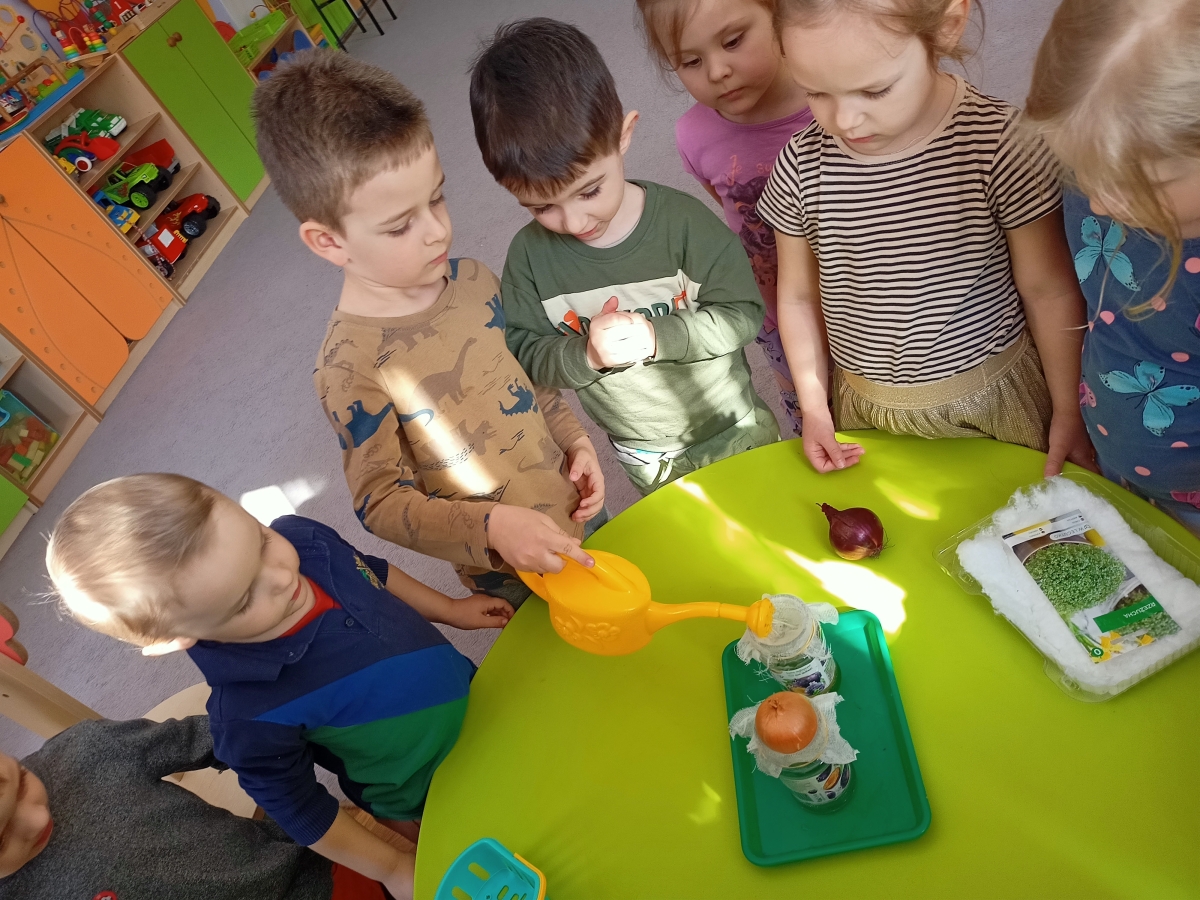 Założenie hodowali szczypiorku i rzeżuchy przez Stokrotki. Dzieci będą obserwować wzrost posadzonych roślin, a gdy urosną spożywać dla zdrowia.