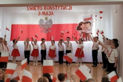 W miniony piątek w naszym przedszkolu odbyły się uroczystości związane z państwowym świętem obchodzonym na pamiątkę uchwalenia Konstytucji 3 Maja w 1791 roku. Jest to okazja nie tylko do rozmów o patriotyzmie i symbolach narodowych, ale również do budowania przynależności narodowej. Bo choć dzieci są małe, to są też Polakami i przyszłością Polskiego Narodu. Z tej okazji dzieci z grupy IV przygotowały uroczystą akademię patriotyczną, w której uczestniczyła cała społeczność przedszkolna. Dzieci w przepiękny sposób – słowem, śpiewem i tańcem wyraziły swoją miłość do Ojczyzny i szacunek do symboli narodowych. Odświętne stroje, kotyliony i biało czerwone flagi podkreślały uroczysty charakter wydarzenia.