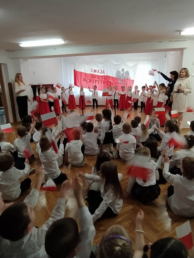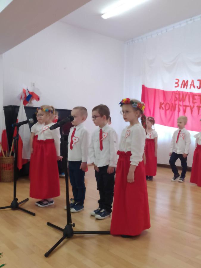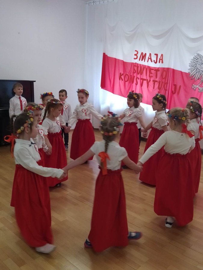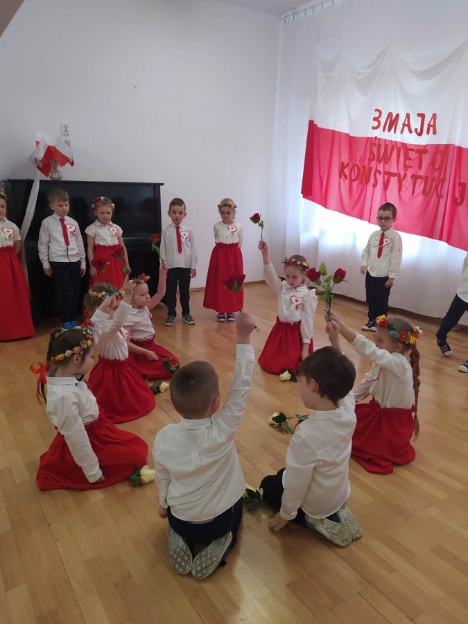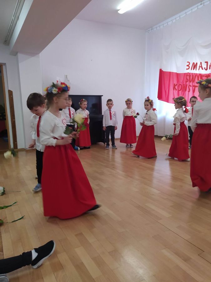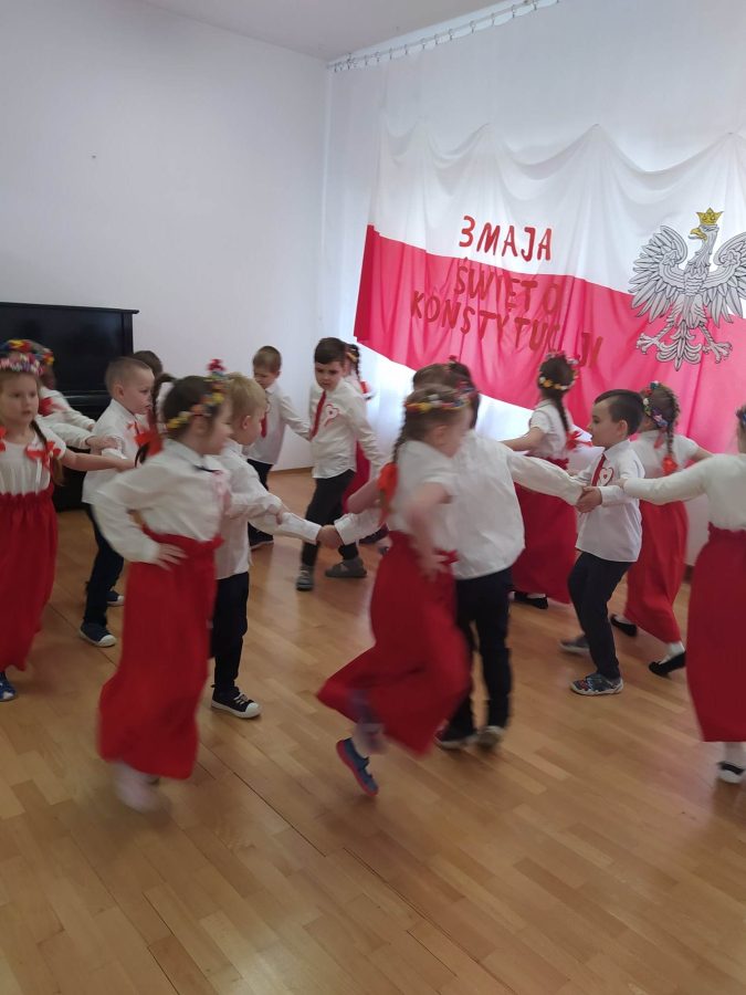 Dnia 27.04. 2023 r. w naszym przedszkolu obyła się uroczysta akademia z okazji Święta Konstytucji 3Maja. Wszyscy odświętnie ubrani z powagą obejrzeli program przygotowany przez grupę IV Stokrotki. Dzieci zaprezentowały piosenki i wiersze o tematyce patriotycznej oraz układy taneczne z kwiatami i do piosenki “Płynie Wisła płynie”. Podkreślono znaczenie naszych symboli narodowych. Przedszkolaki z dumą i powagą odśpiewały wszystkie zwrotki naszego Hymnu. Było odświętnie i uroczyście. Wszyscy przeżyli piękna lekcję patriotyzmu.
