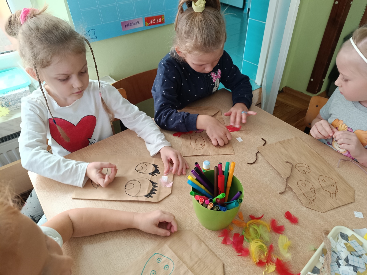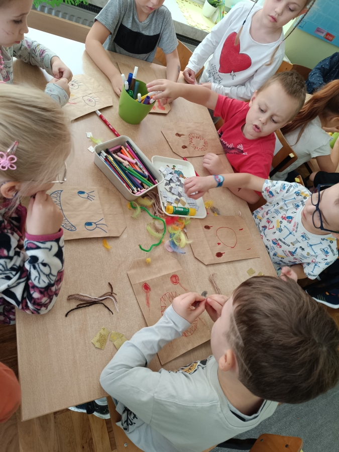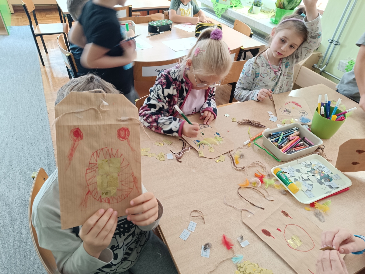 Podczas zajęć plastycznych dzieci rysowały na kartkach papieru białą świecą, tworząc niewidoczne wzory. Następnie malowały prace rozwodnionymi farbami, dzięki czemu rysunki stopniowo się ujawniały, tworząc…