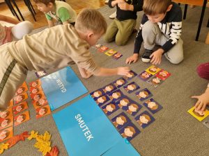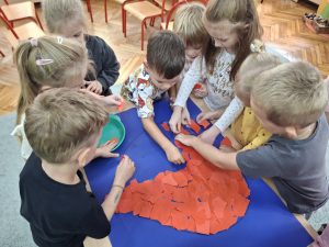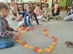 W dniach 29 września – 3 października 2025 r. w naszym przedszkolu realizowana była ogólnopolska inicjatywa Ministerstwa Edukacji Narodowej – „Tydzień o Budowaniu Relacji”. Podczas zajęć dzieci wysłuchały opowiadania „Serduszko z liści”, które stało się punktem wyjścia do rozmów o przyjaźni, życzliwości i wzajemnym wsparciu. Prowadziliśmy również rozmowy kierowane o emocjach, dzięki którym przedszkolaki uczyły się rozpoznawania i nazywania swoich uczuć. Szczególną uwagę poświęciliśmy tematowi radzenia sobie ze złością – dzieci poznały różne sposoby wyrażania trudnych emocji w sposób bezpieczny i akceptowalny. Dzięki tym zajęciom przedszkolaki mogły rozwijać umiejętność współpracy, empatii i budowania pozytywnych relacji z rówieśnikami.