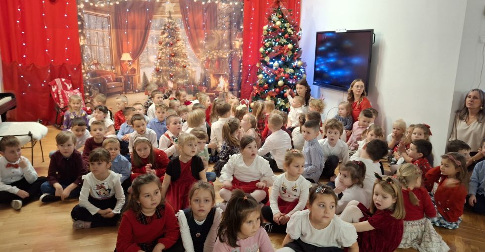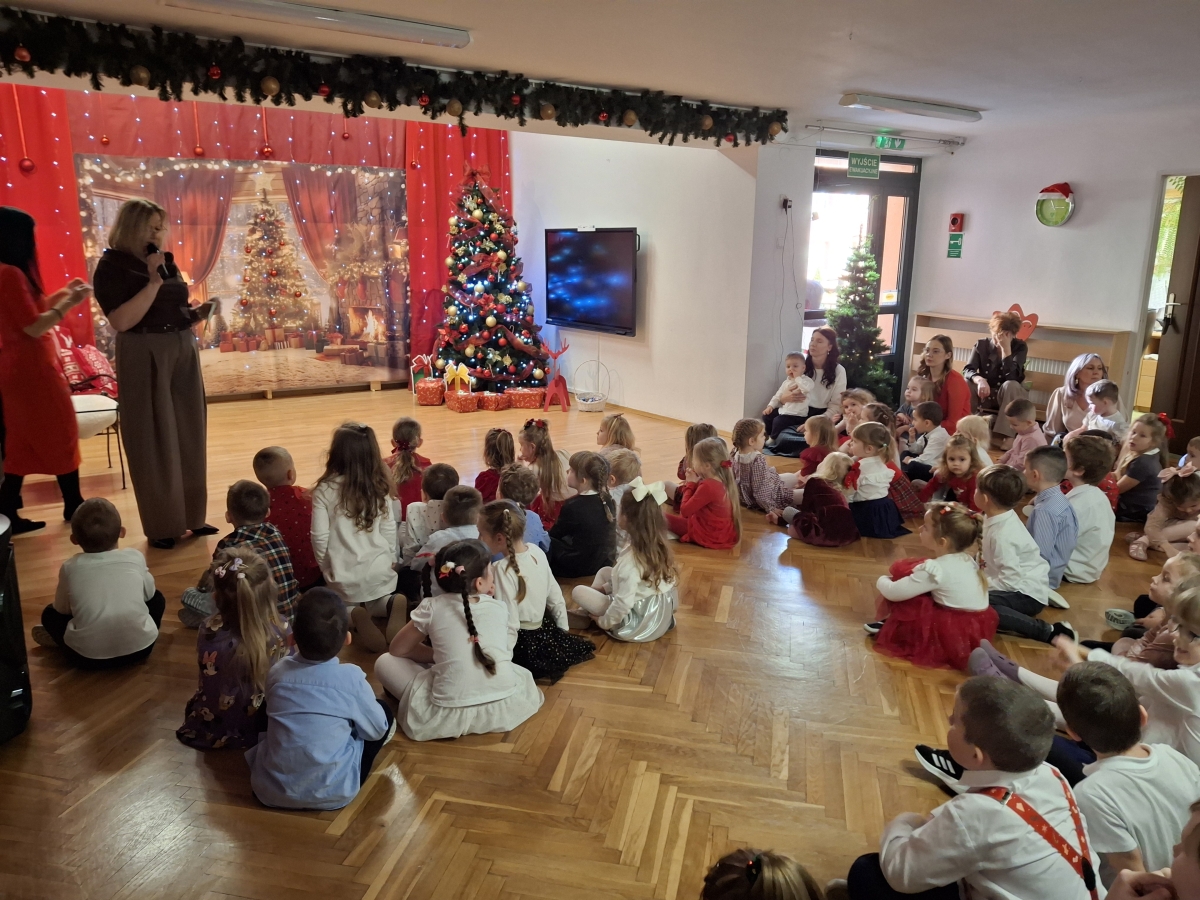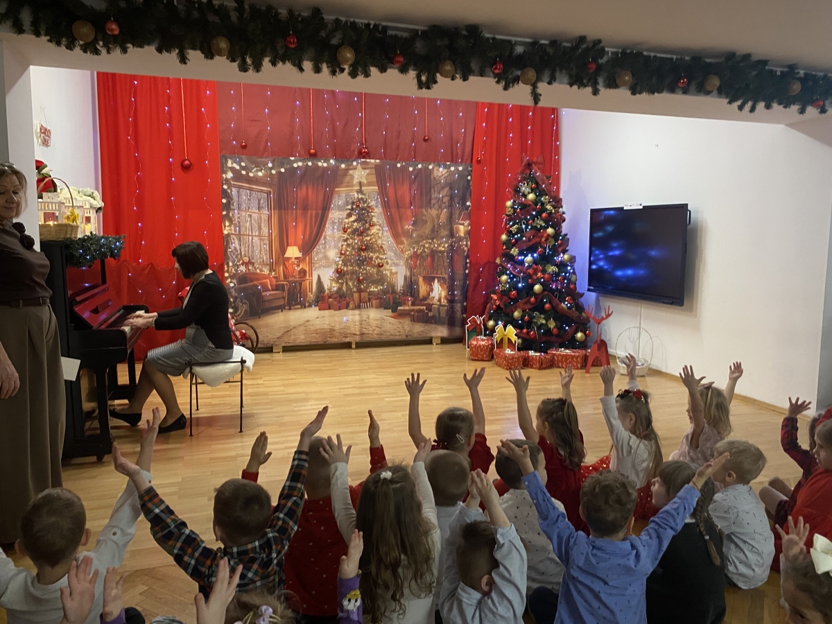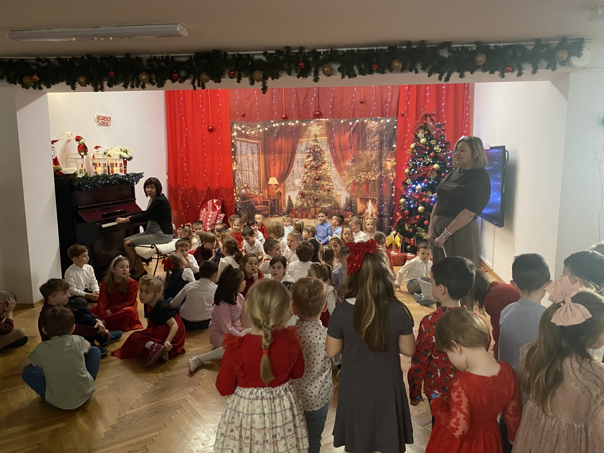 Jest taki dzień, bardzo ciepły, choć zimowy. Dzień, w którym spotkała się cała przedszkolna rodzina, aby przeżyć Wigilię zbliżających się Świąt. Tego dnia wspólne Kolędowanie, życzenia świąteczne, prezenty pod choinką towarzyszyły przedszkolakom. Finałem był obiad wigilijny przy pięknie udekorowanych stołach.