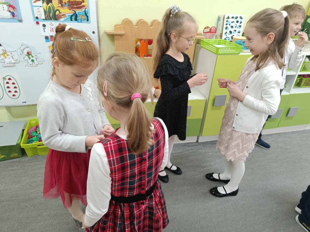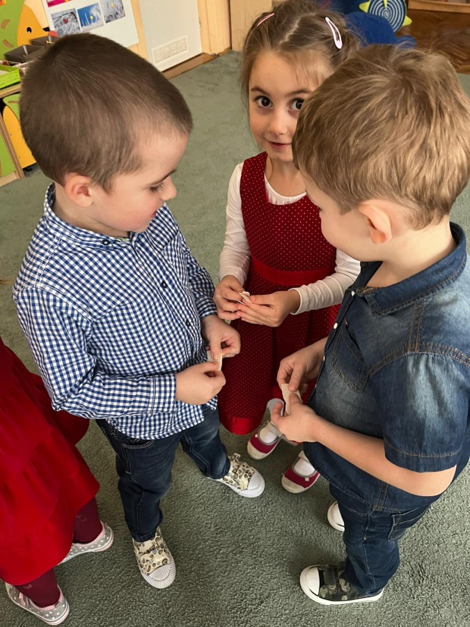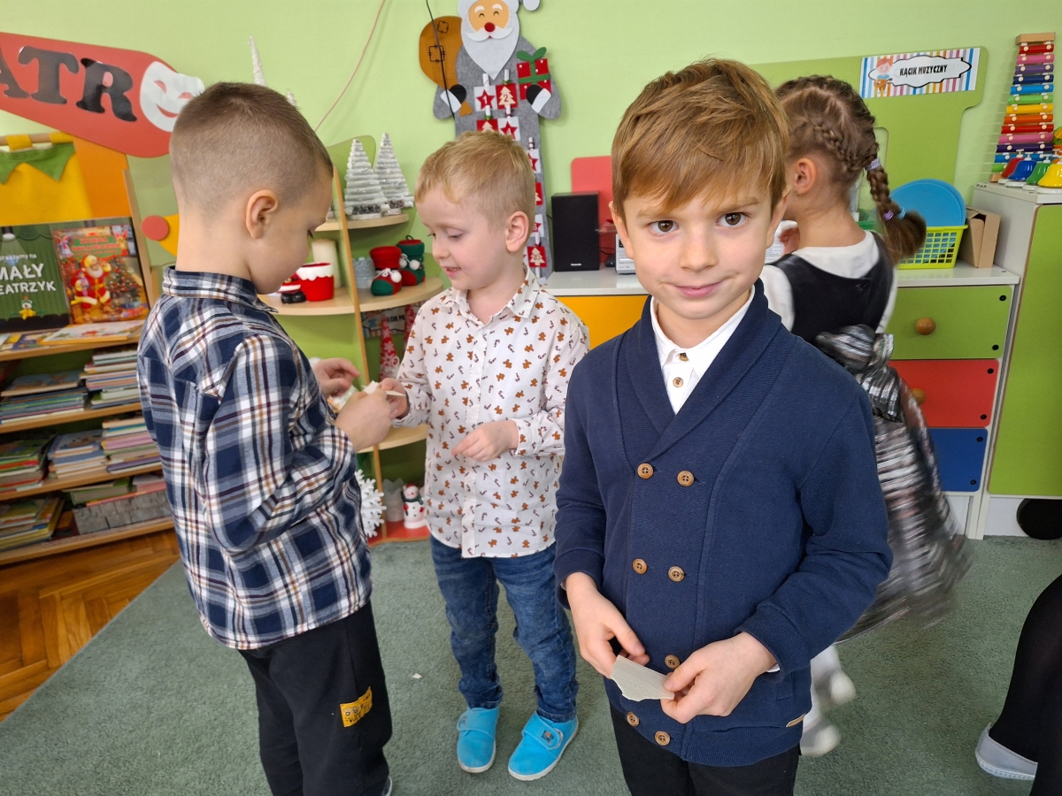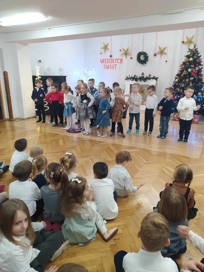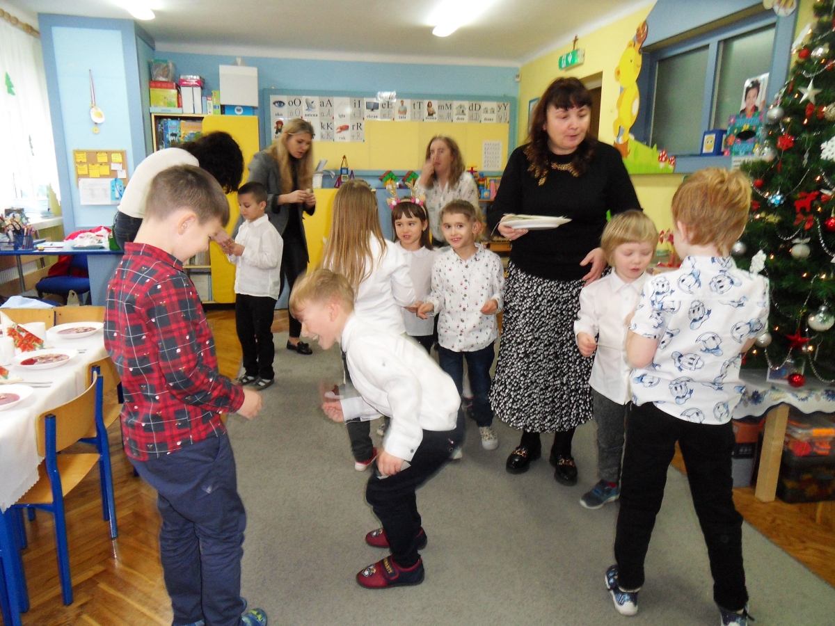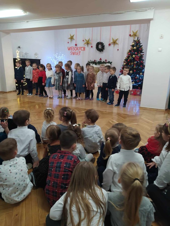 Jest taki dzień tylko jeden raz do roku to Wigilia Świąt Bożego Narodzenia. Jest jednym z najpiękniejszych dni w roku. W naszym przedszkolu 15 grudnia już od rana słychać było kolędy. Bo właśnie w tym dniu cała społeczność uczestniczyła w spotkaniu wigilijnym. Najpierw był wspaniały występ, który przygotowała grupa IV. Potem wspólnie zaśpiewaliśmy kolędę. Pani dyrektor złożyła wszystkim życzenia świąteczne. Następnie przedszkolaki w swoich grupach łamały się opłatkiem i przy pięknie udekorowanych stołach zasiadły do wigilijnego obiadu. Atmosfera była świąteczna, pełna nadziei, życzliwości, czuć było magię i radość.