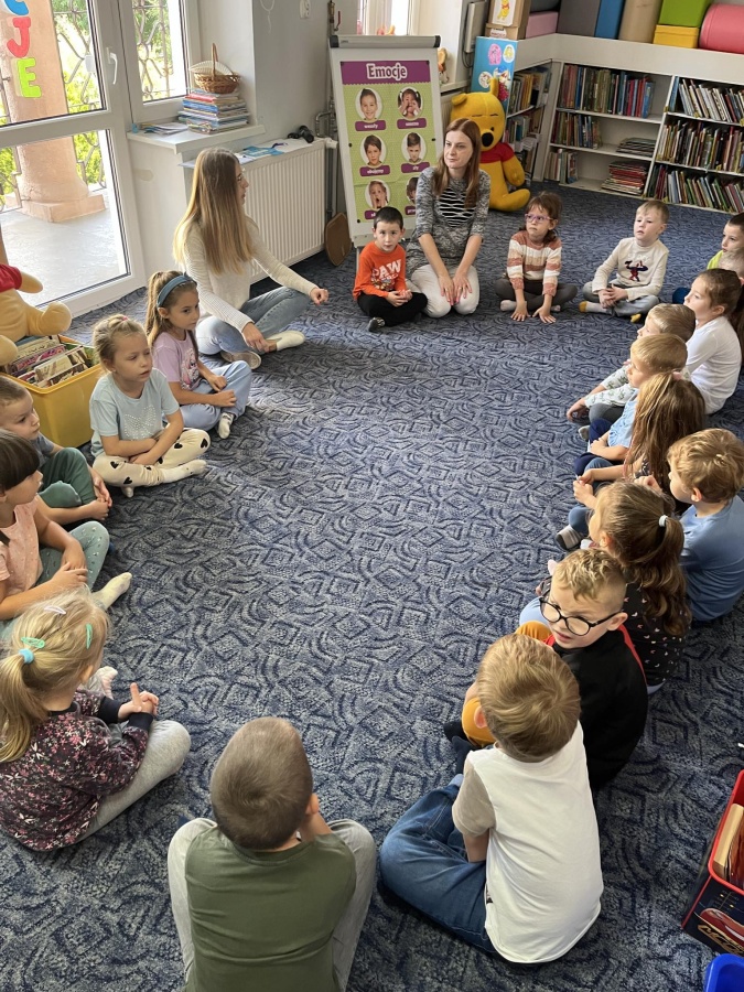 W czwartek Motylki miały okazję uczestniczyć w zajęciach organizowanych przez Miejską Bibliotekę Publiczną przy ul. Staszica. Tematem spotkania były emocje, które czasami płatają figle, szczególnie przedszkolakom. Dzieci miały możliwość porozmawiania o nich, utrwalenia ich nazw oraz rodzajów. Dzięki dopasowanej do wieku literaturze poznały wybrane sposoby radzenia sobie z trudniejszymi emocjami.