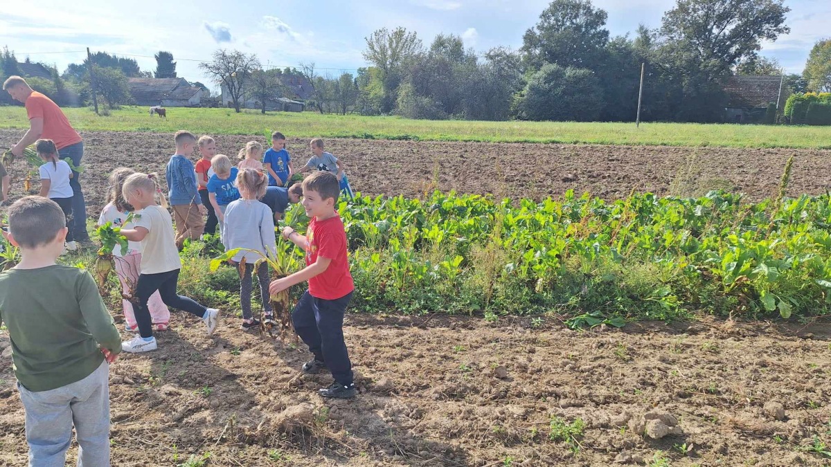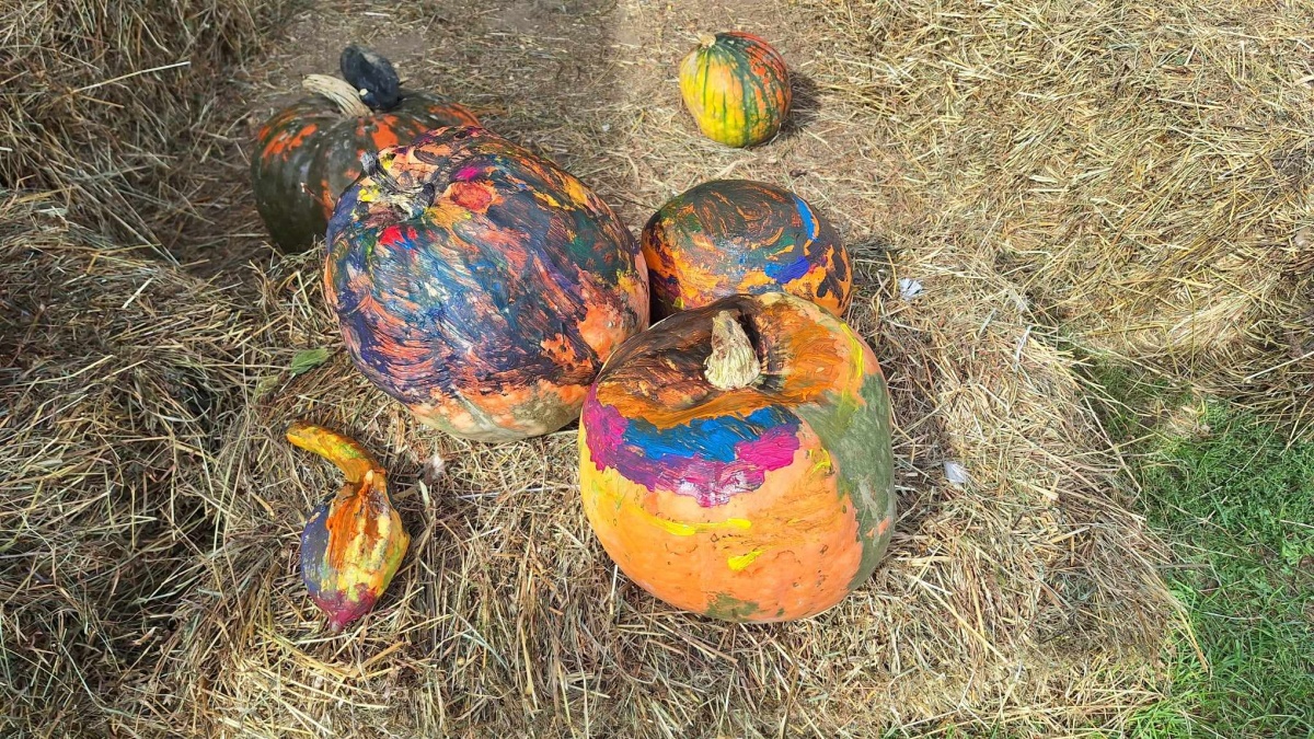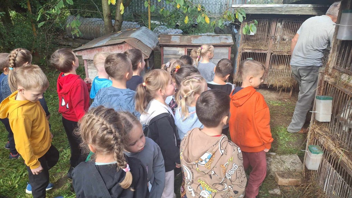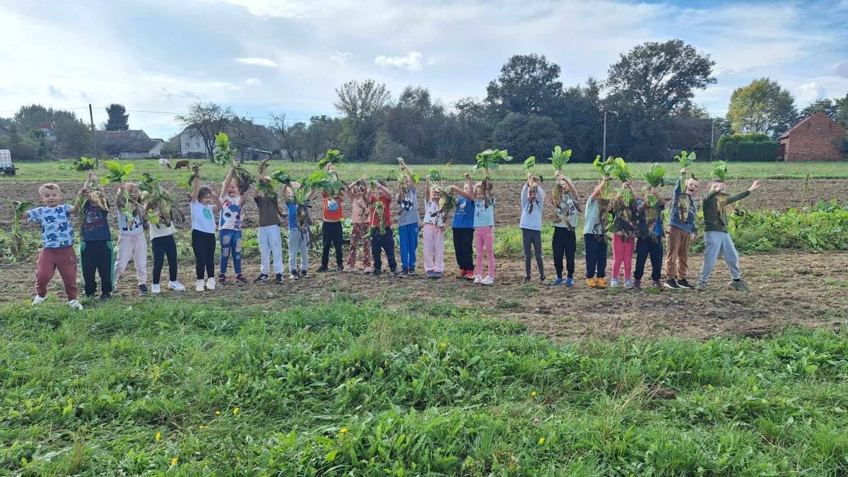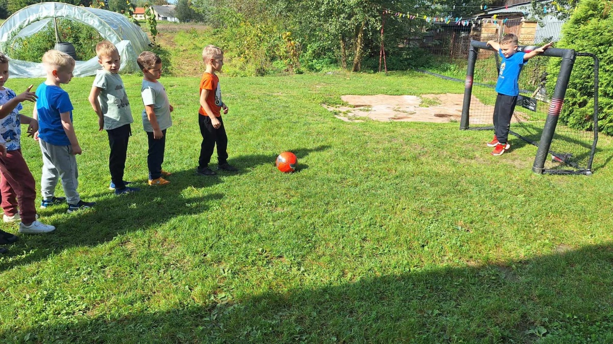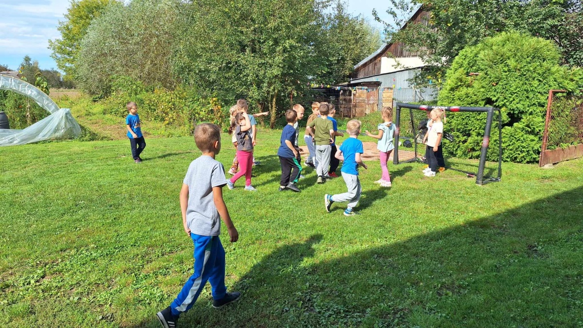 Na zaproszenie naszego kolegi Olka i jego Dziadziusia pojechaliśmy na wspaniałą wycieczkę. Odwiedziliśmy piękne gospodarstwo na wsi, poznaliśmy i karmiliśmy wszelkie zwierzątka (barany kameruńskie, króliki, krowy, byki, kaczki i kury). Wykopywaliśmy buraki, jeździliśmy taczkami, byliśmy na polu pełnym dyń. Graliśmy w piłkę, chowaliśmy się w bazie na drzewie, łupaliśmy orzechy laskowe kamieniami! A na koniec malowaliśmy farbami piękne okazy dyń, które można podziwiać w naszej szatni. Na zakończenie, podczas wsiadania do autokaru Pan Dziadziuś wręczył każdemu odznakę “SUPER FARMERA”