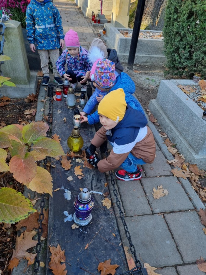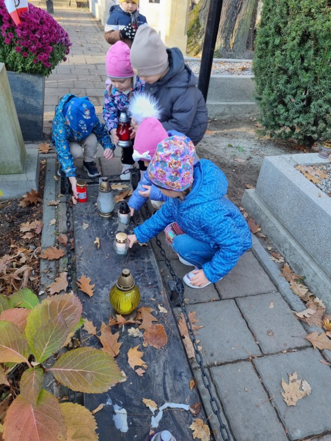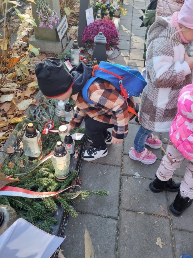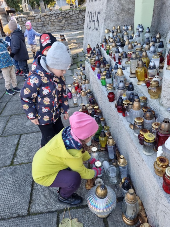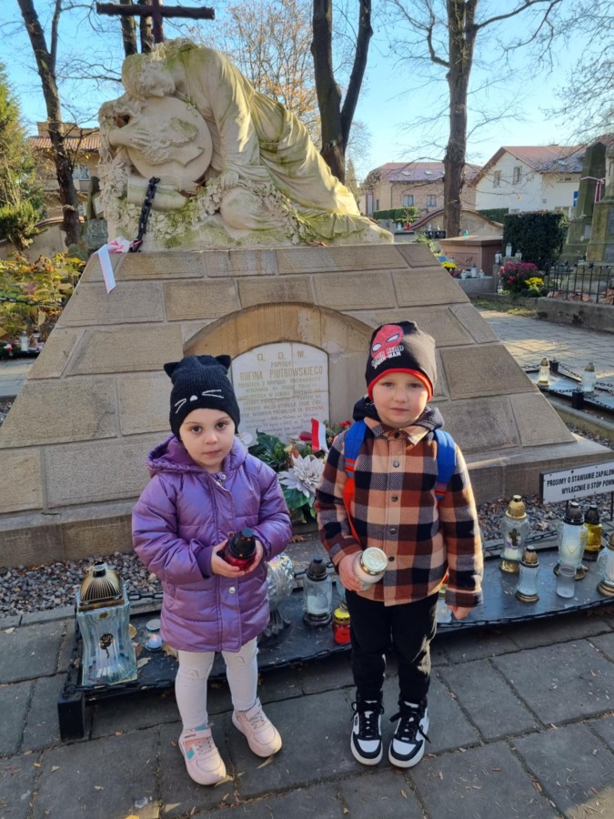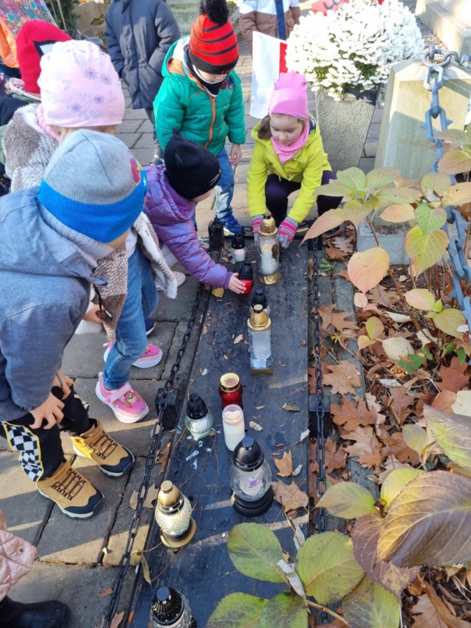 Grupa Żabek wybrała się na Stary Cmentarz . Zapaliliśmy znicze na grobach patriotów , żołnierzy poległych w czasie walk o niepodległość Polski , zesłańców oraz pod pomnikiem ofiar II wojny światowej.